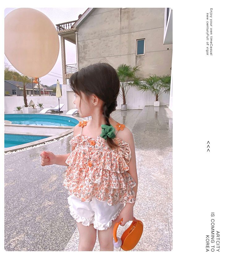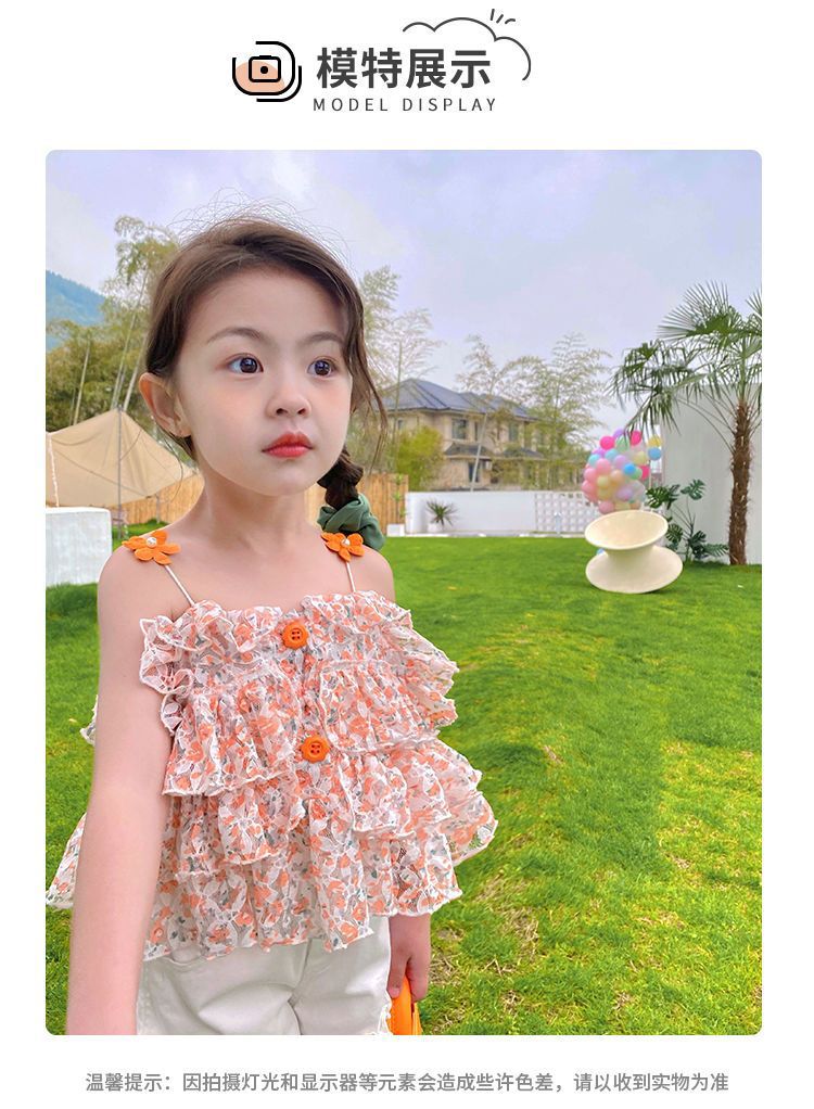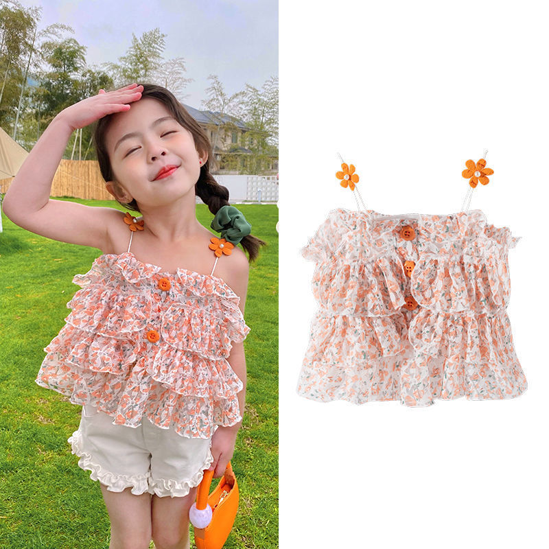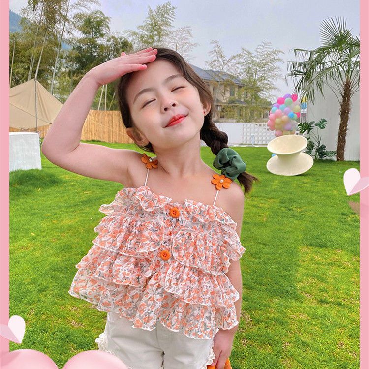 한국 스타일 여자 민소매 인형 셔츠 아기의 여름 쉬폰 2025 새로운 도착 서양식 여름 어린이 최고 트렌디 슬링