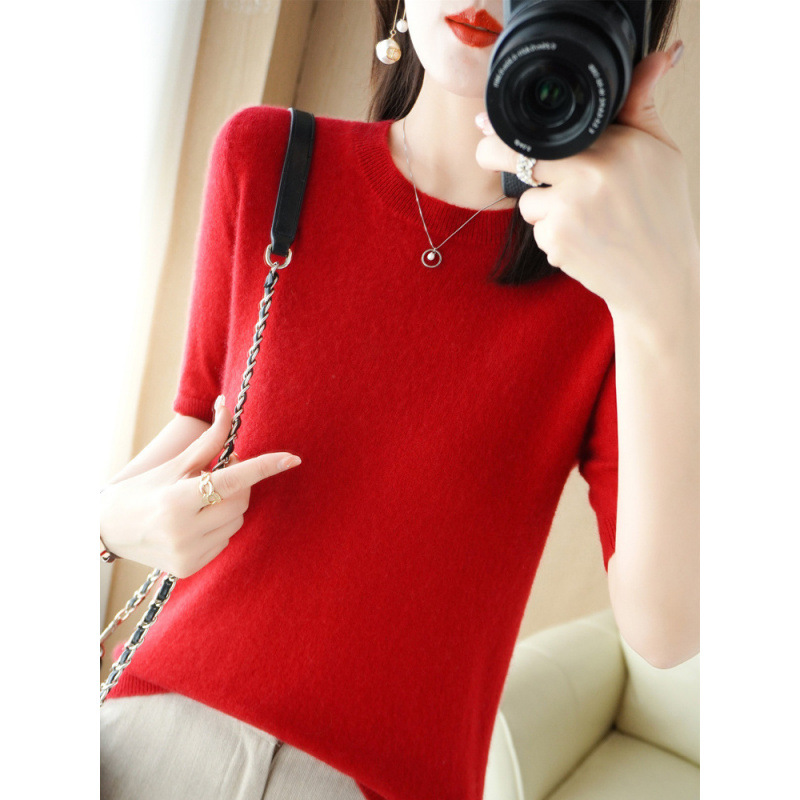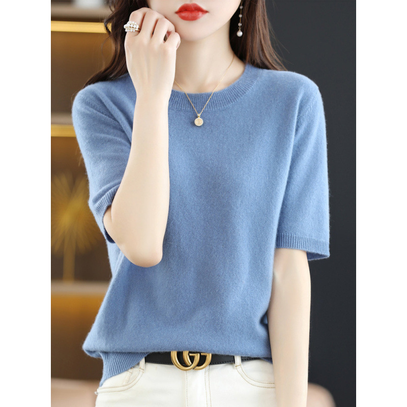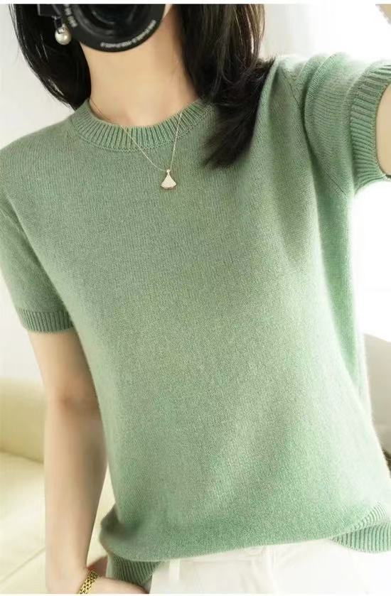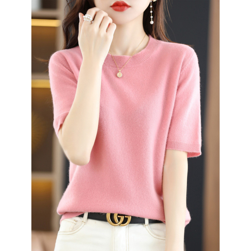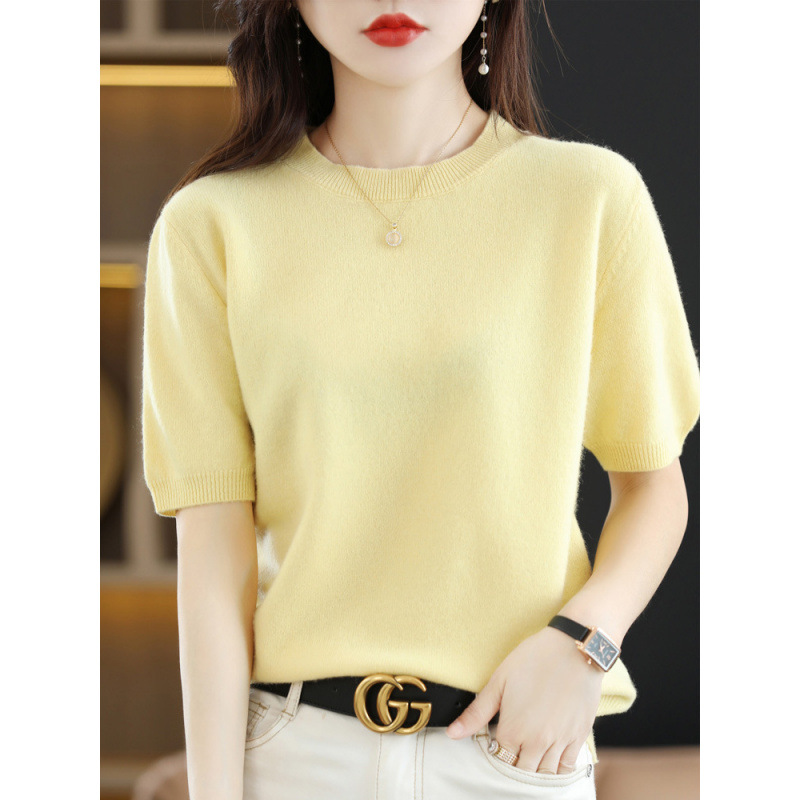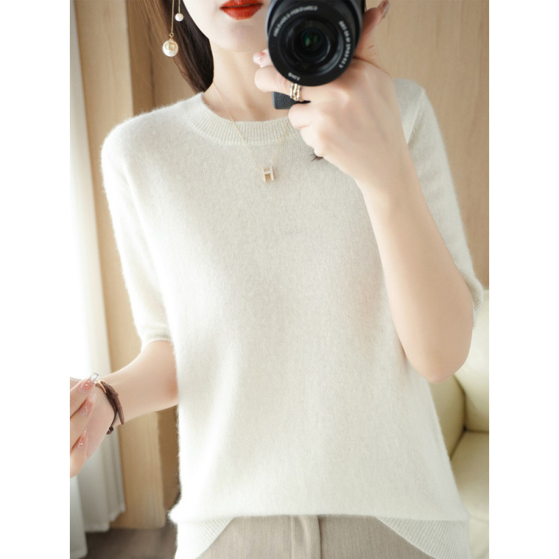 라이브 방송 폭발 봄과 여름 둥근 목 짧은 소매 여성의 느슨한 짧은베이스 셔츠 반소매 니트 셔츠 얇은 여름 스웨터
