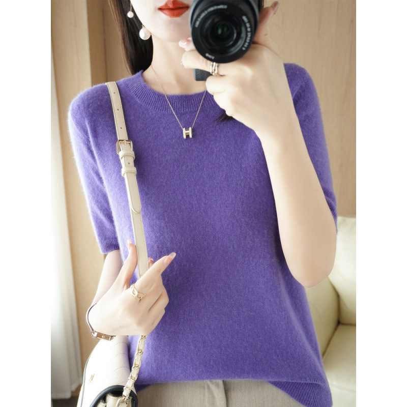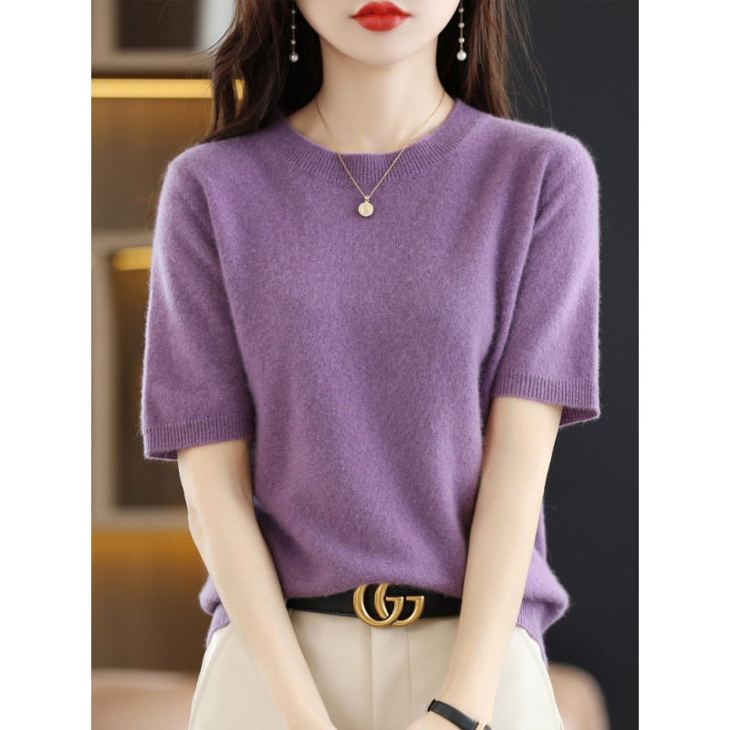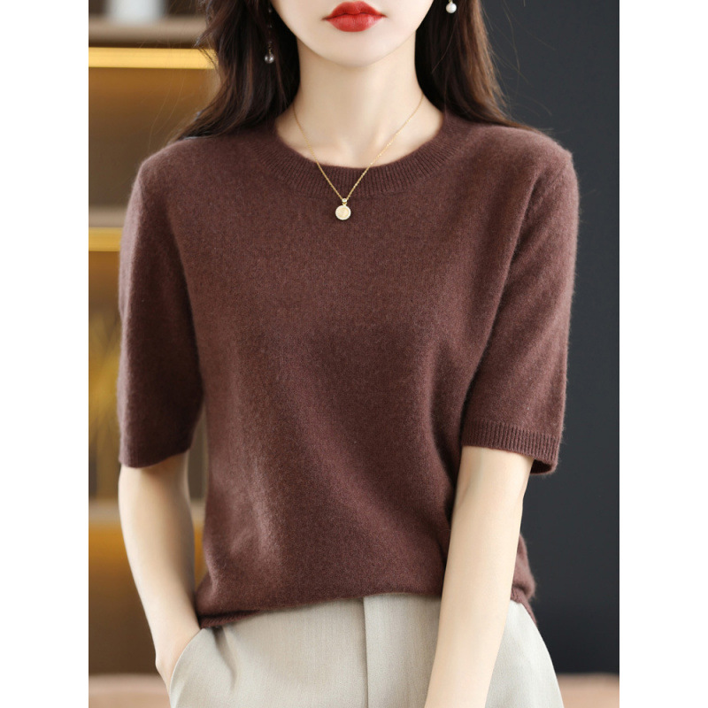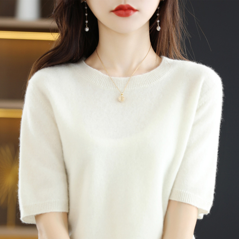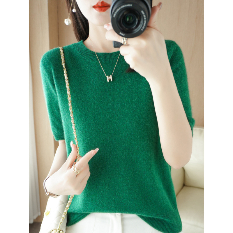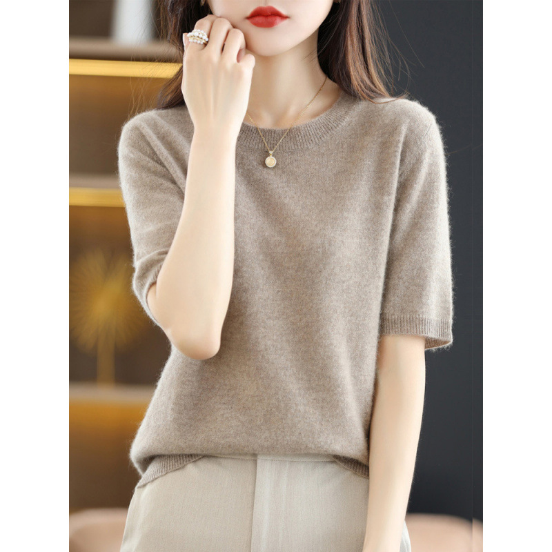 라이브 방송 폭발 봄과 여름 둥근 목 짧은 소매 여성의 느슨한 짧은베이스 셔츠 반소매 니트 셔츠 얇은 여름 스웨터