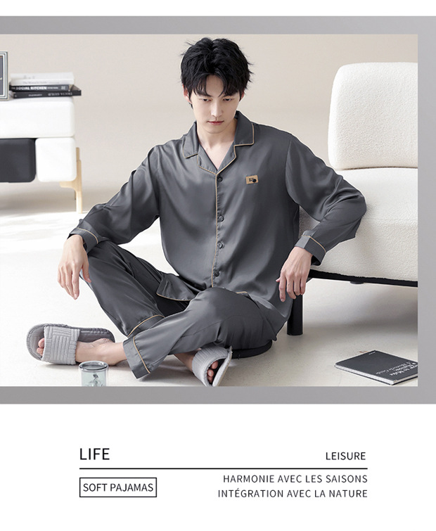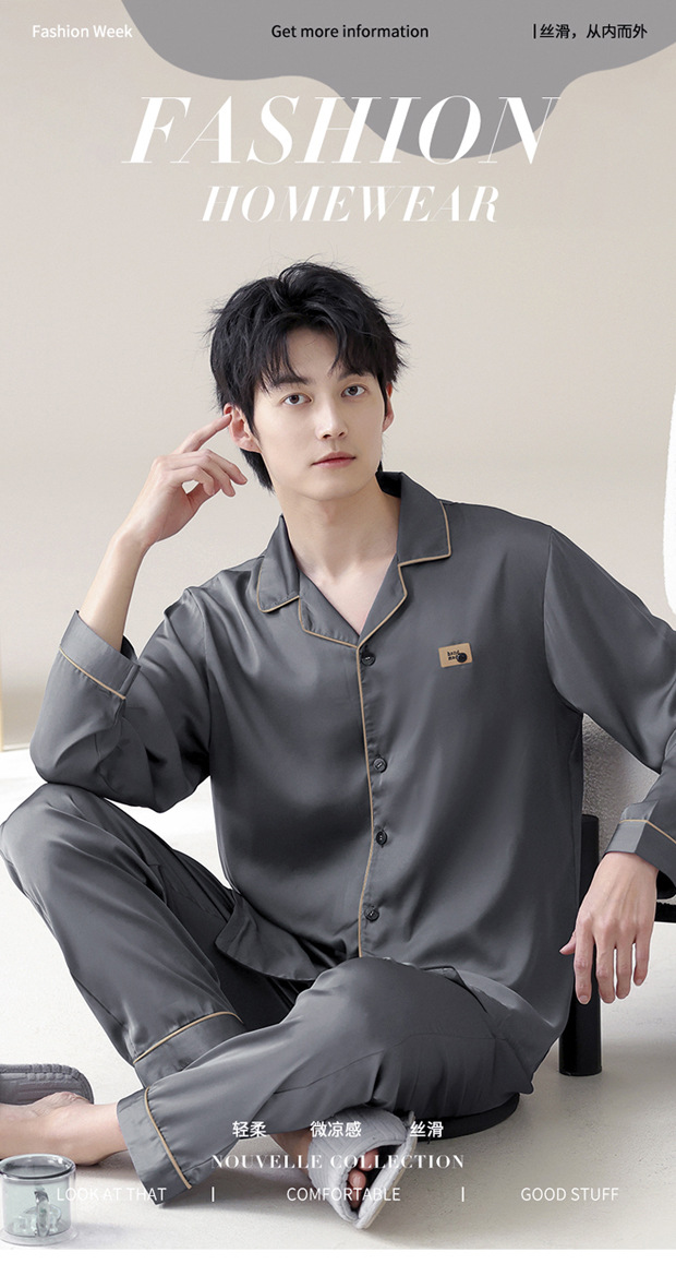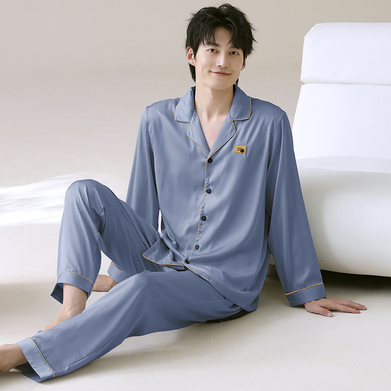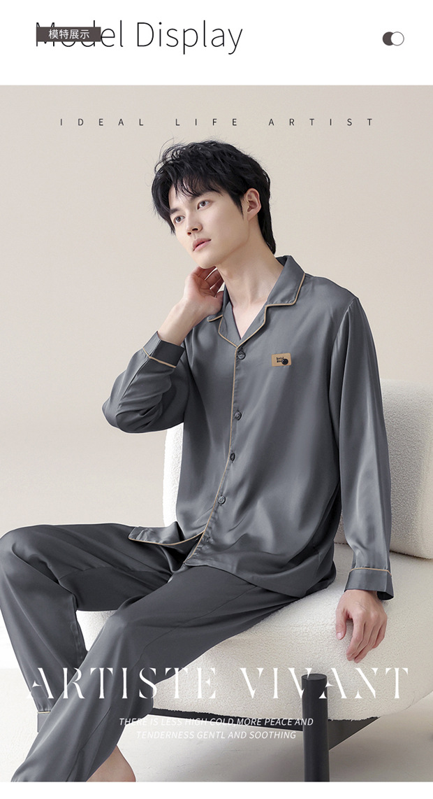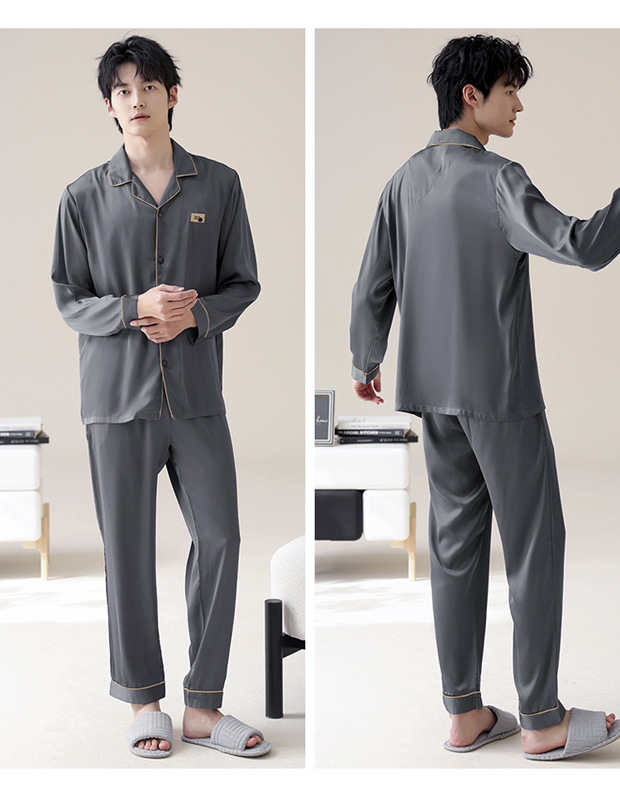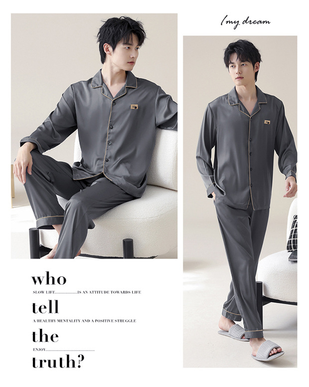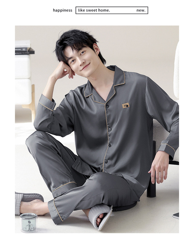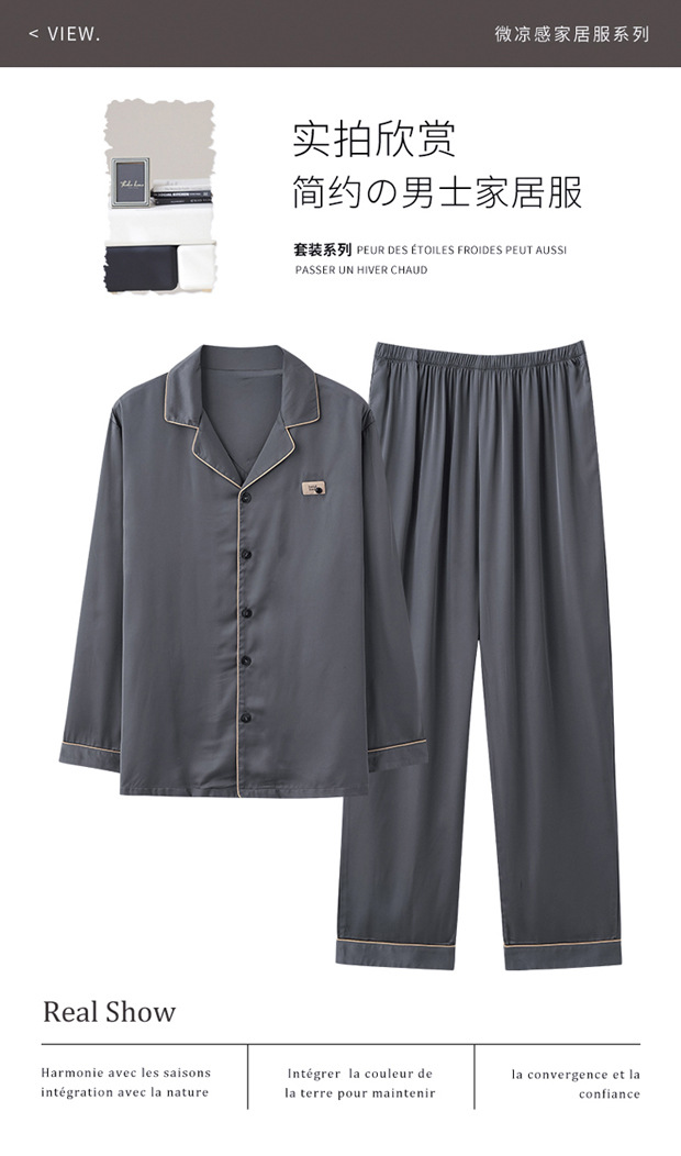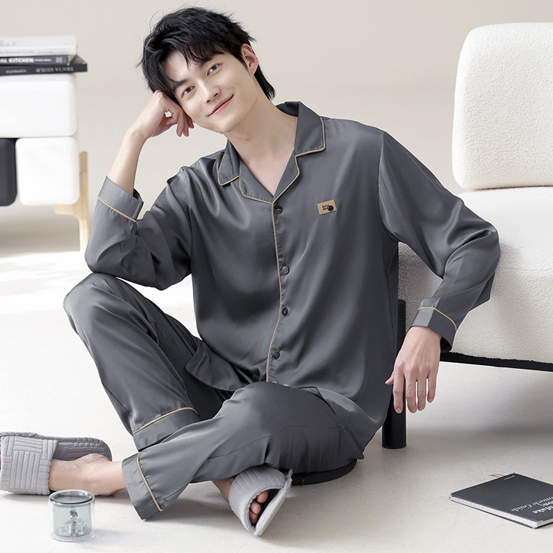 남성용 잠옷 봄, 가을 얇은 얼음 실크 긴팔 올 시즌 웨어러블 하이 엔드 대형 홈웨어 투피스 슈트스토어 가기