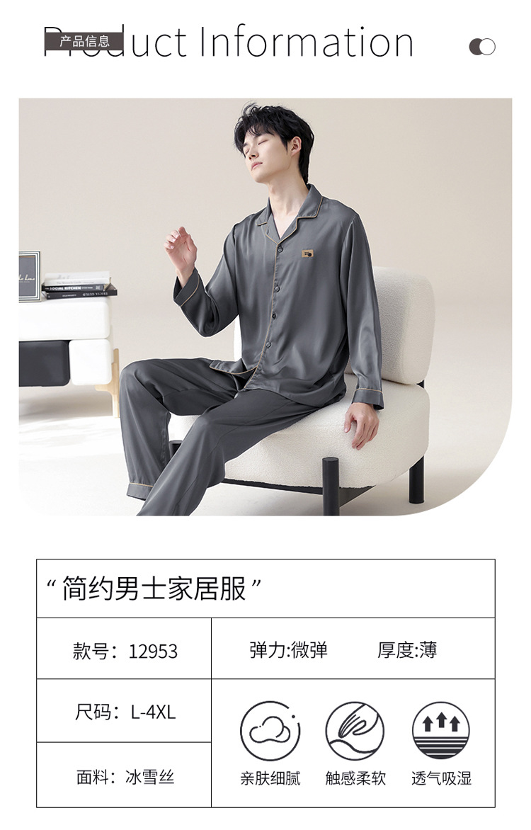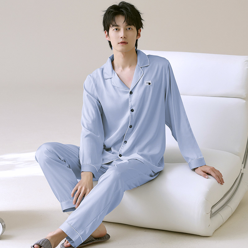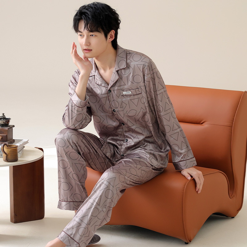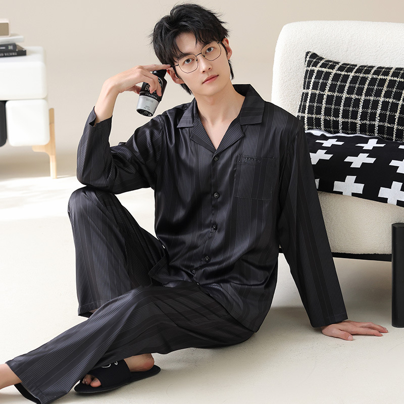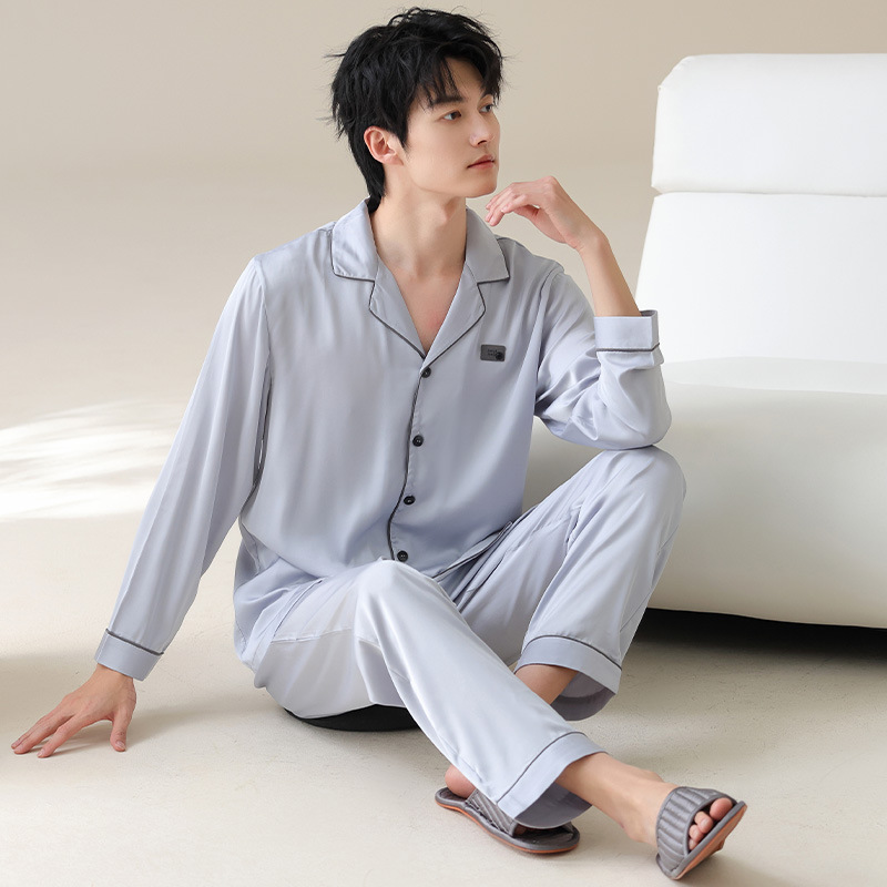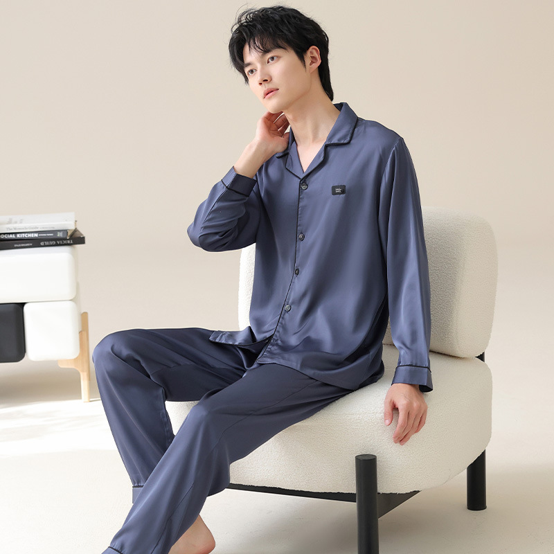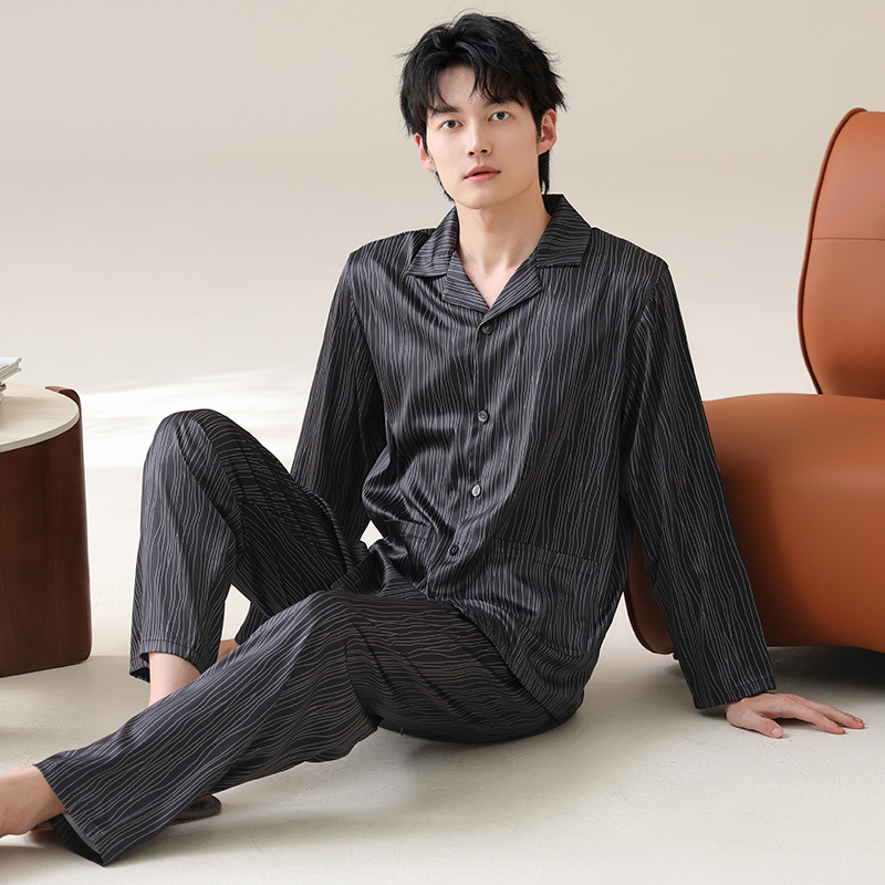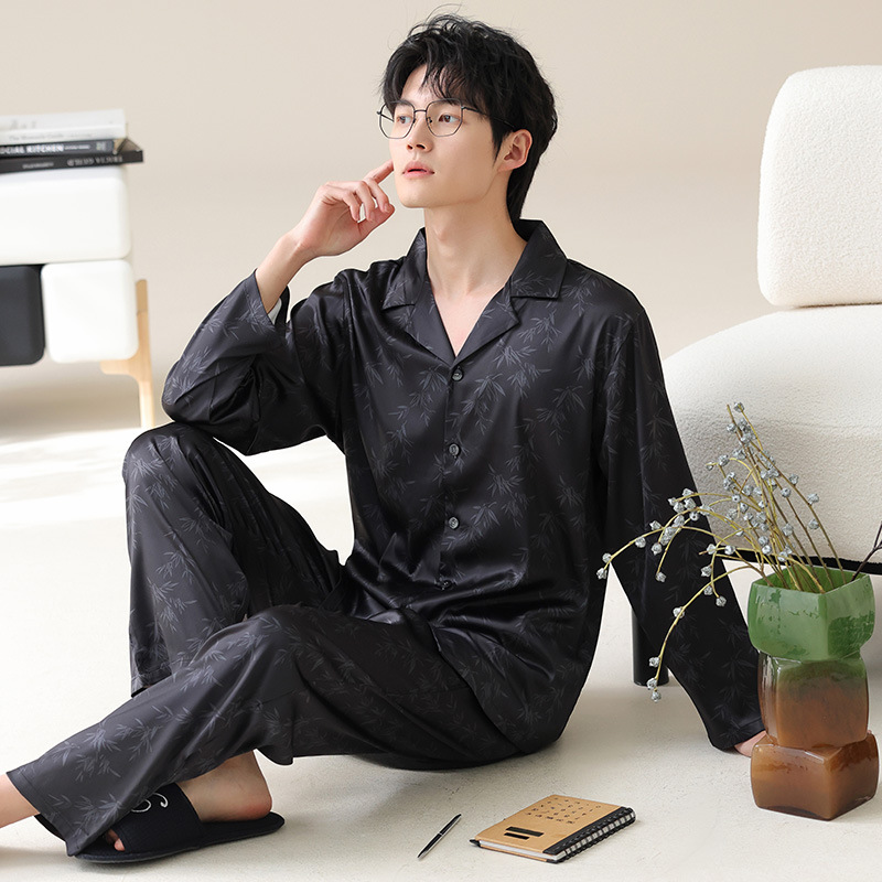 남성용 잠옷 봄, 가을 얇은 얼음 실크 긴팔 올 시즌 웨어러블 하이 엔드 대형 홈웨어 투피스 슈트스토어 가기