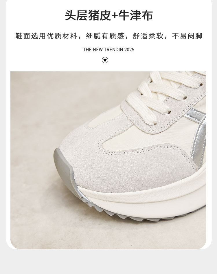 여성용 천연 가죽 두꺼운 밑창 데일리 슈즈 2025년 신상 가을 다용도 키높이 아가니 슈즈 인기 컬러블록 캐주얼 운동화