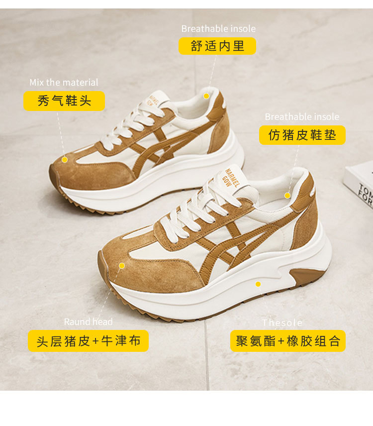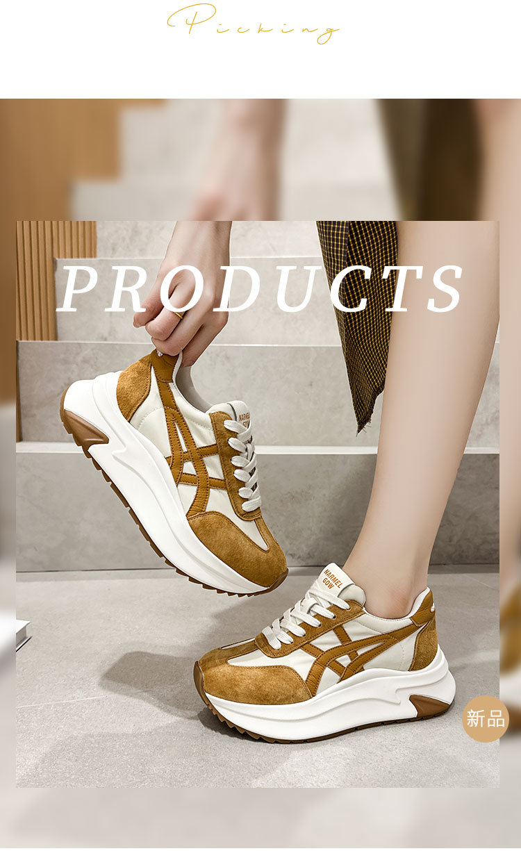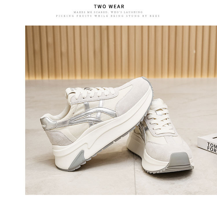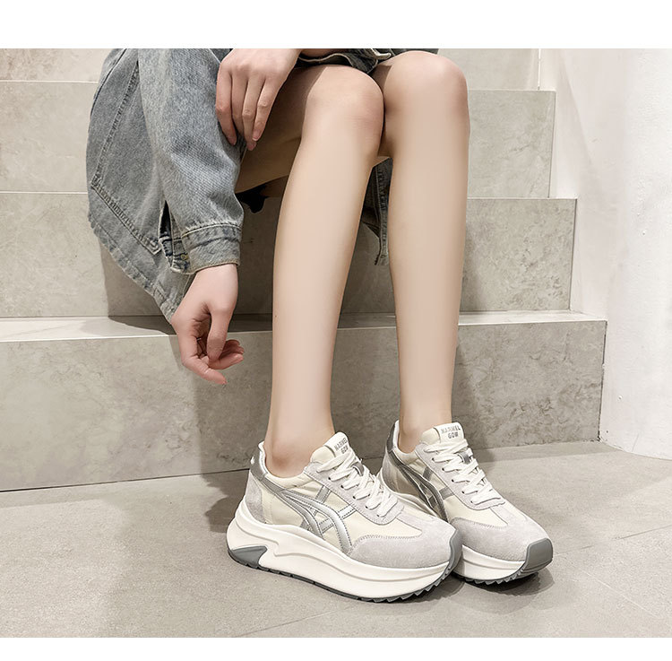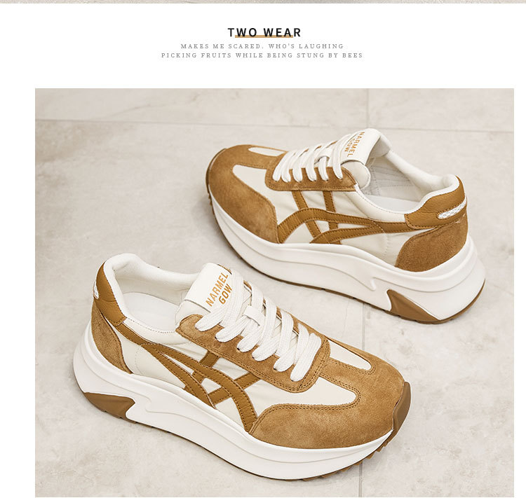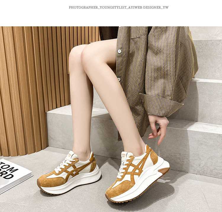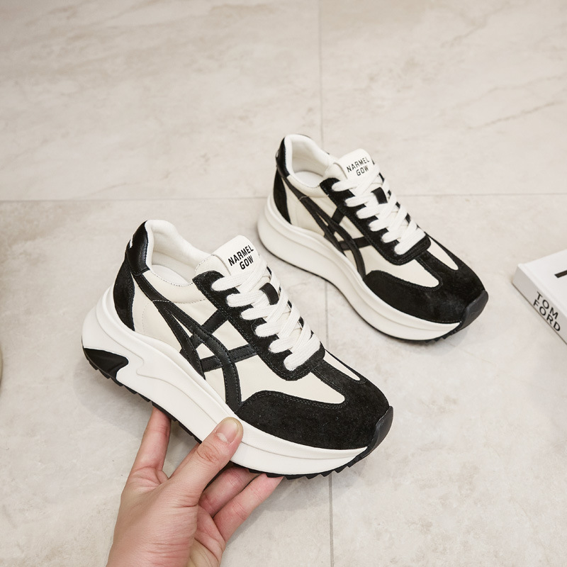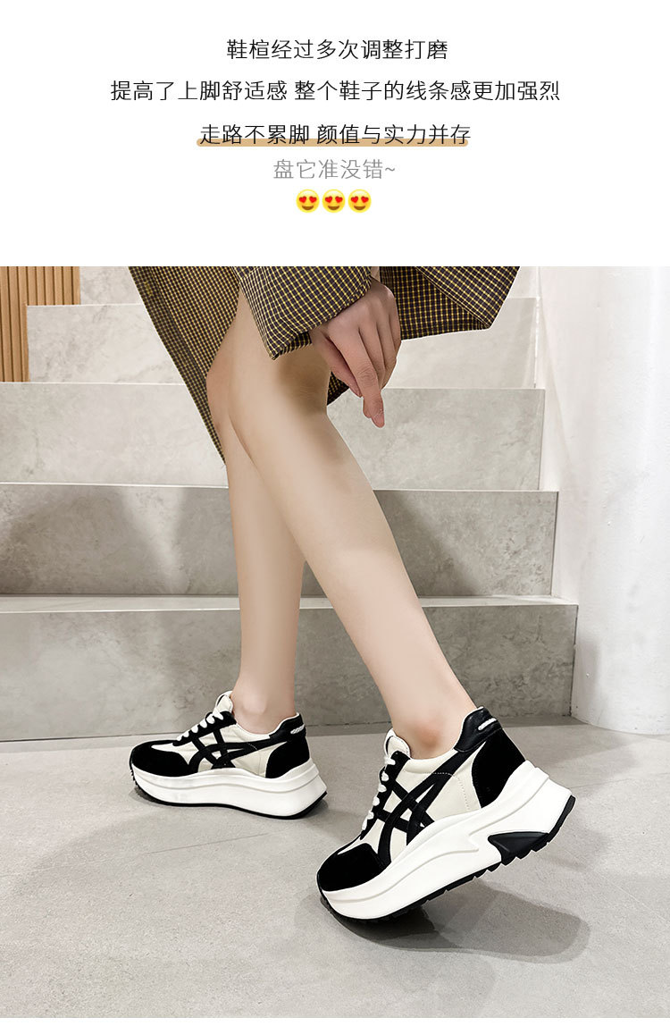 여성용 천연 가죽 두꺼운 밑창 데일리 슈즈 2025년 신상 가을 다용도 키높이 아가니 슈즈 인기 컬러블록 캐주얼 운동화스토어 가기