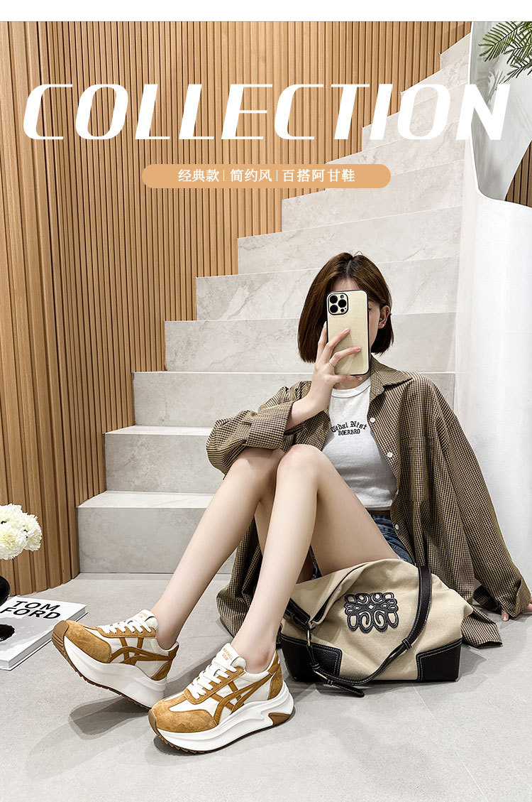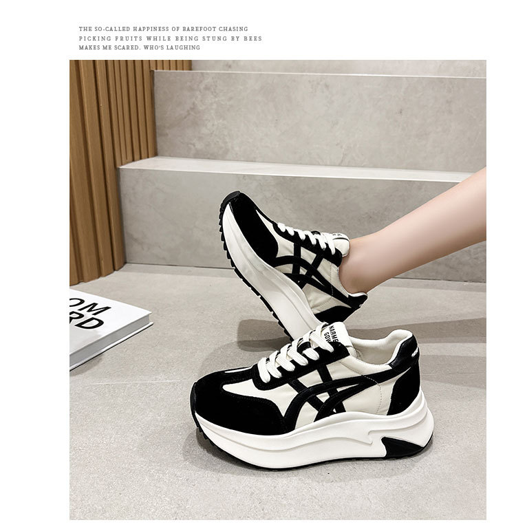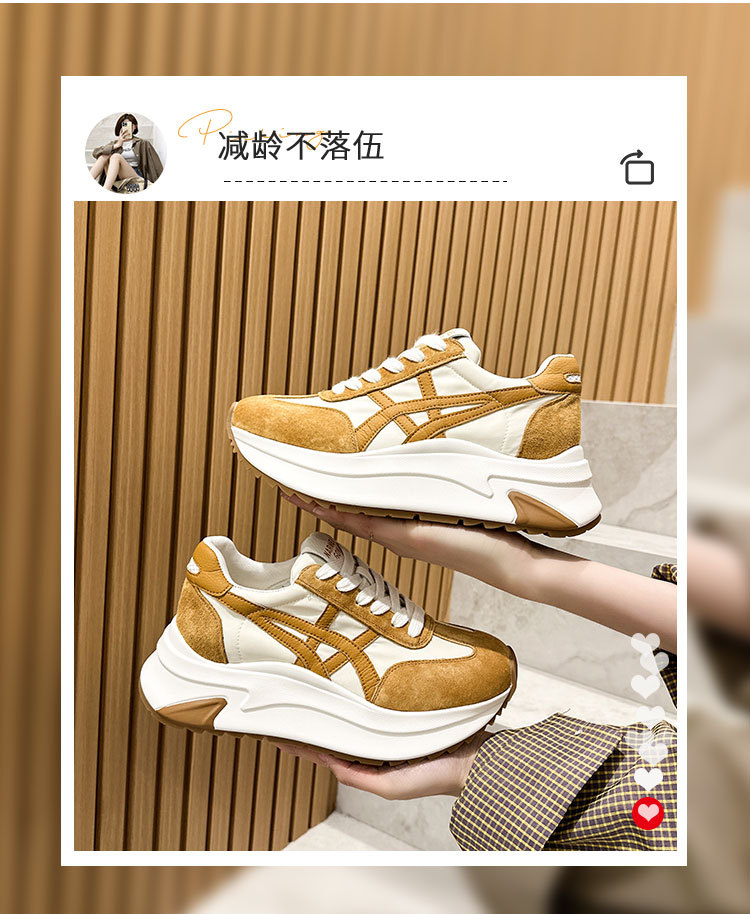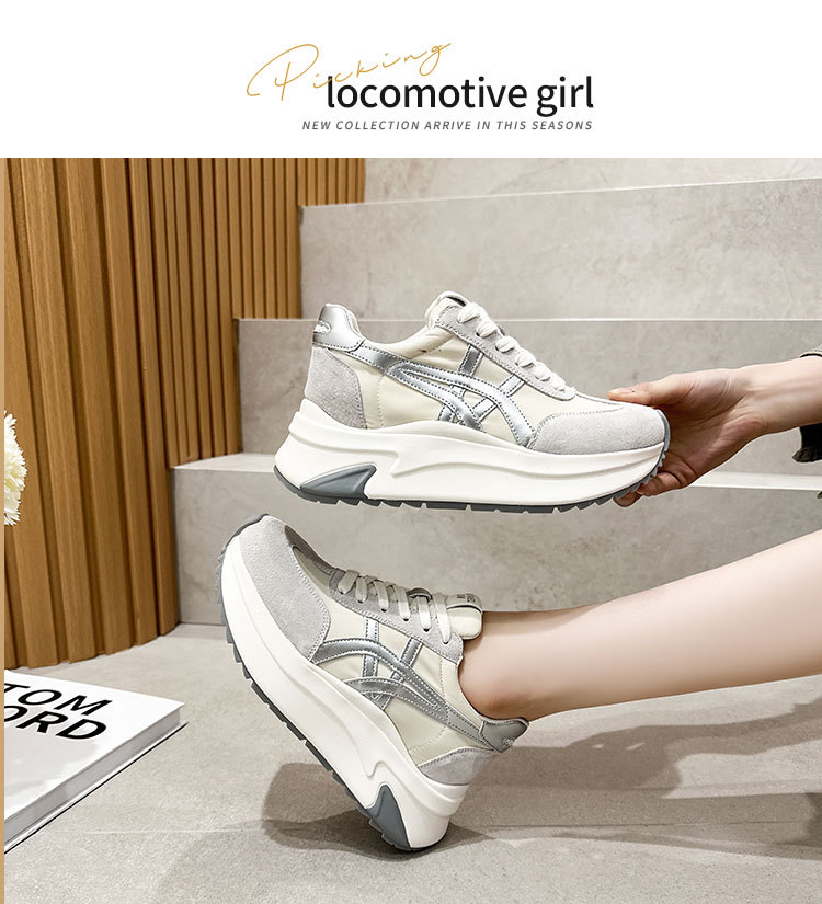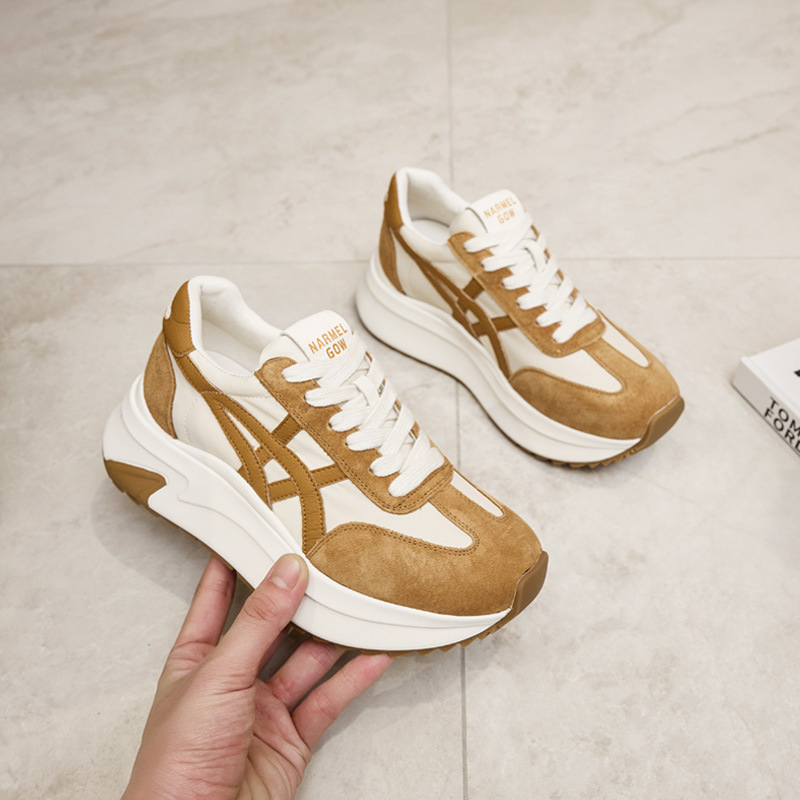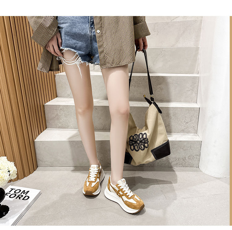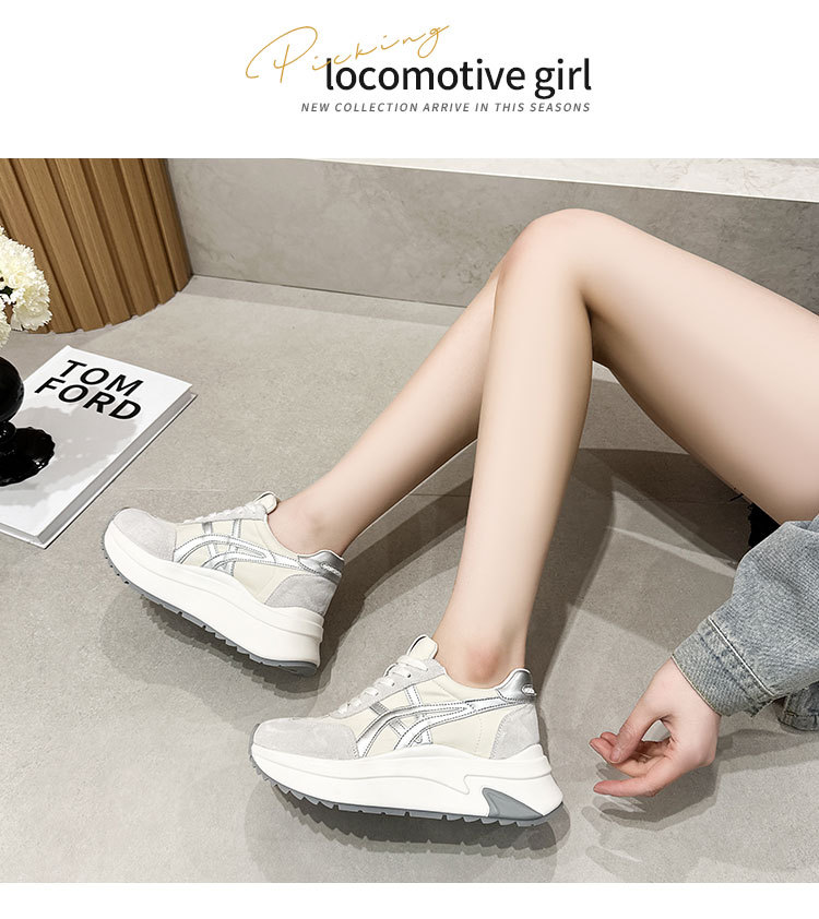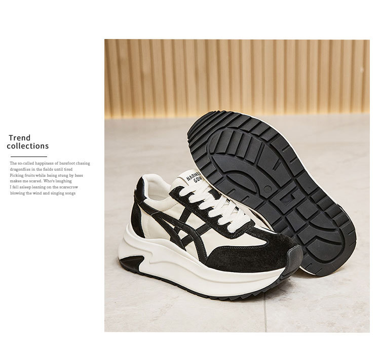 여성용 천연 가죽 두꺼운 밑창 데일리 슈즈 2025년 신상 가을 다용도 키높이 아가니 슈즈 인기 컬러블록 캐주얼 운동화스토어 가기