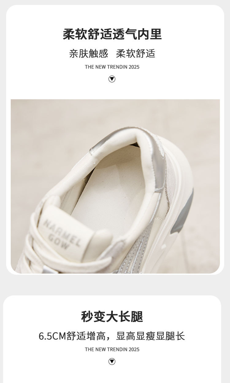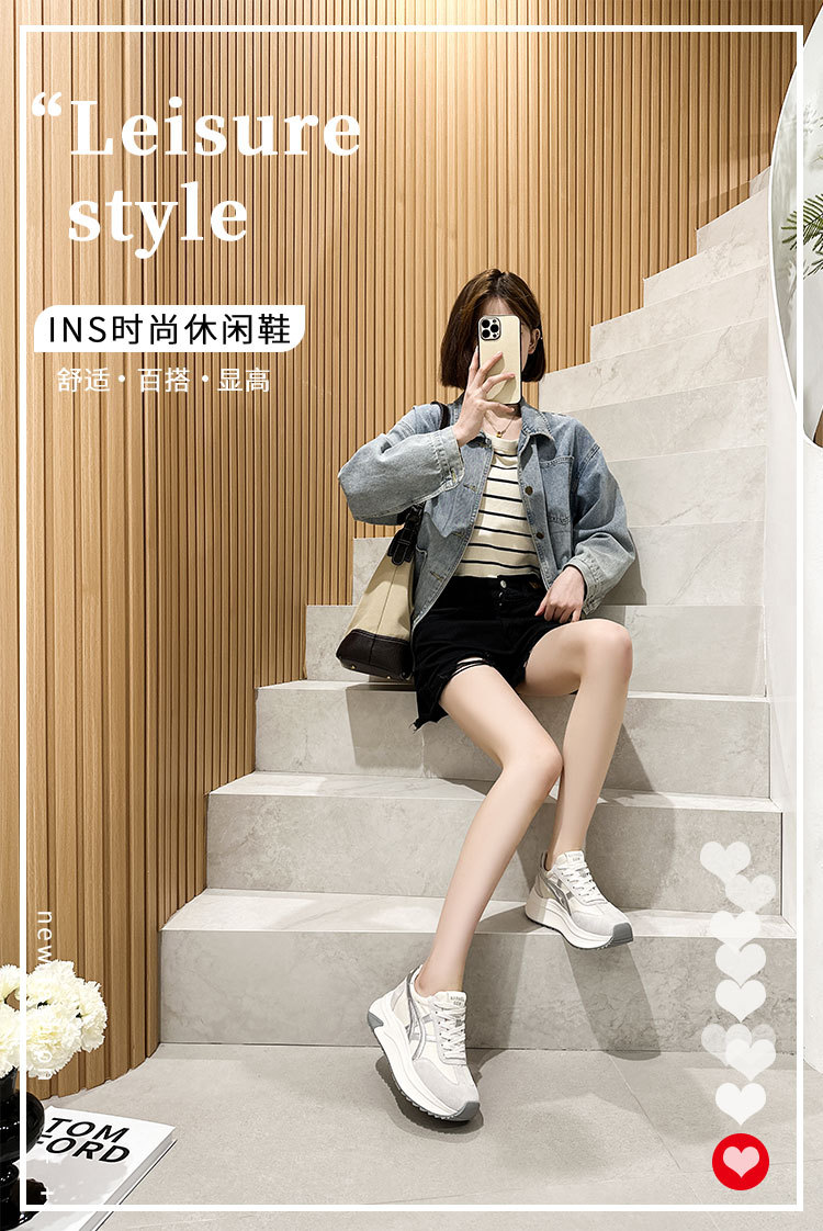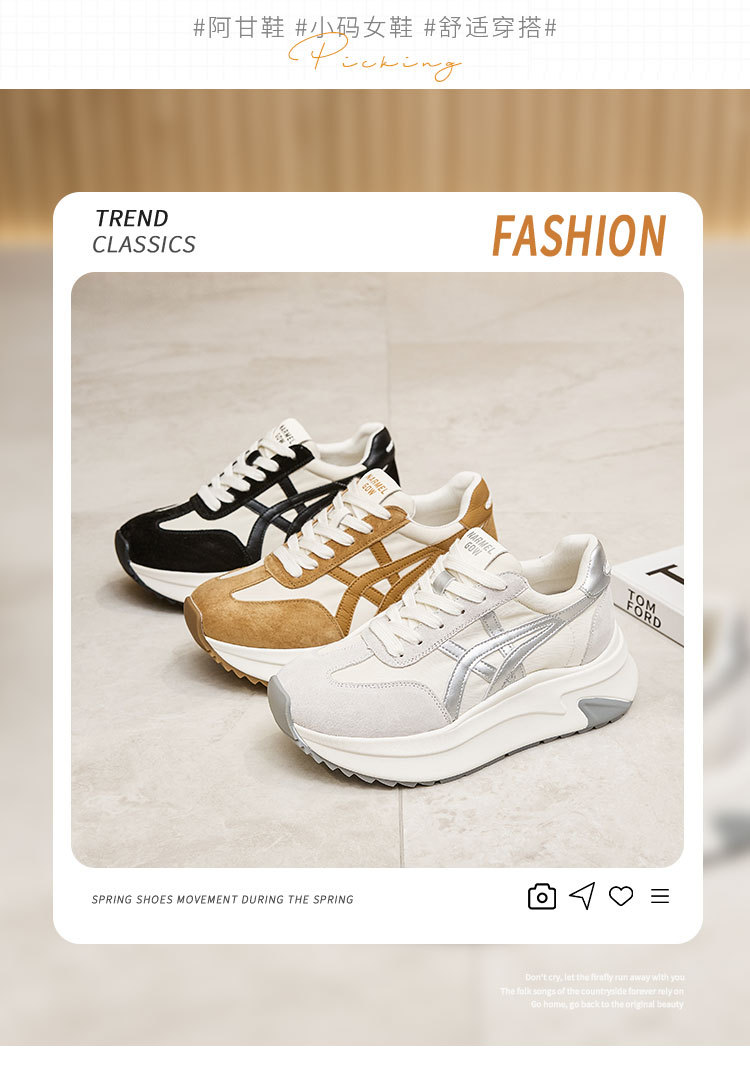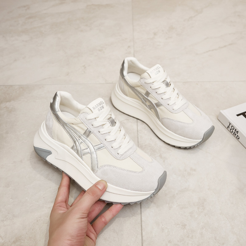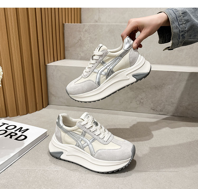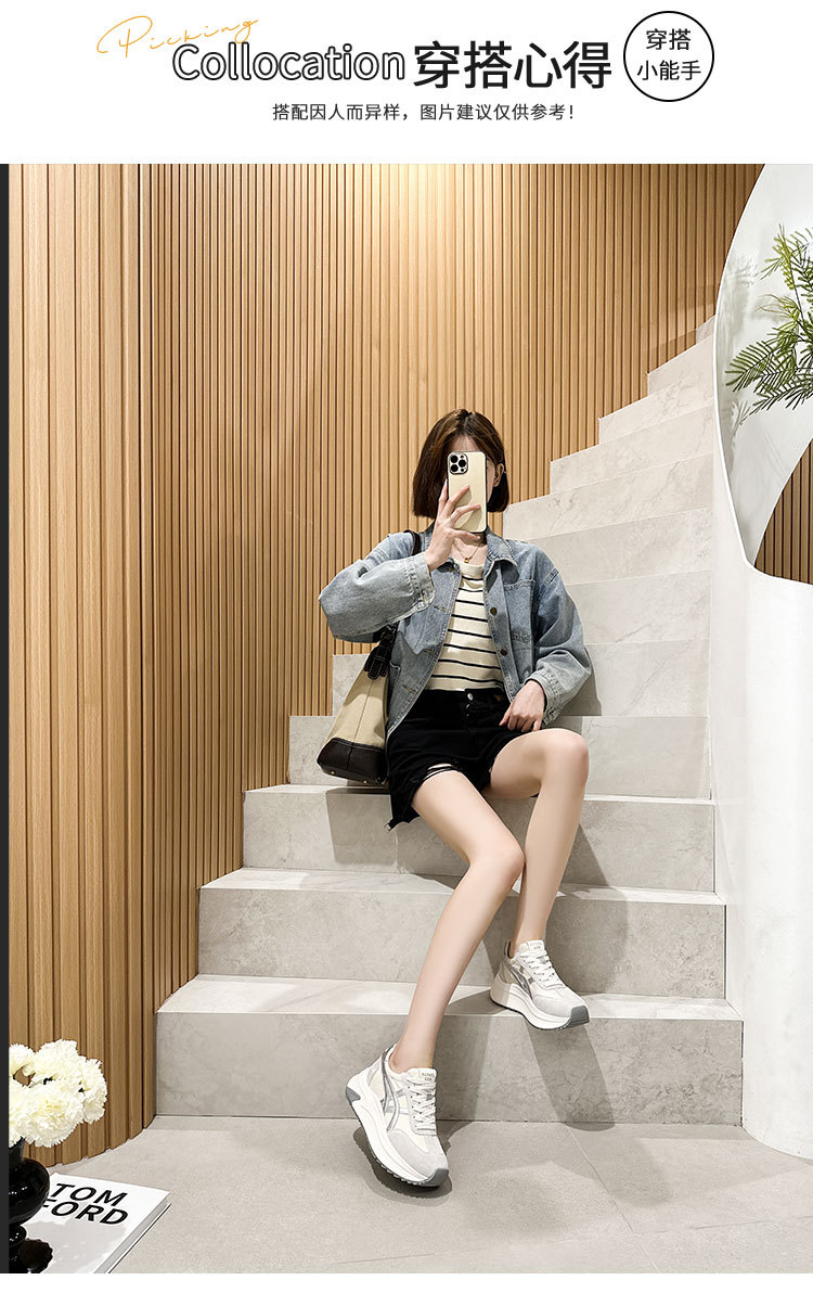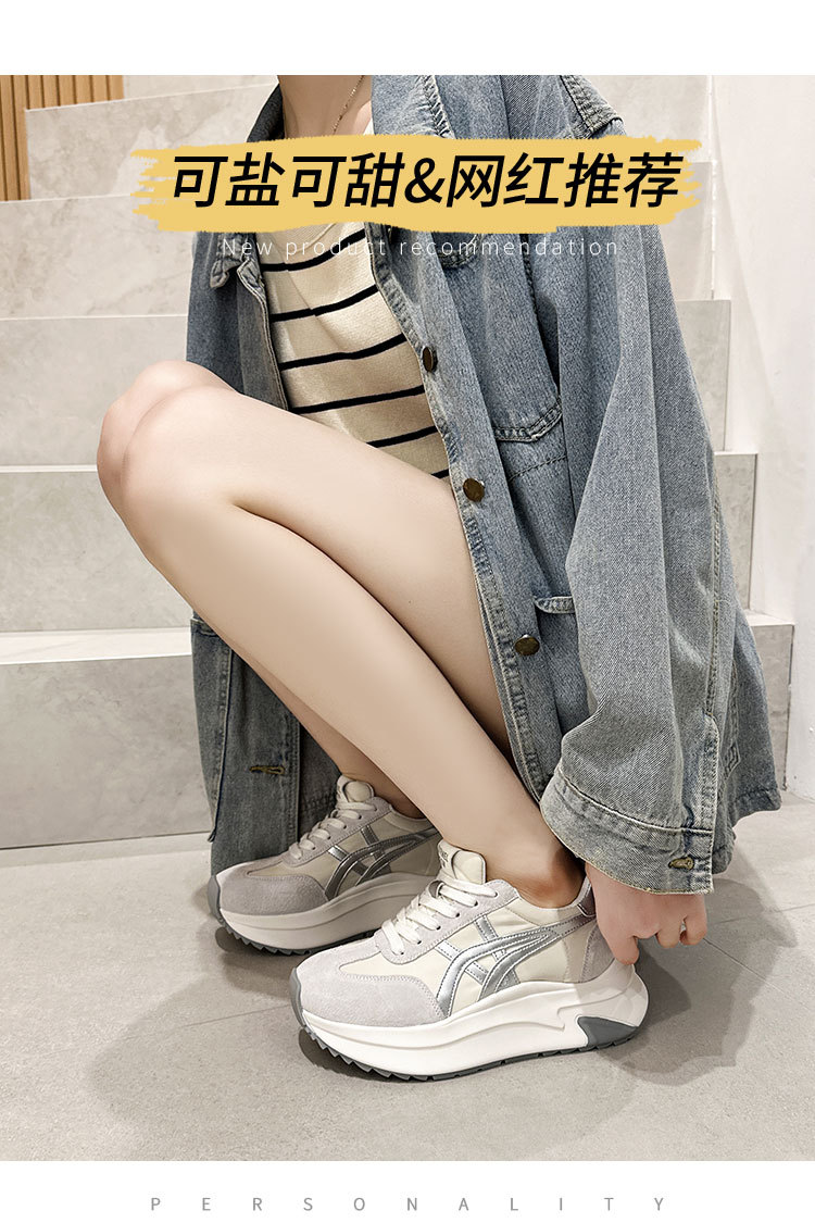 여성용 천연 가죽 두꺼운 밑창 데일리 슈즈 2025년 신상 가을 다용도 키높이 아가니 슈즈 인기 컬러블록 캐주얼 운동화스토어 가기