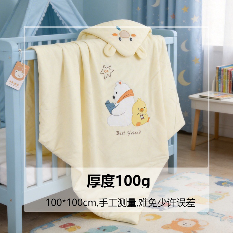 25 봄과 여름 신생아 아기 가방 100g 만화 자수 얇은 면화 장식 아기 이불 100*100cm