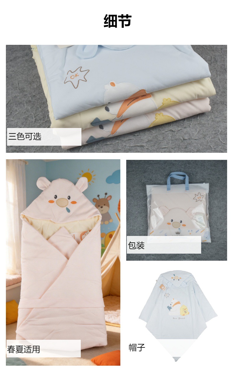 25 봄과 여름 신생아 아기 가방 100g 만화 자수 얇은 면화 장식 아기 이불 100*100cm스토어 가기