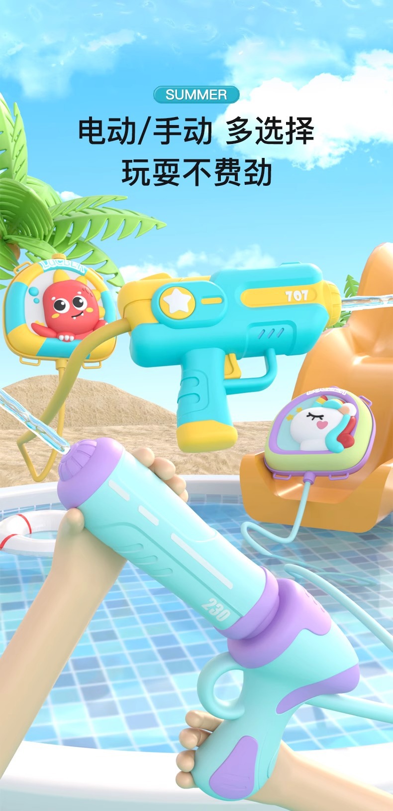 국경을 넘는 어린이날 전동 연사 물총 장난감, 풀러블형 대용량 배낭 물총, 남아 여아 해변 물총