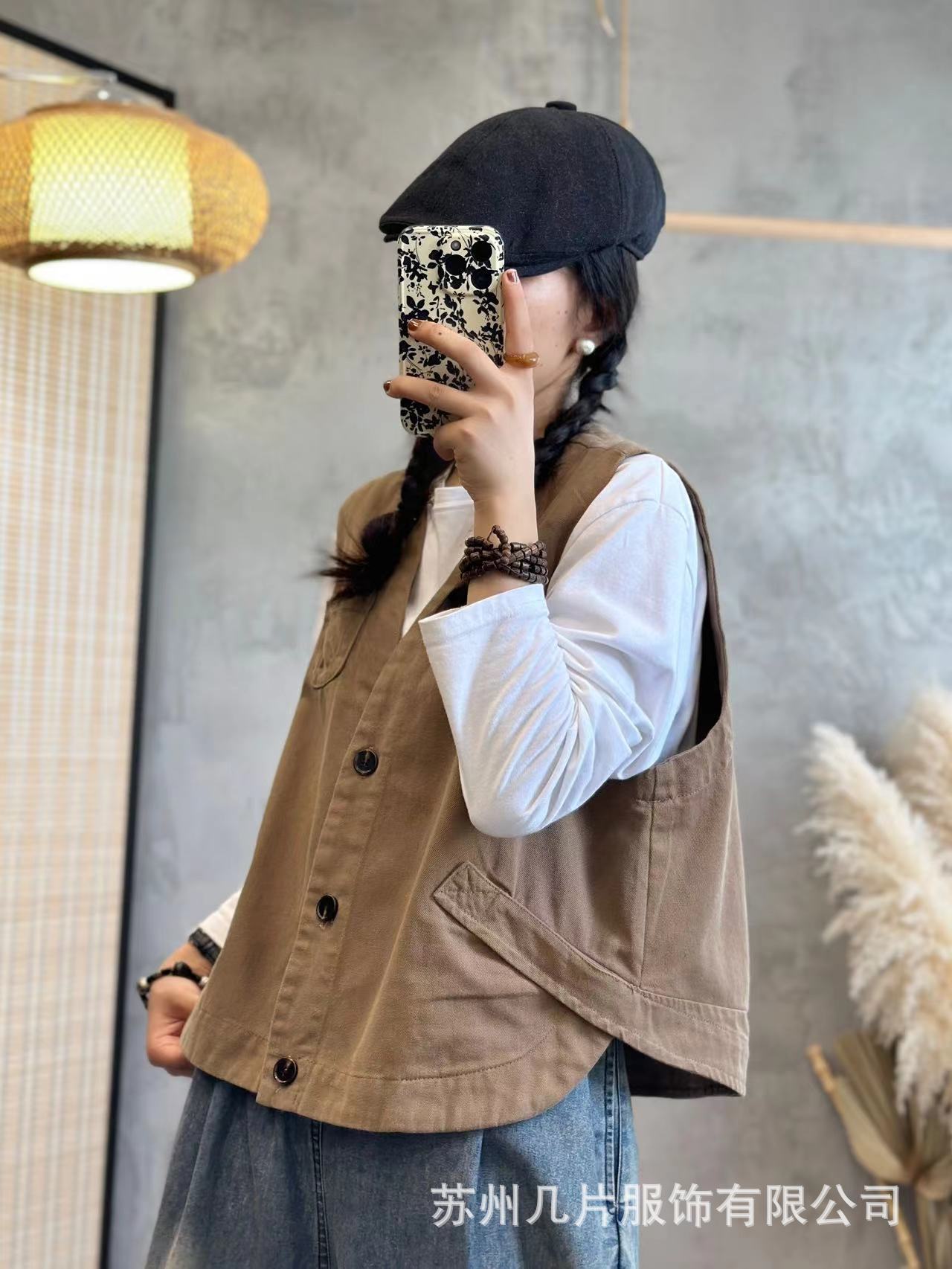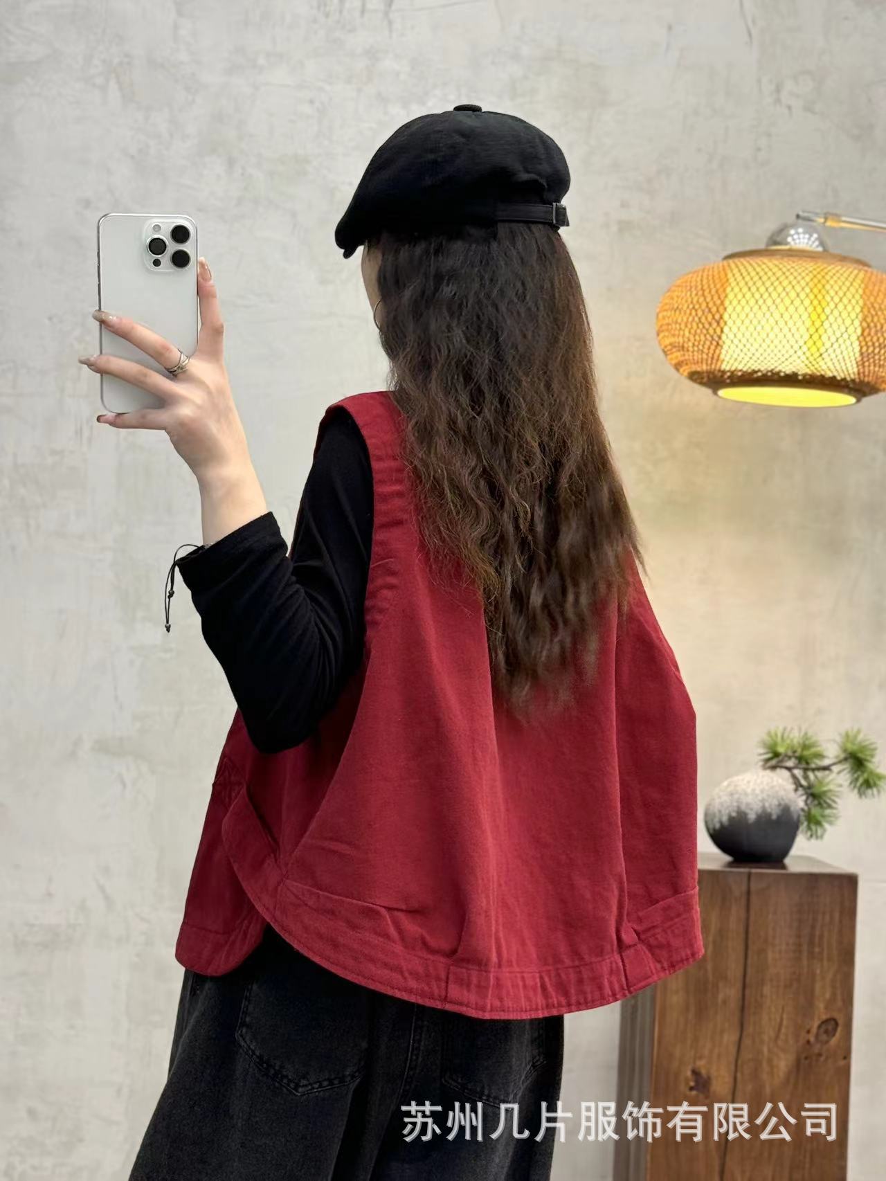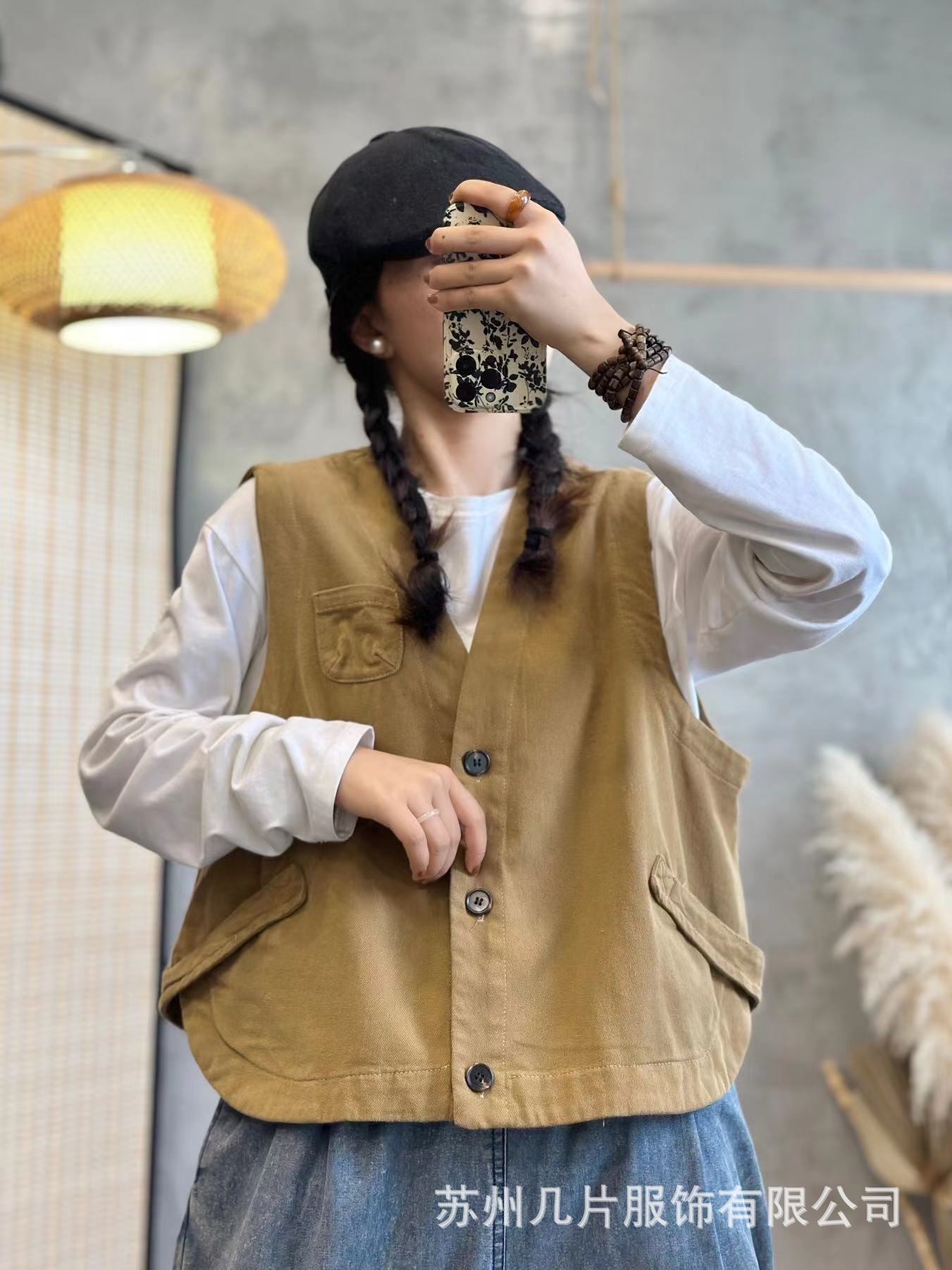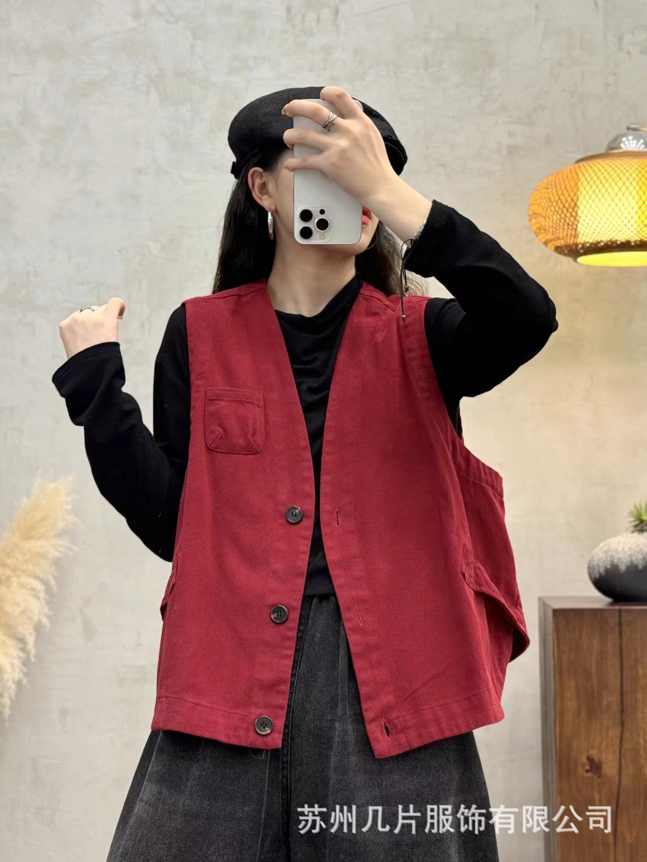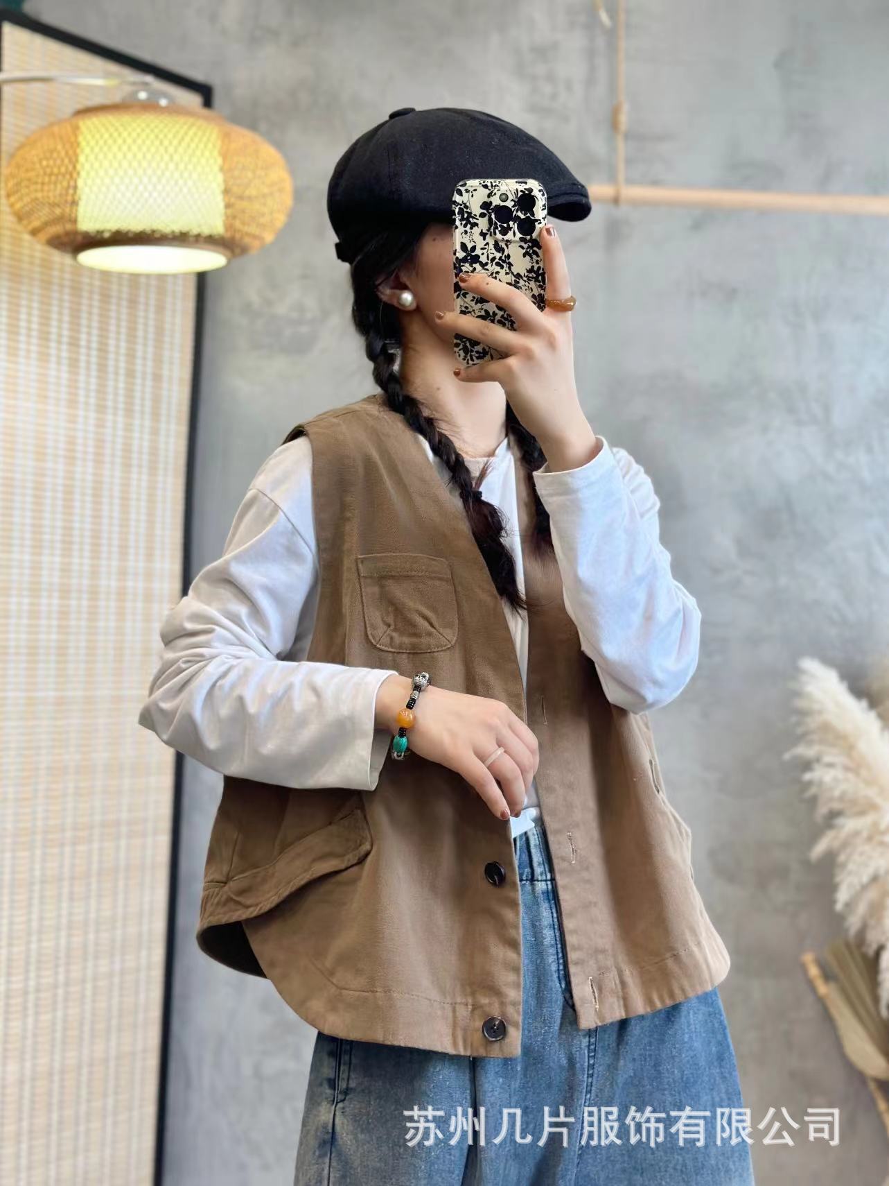 캐주얼 다목적 솔리드 컬러 코튼 V-넥 작은 조끼 여성 2025 년 봄과 여름 새로운 느슨한 슬림 핏 카디건 조끼스토어 가기