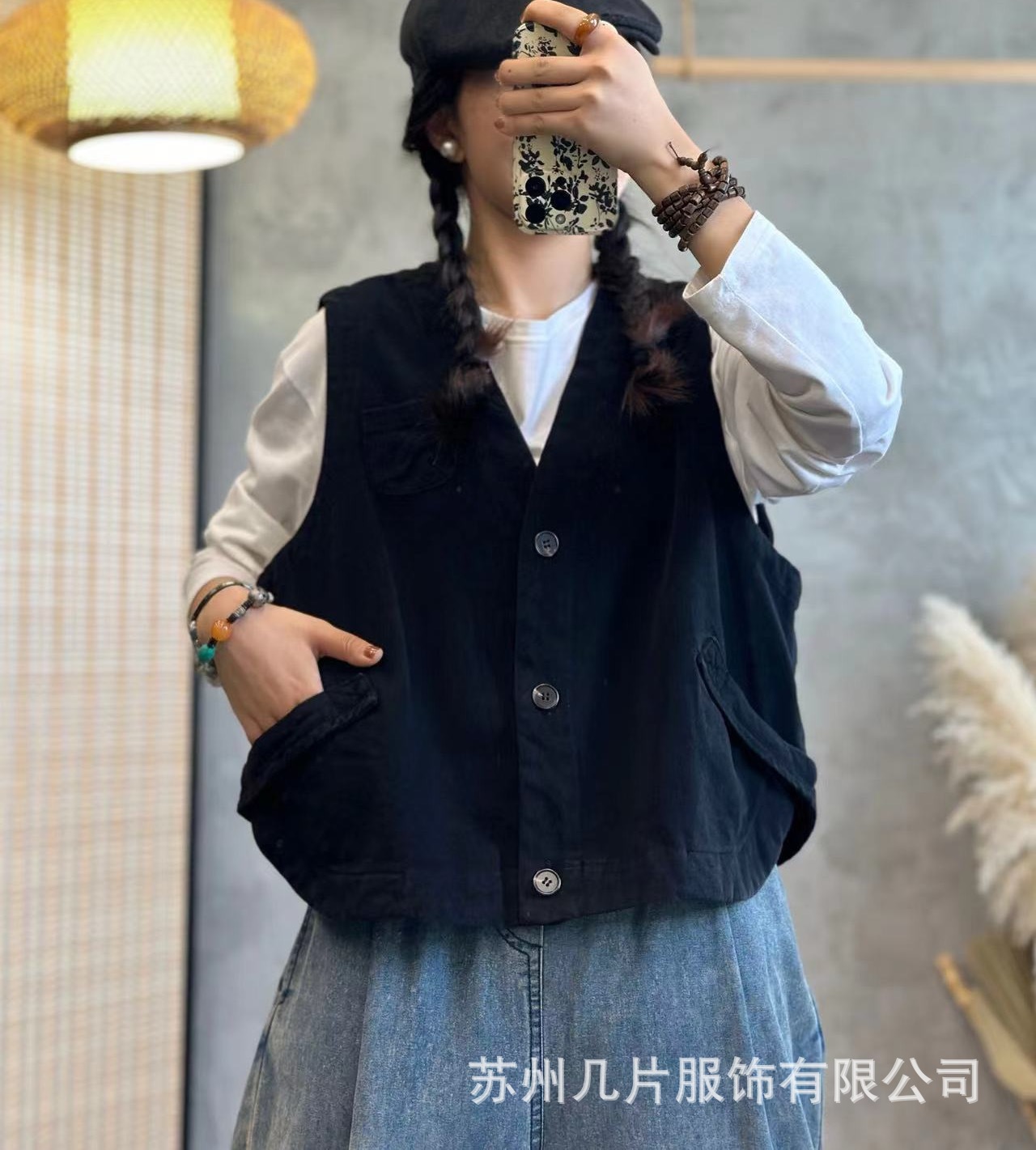 캐주얼 다목적 솔리드 컬러 코튼 V-넥 작은 조끼 여성 2025 년 봄과 여름 새로운 느슨한 슬림 핏 카디건 조끼