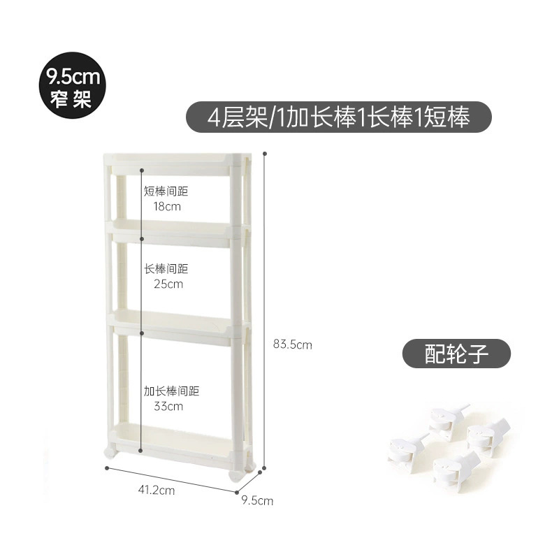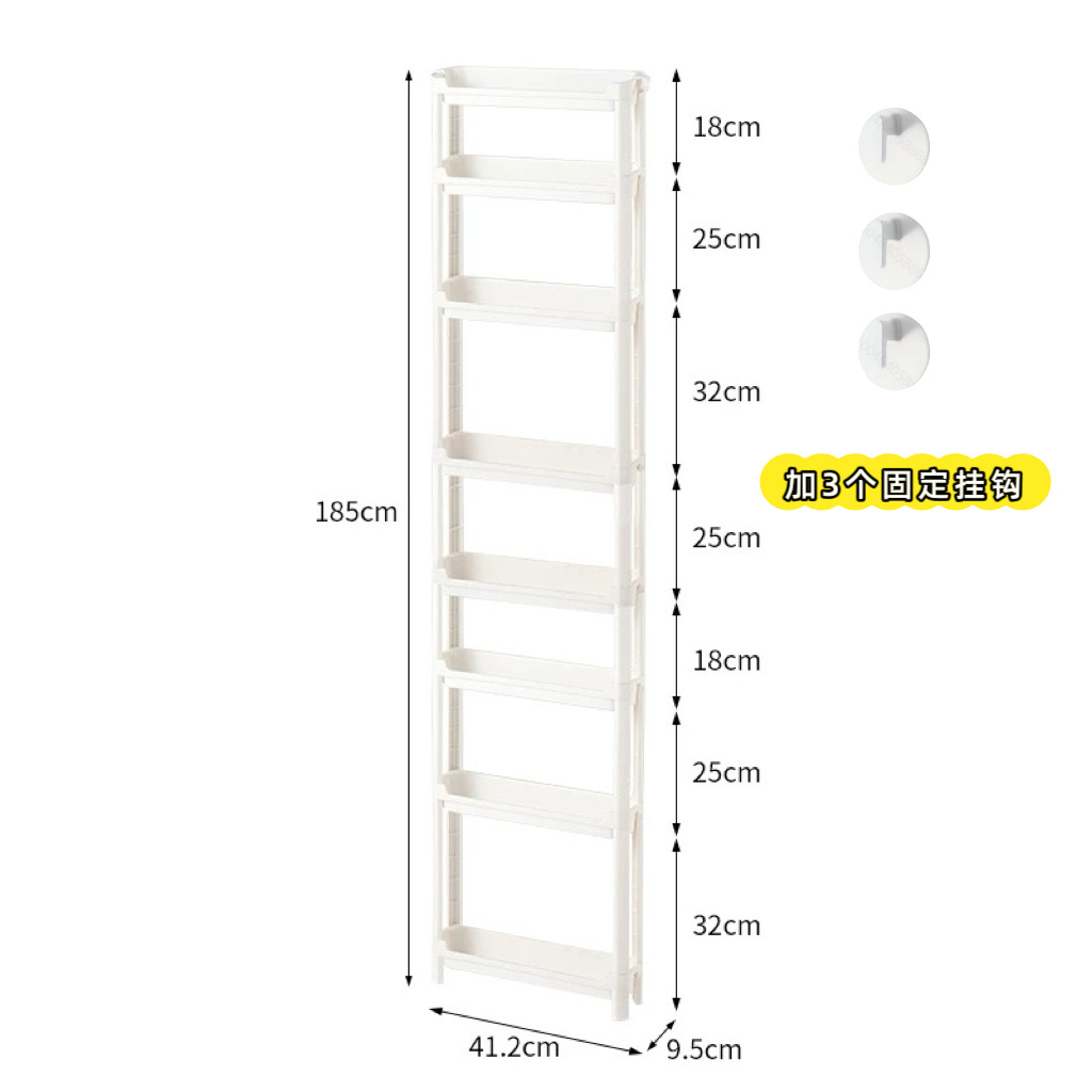 • 폭 9.5cmcm, 높이 8층, 바퀴 없음, 고정 벽걸이 3개(짧은 2개, 긴 3개, 확장 막대 2개)