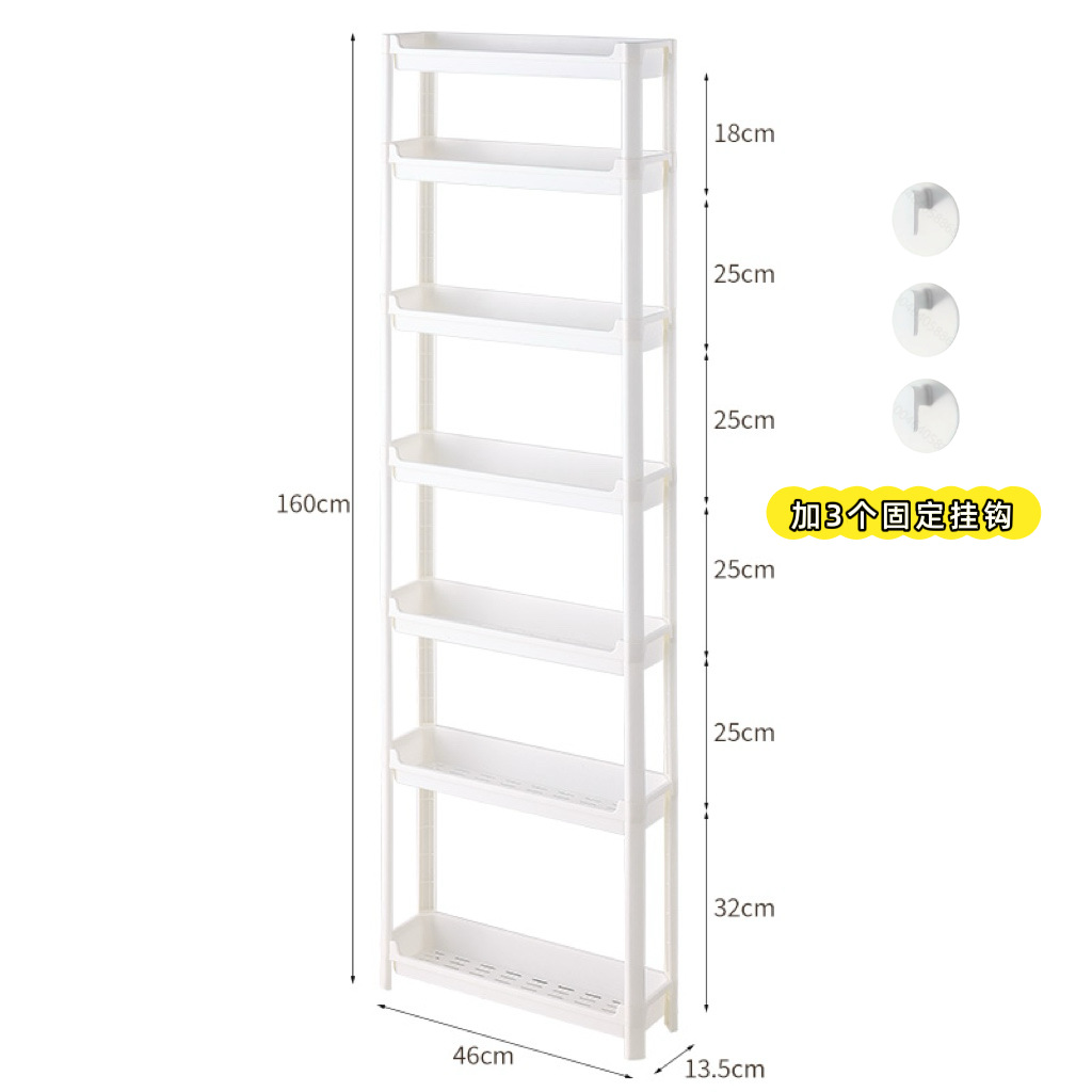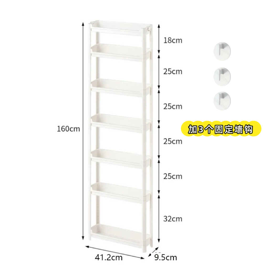 • 폭 13.5cmcm, 높이 7층, 바퀴 없이 고정 벽걸이 3개 제공(짧은 1개, 긴 4개, 확장 막대 1개)