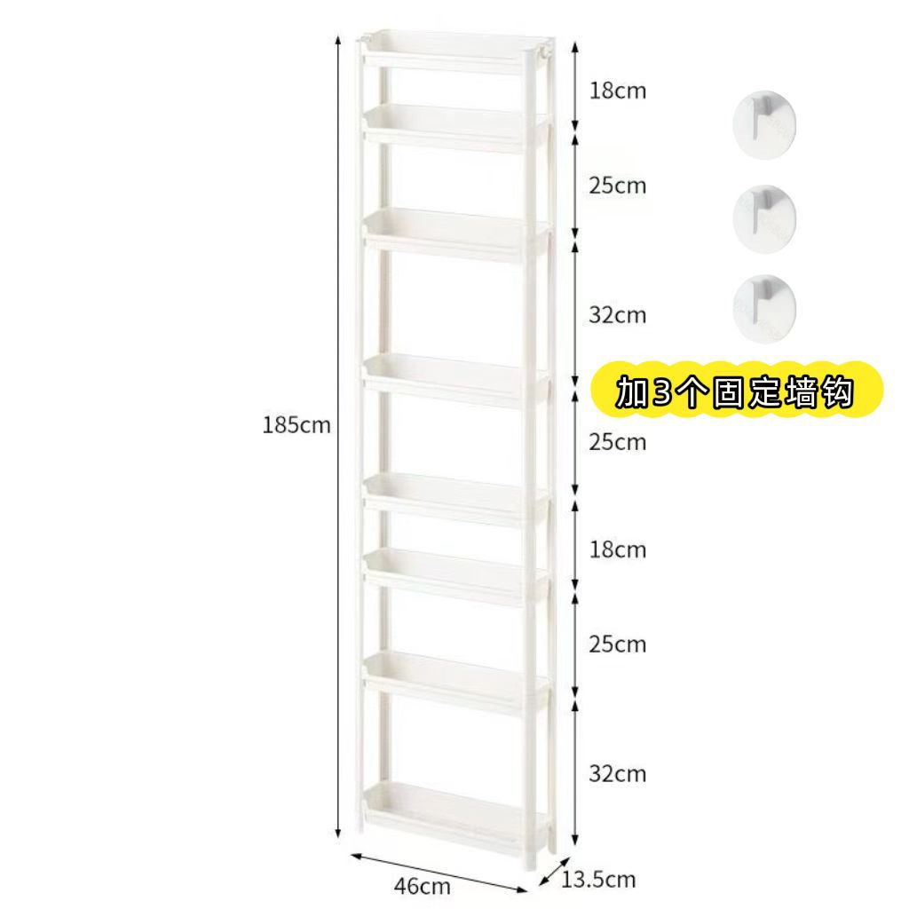 • 폭 13.5cmcm, 높이 8층, 바퀴 없음, 고정 벽걸이 3개 제공(짧은 2개, 긴 3개, 매우 긴 2개)