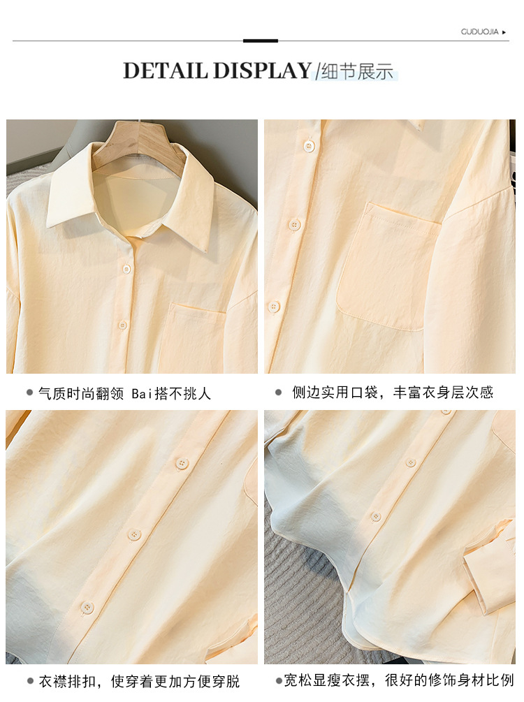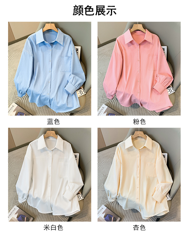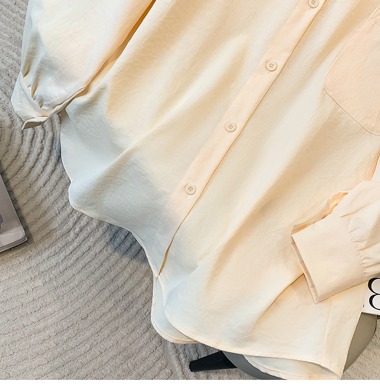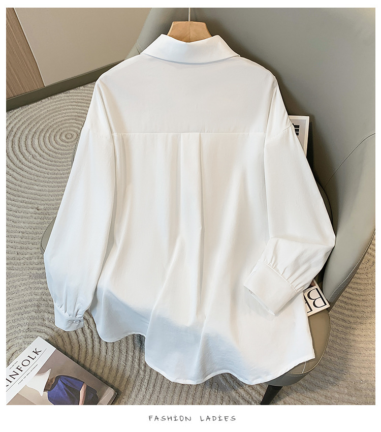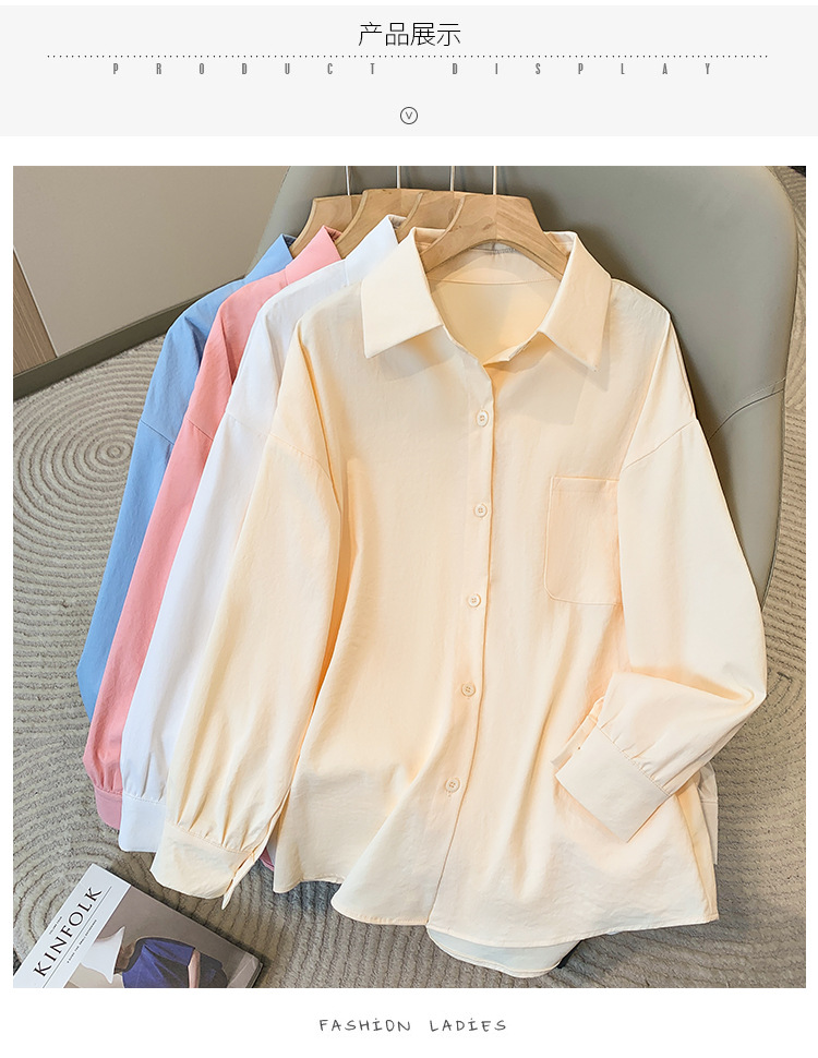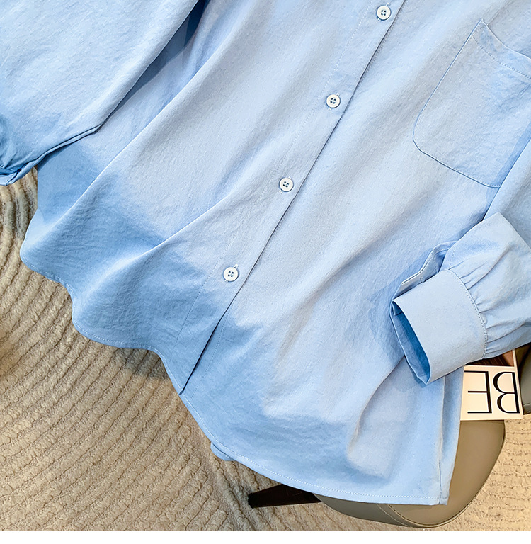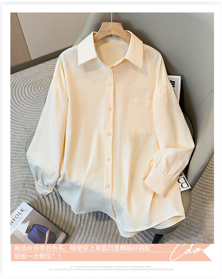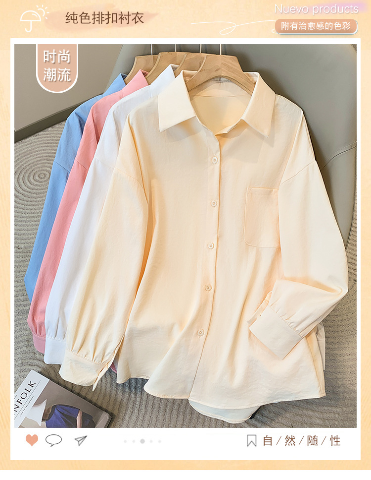 봄과 여름 새로운 플러스 사이즈 여성의 긴 소매 셔츠 간단한 큰 포켓 느슨한 캐주얼 톱 5109 #스토어 가기