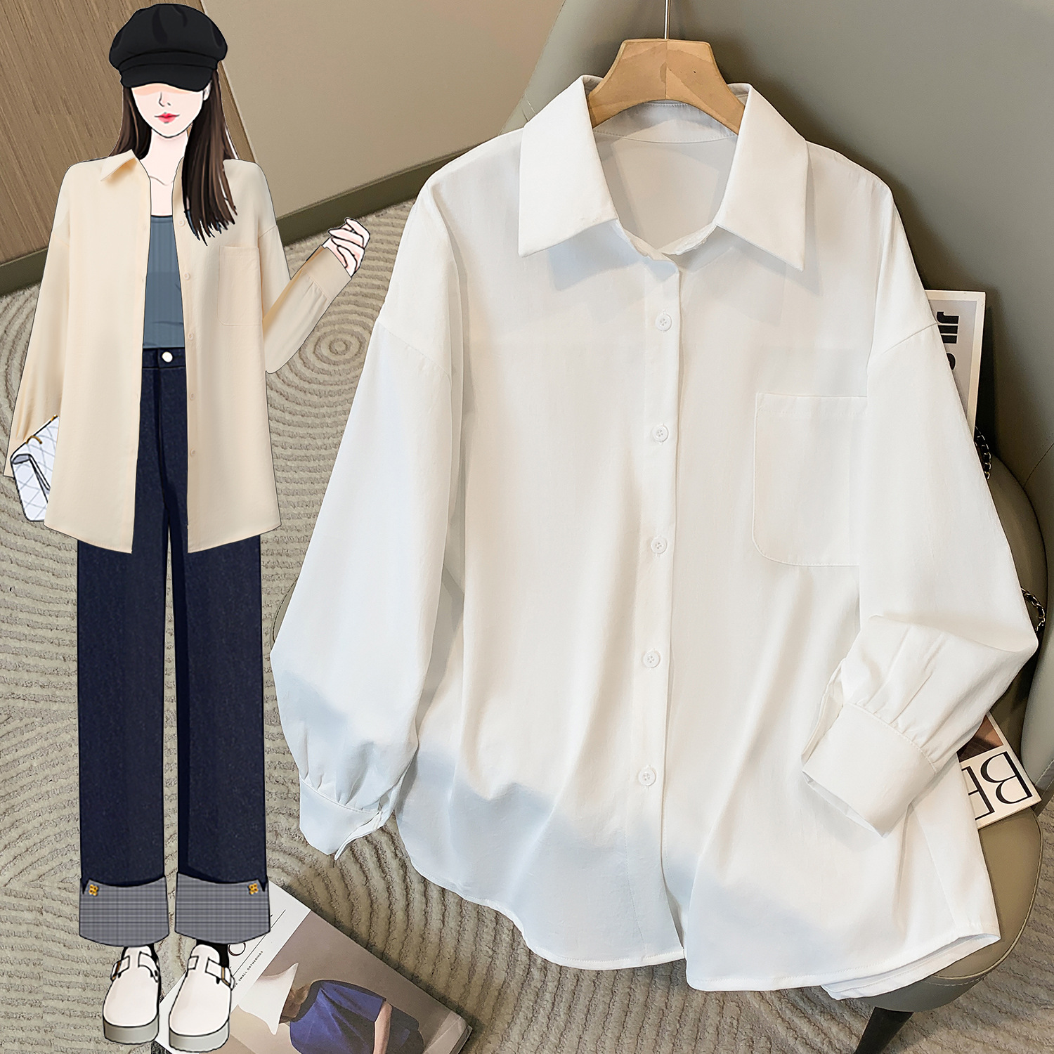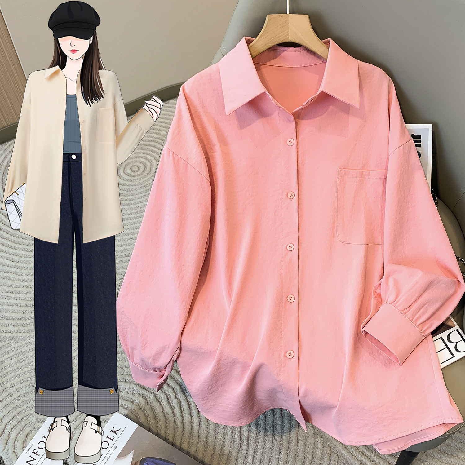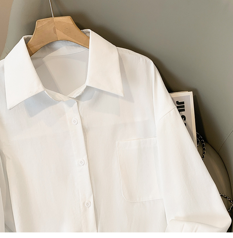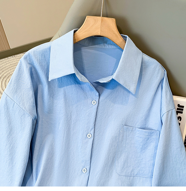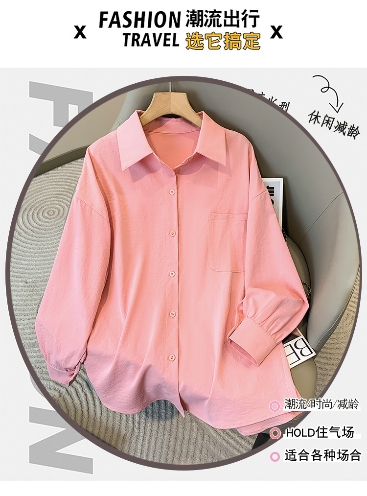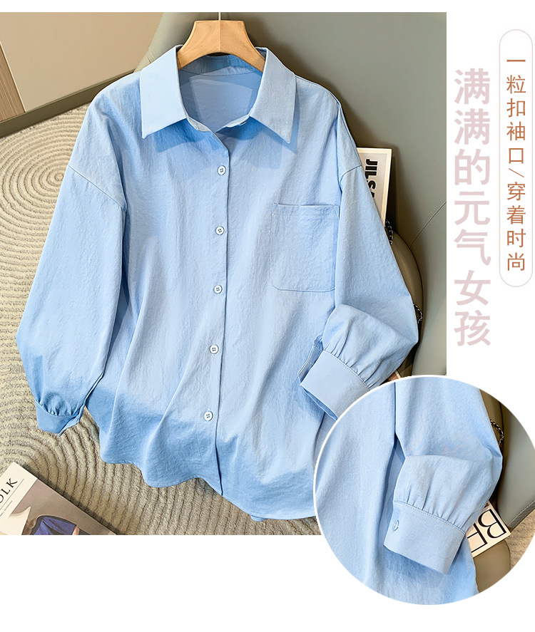 봄과 여름 새로운 플러스 사이즈 여성의 긴 소매 셔츠 간단한 큰 포켓 느슨한 캐주얼 톱 5109 #스토어 가기