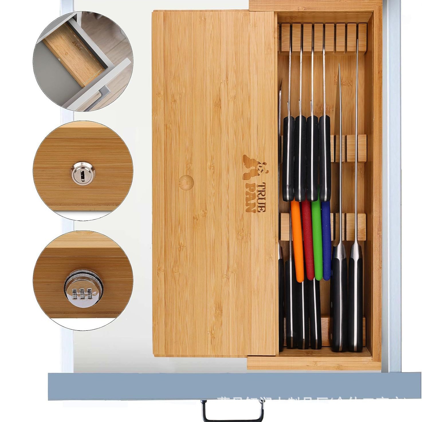 나무 칼 저장 상자 어린이 안전 서랍 칼 홀더 칼 마무리 상자 대나무 개폐식 식기 수용 상자스토어 가기