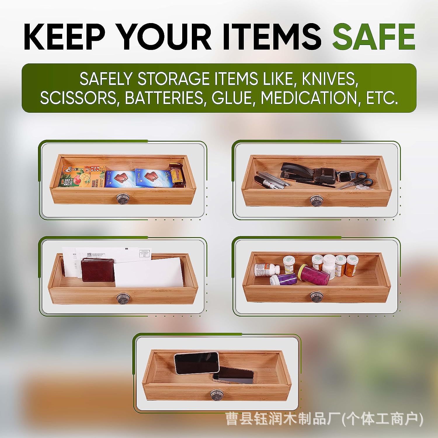 나무 칼 저장 상자 어린이 안전 서랍 칼 홀더 칼 마무리 상자 대나무 개폐식 식기 수용 상자