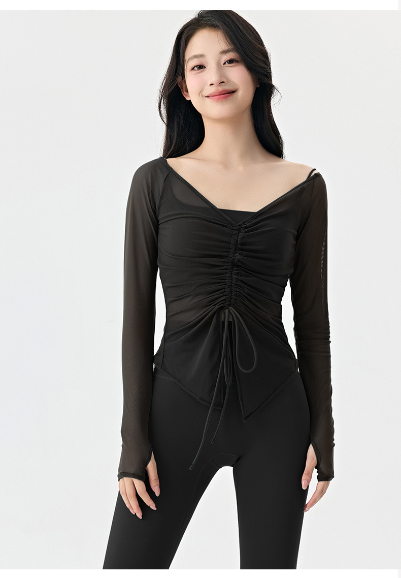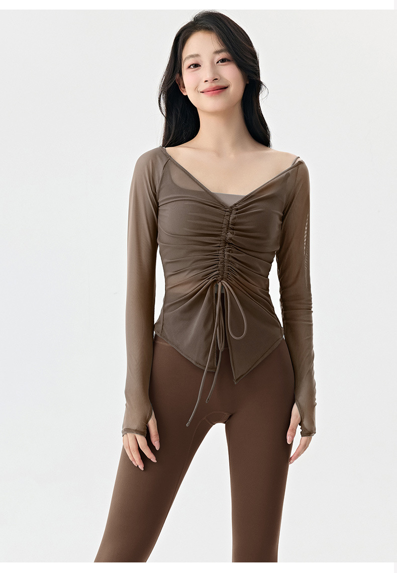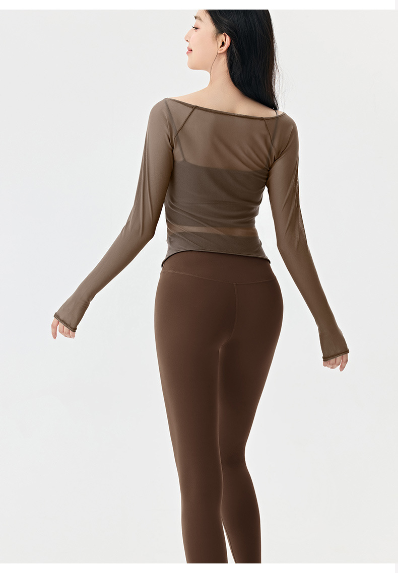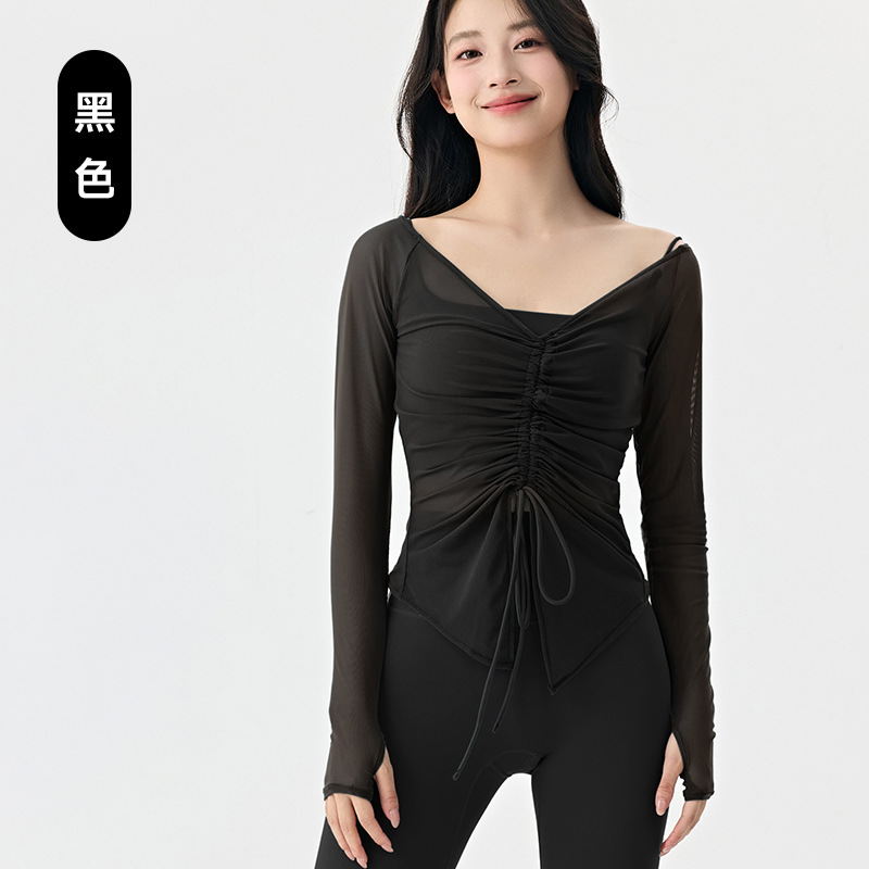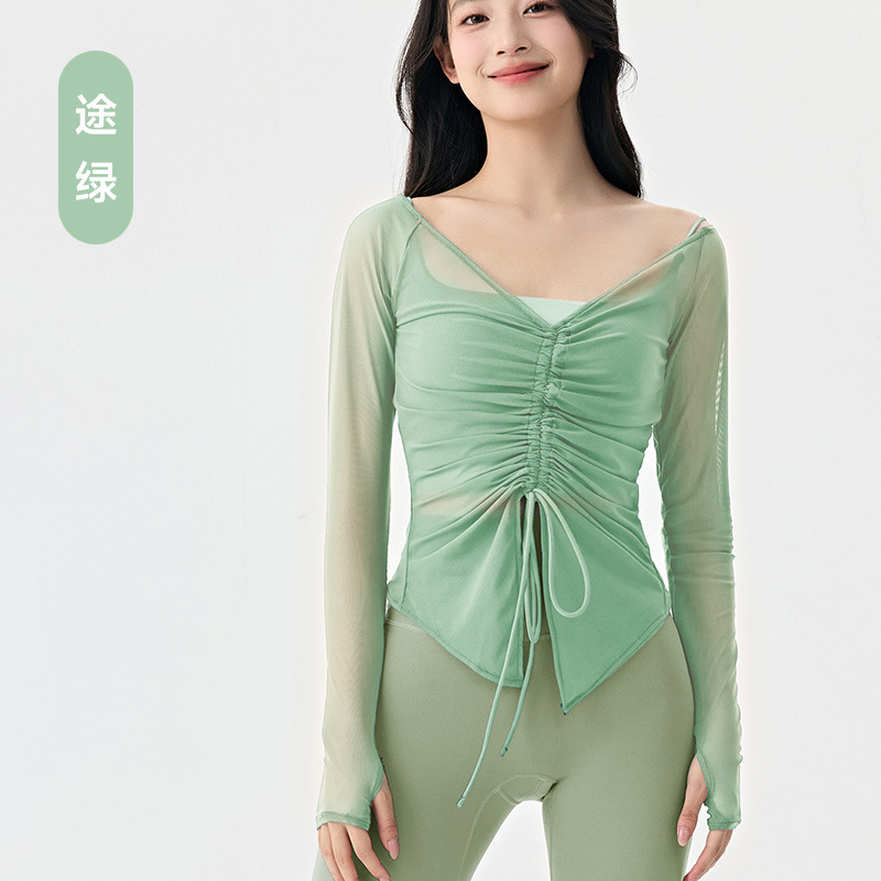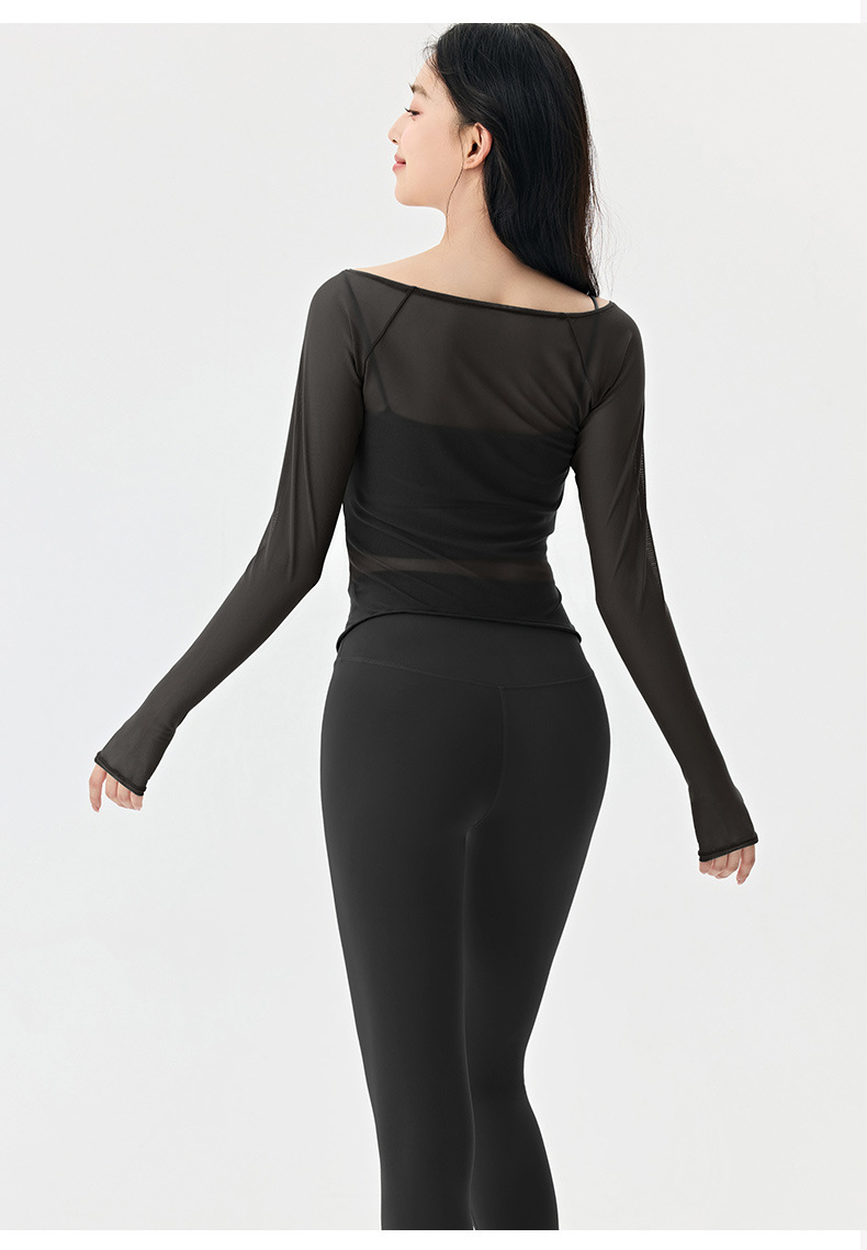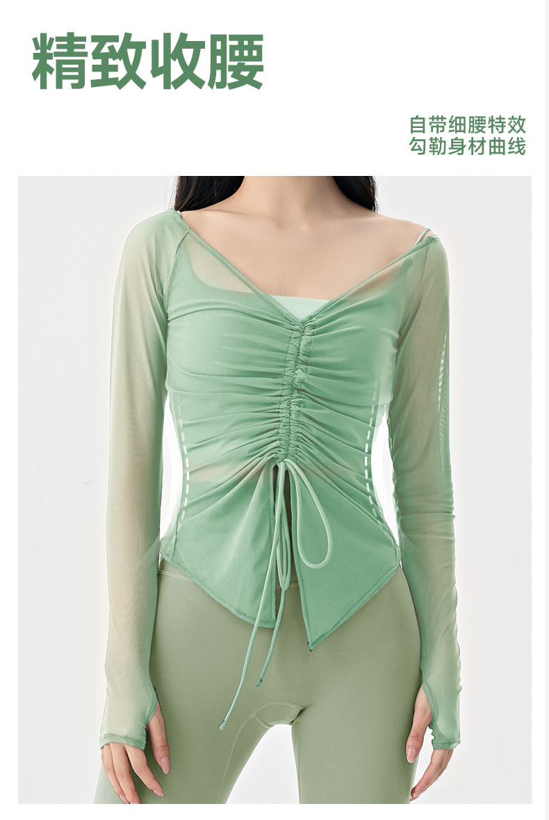 봄여름 여성용 메쉬 스포츠 블라우스, 허리를 잘록하게 잡아주는 슬리밍 요가복, 긴팔 티셔츠, 얇은 통기성 피트니스 상의