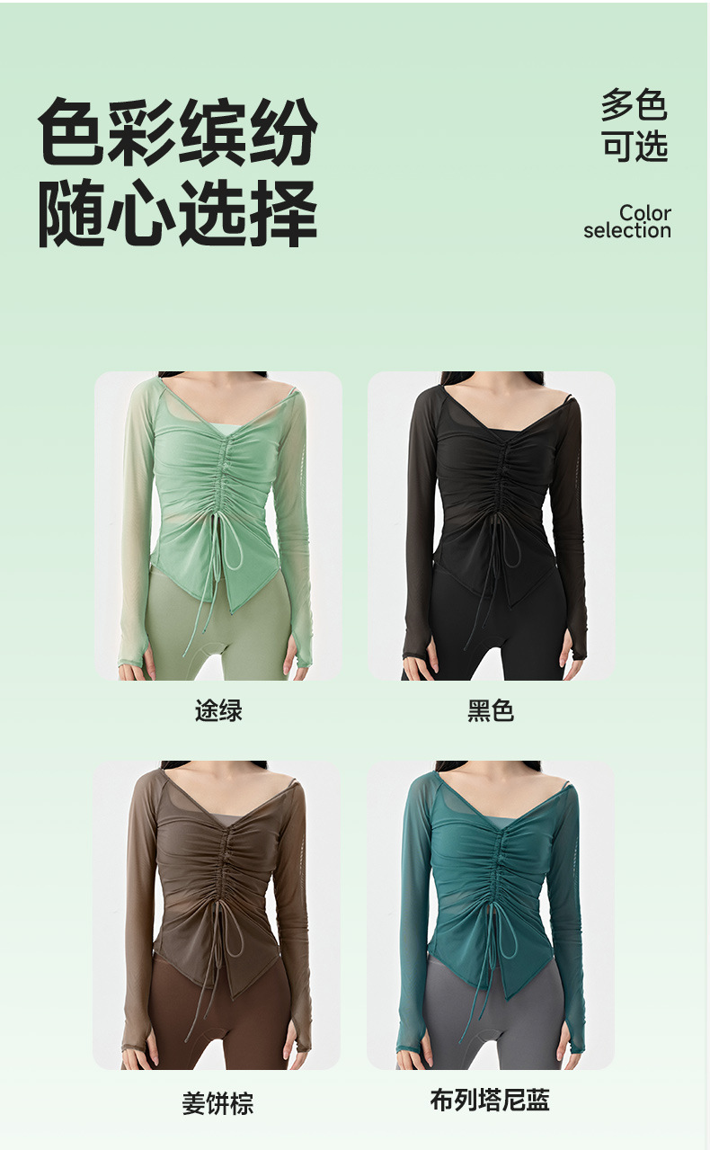 봄여름 여성용 메쉬 스포츠 블라우스, 허리를 잘록하게 잡아주는 슬리밍 요가복, 긴팔 티셔츠, 얇은 통기성 피트니스 상의스토어 가기