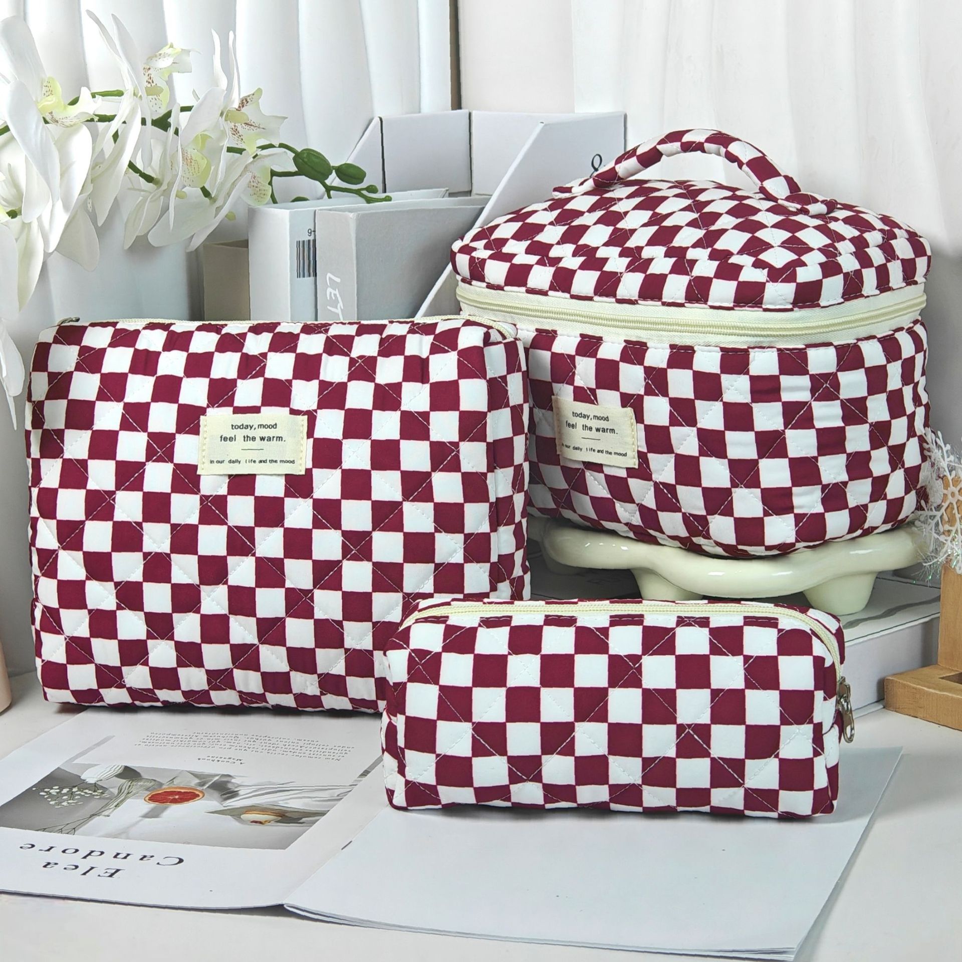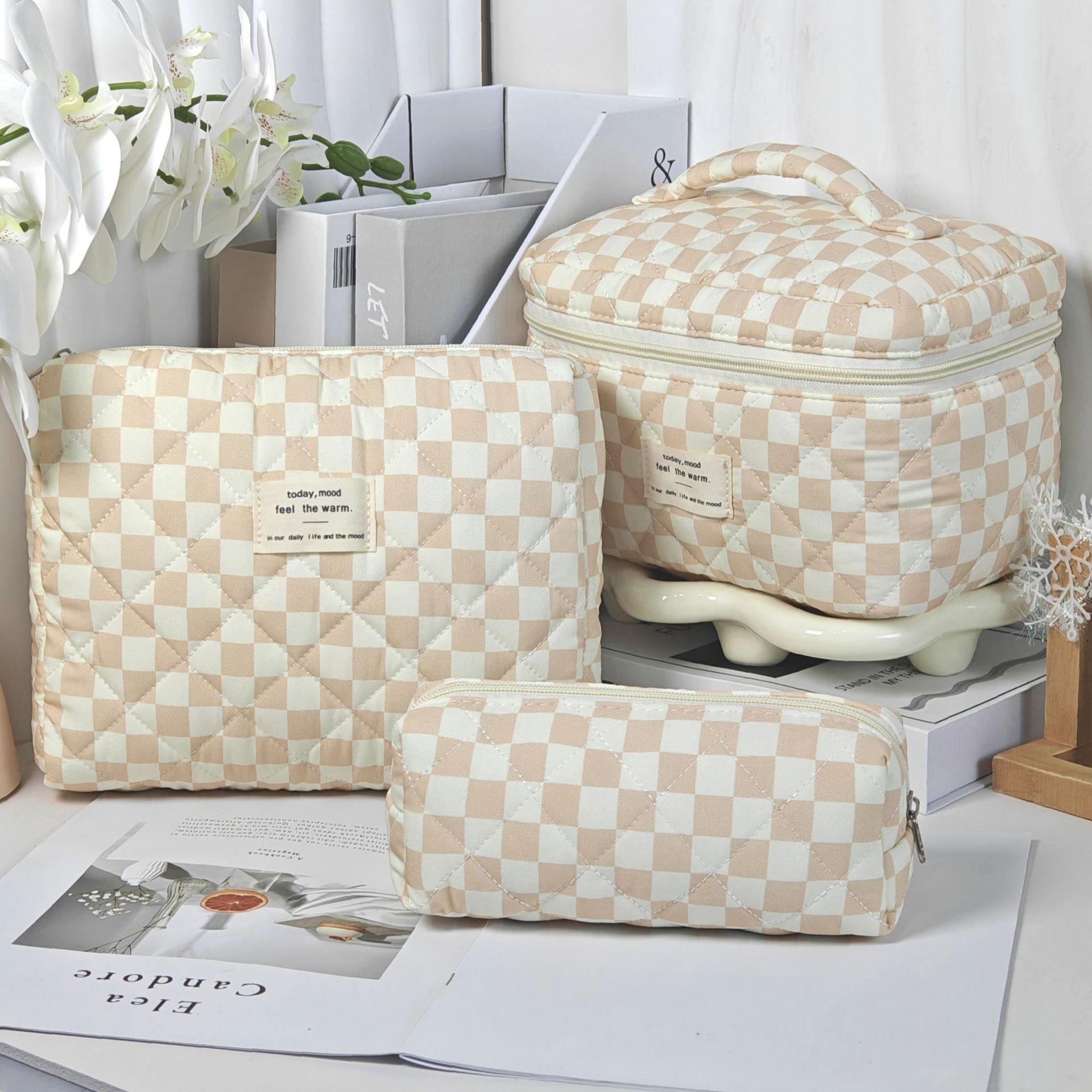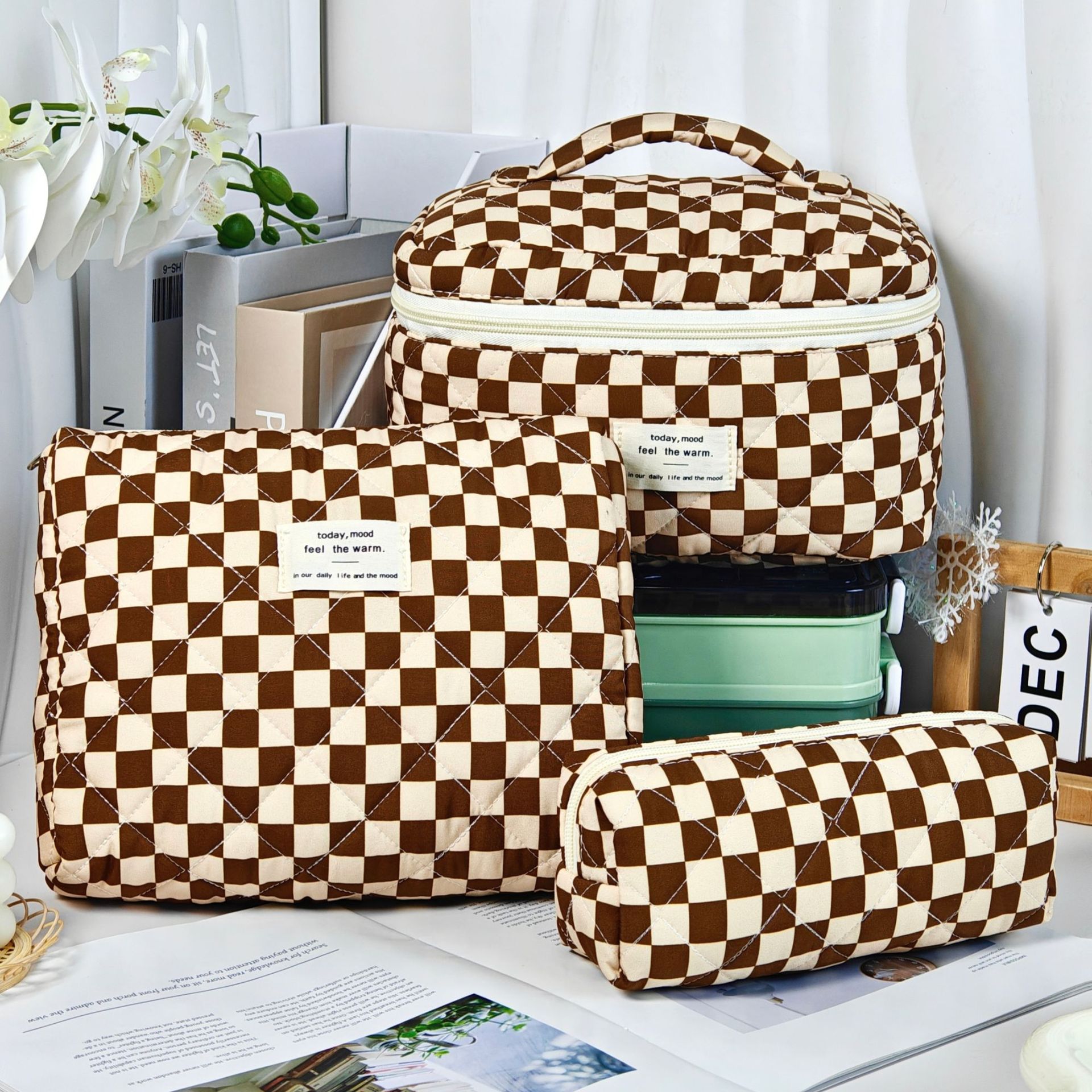 • 갈색 체크무늬