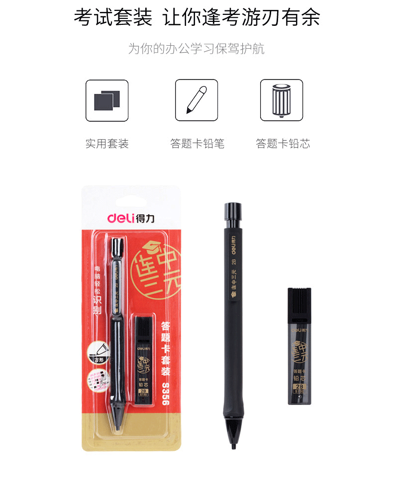 델리 S356 카드펜 세트 2B 자동 연필 시험 세트 학생 대학 입시 답안지 세트