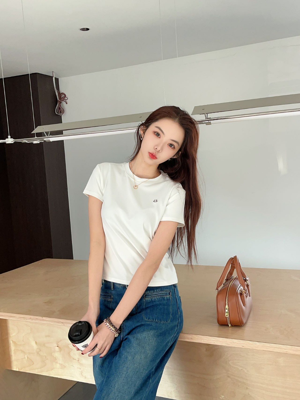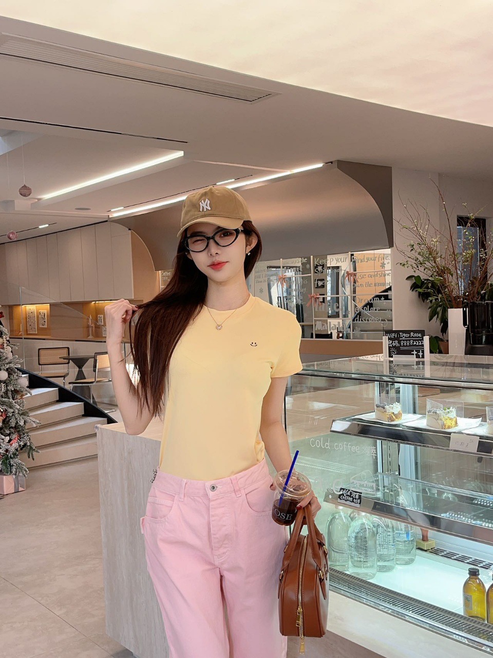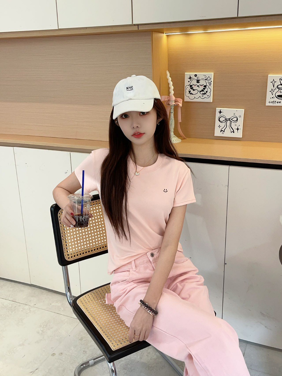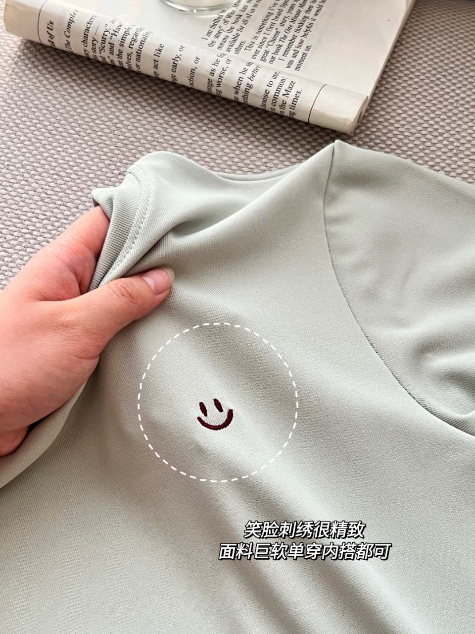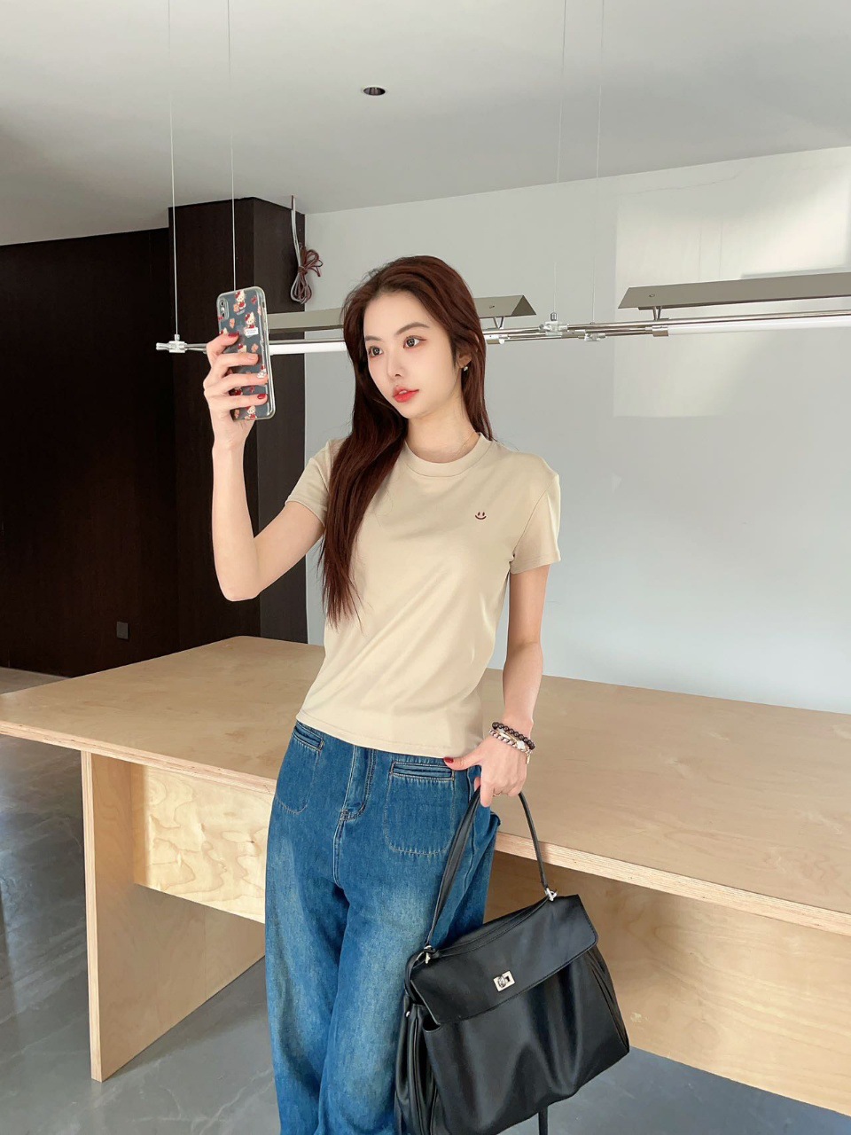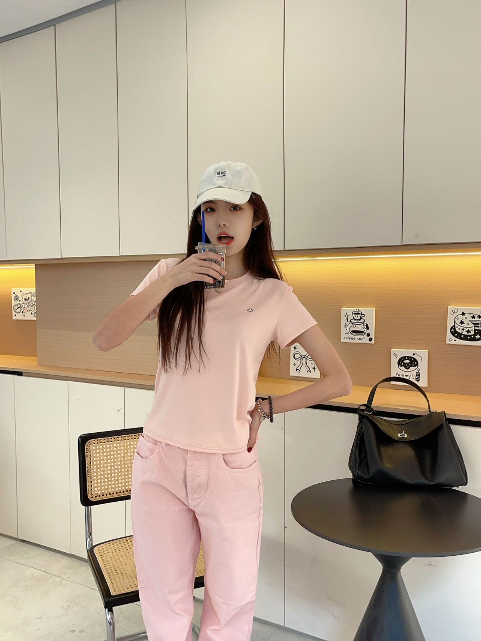 스마일리 크루 넥 사랑스러운 여름 반팔 티셔츠 여자 올 매치 숄더 탑 반소매 스트레치 슬림 핏 도매 티셔츠스토어 가기