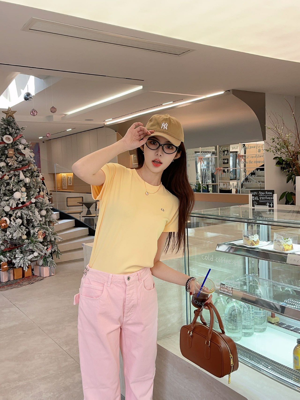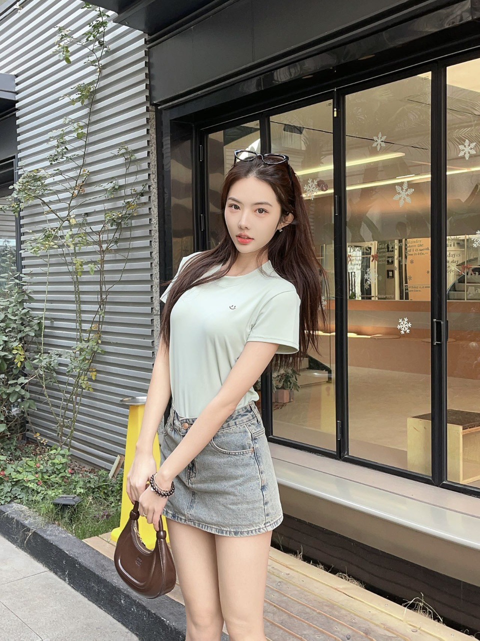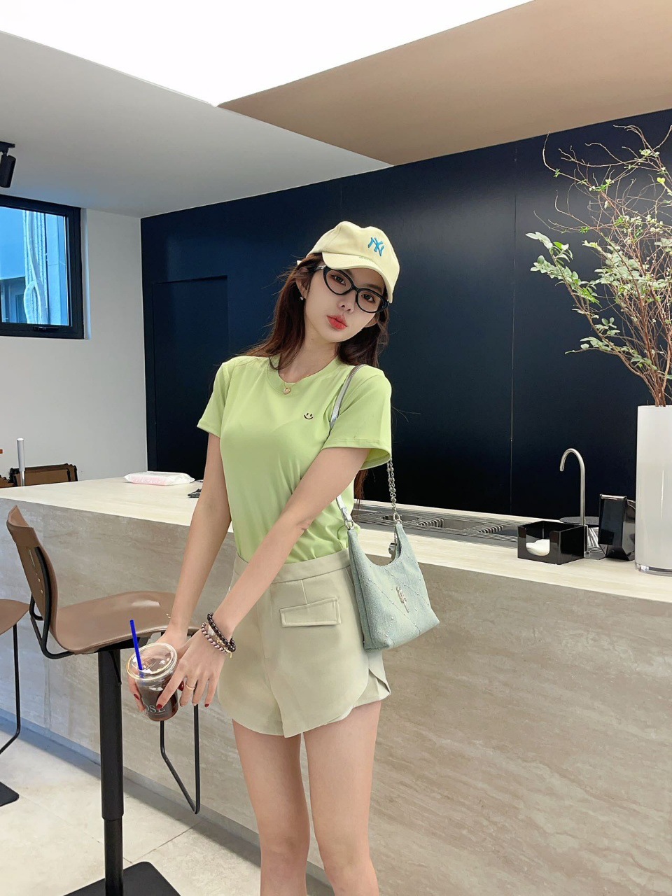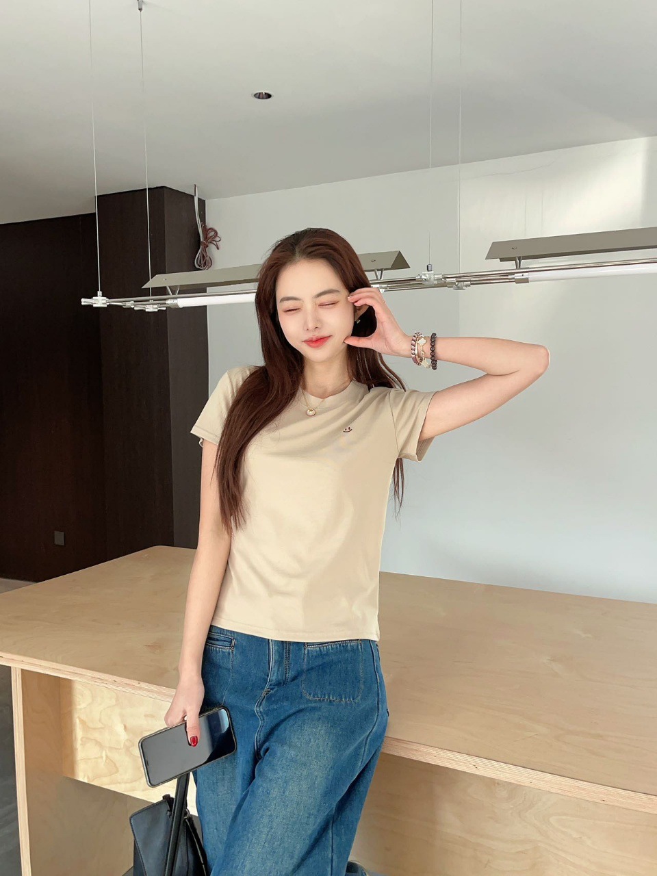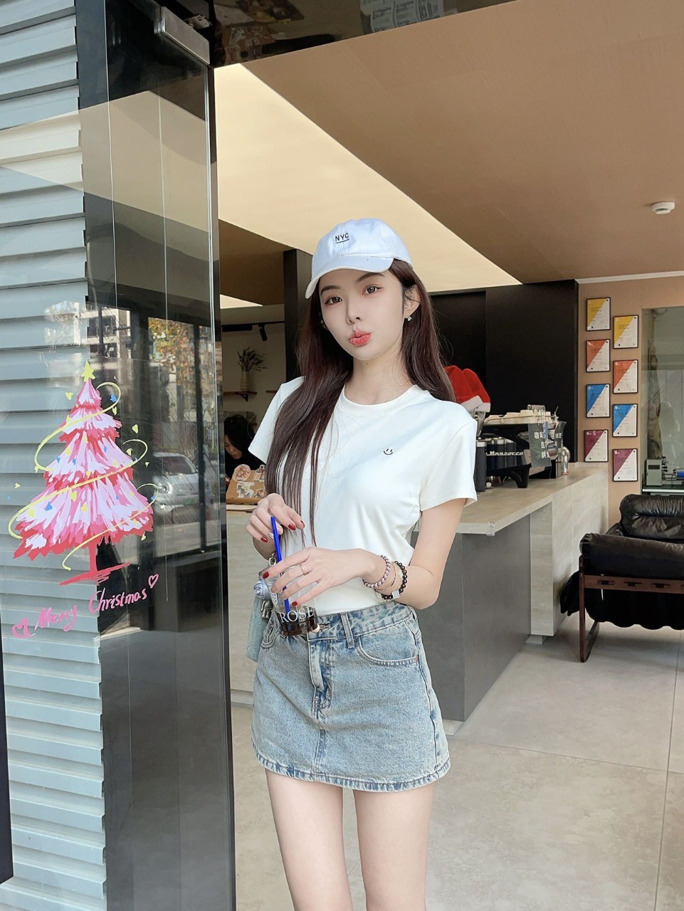 스마일리 크루 넥 사랑스러운 여름 반팔 티셔츠 여자 올 매치 숄더 탑 반소매 스트레치 슬림 핏 도매 티셔츠스토어 가기