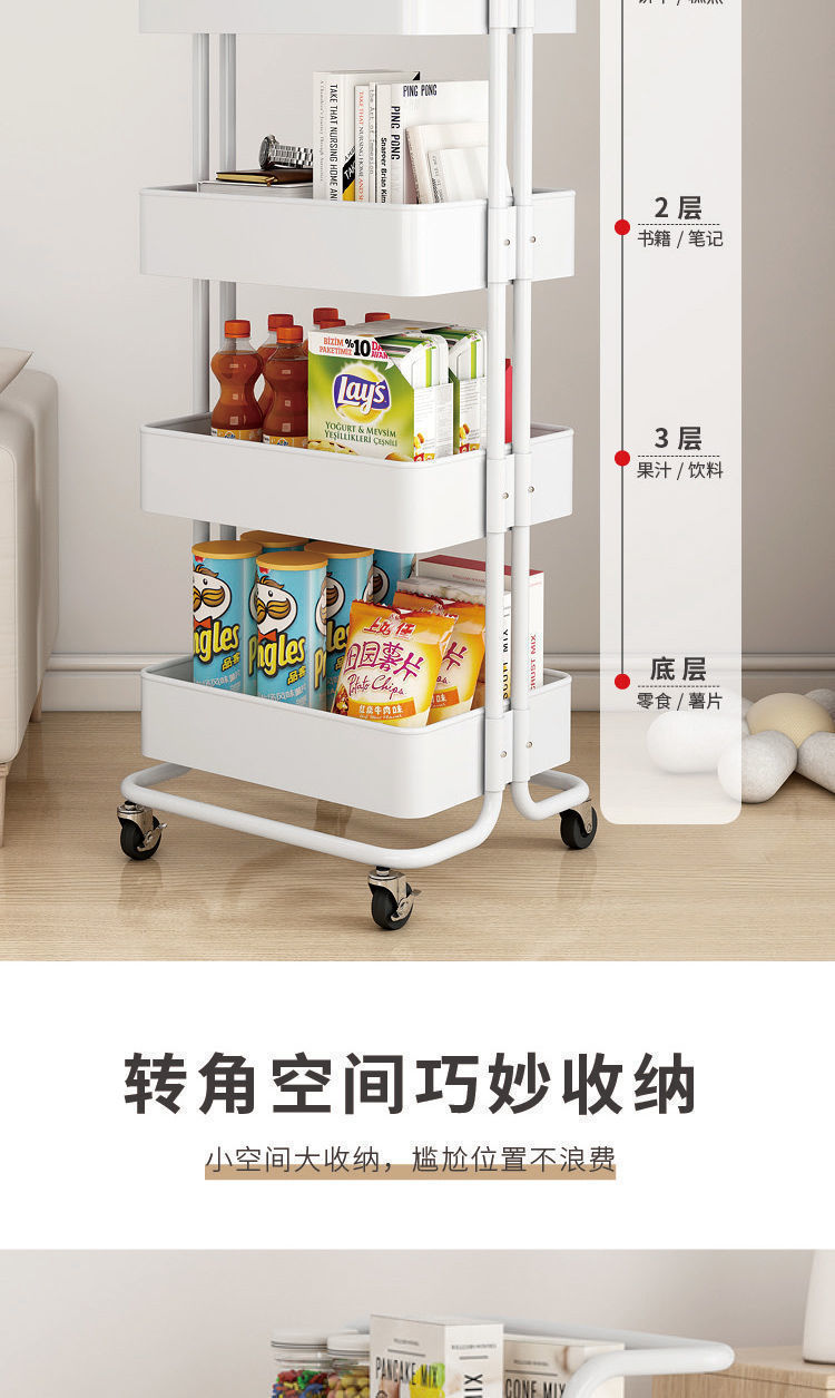 다층 이동식 금속 저장 트롤리 저장 랙 고가치 가정 침실 거실 스낵 보관 랙스토어 가기