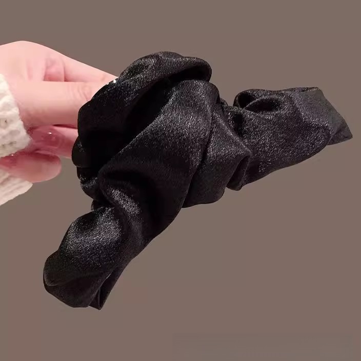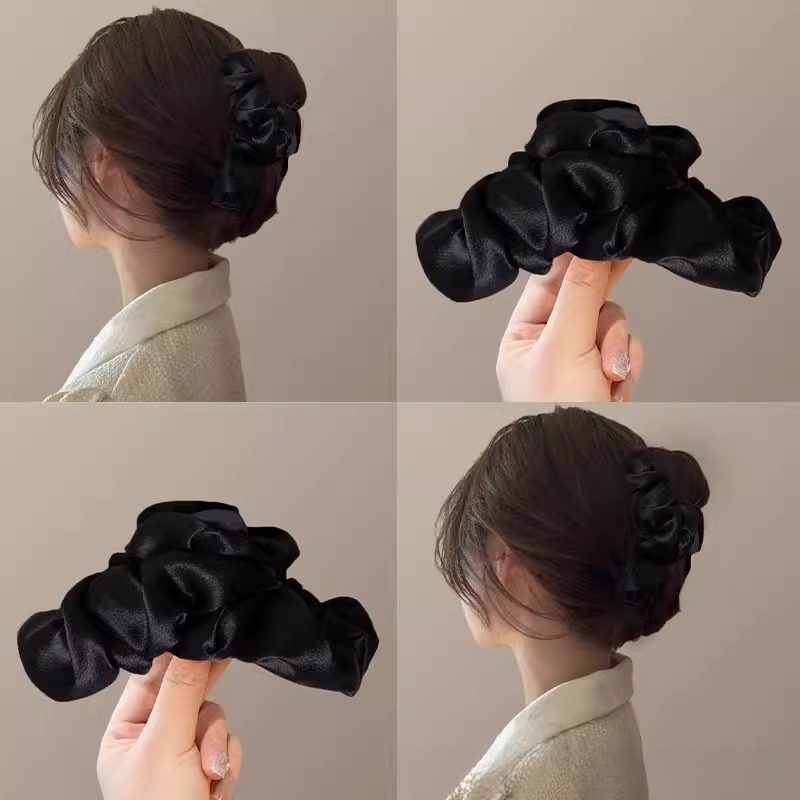 고급스러운 질감의 액세서리, 프렌치 레트로 스타일의 블랙 플리츠 원단 대형 헤어 집게핀, 뒷머리 묶음용 샤크클립