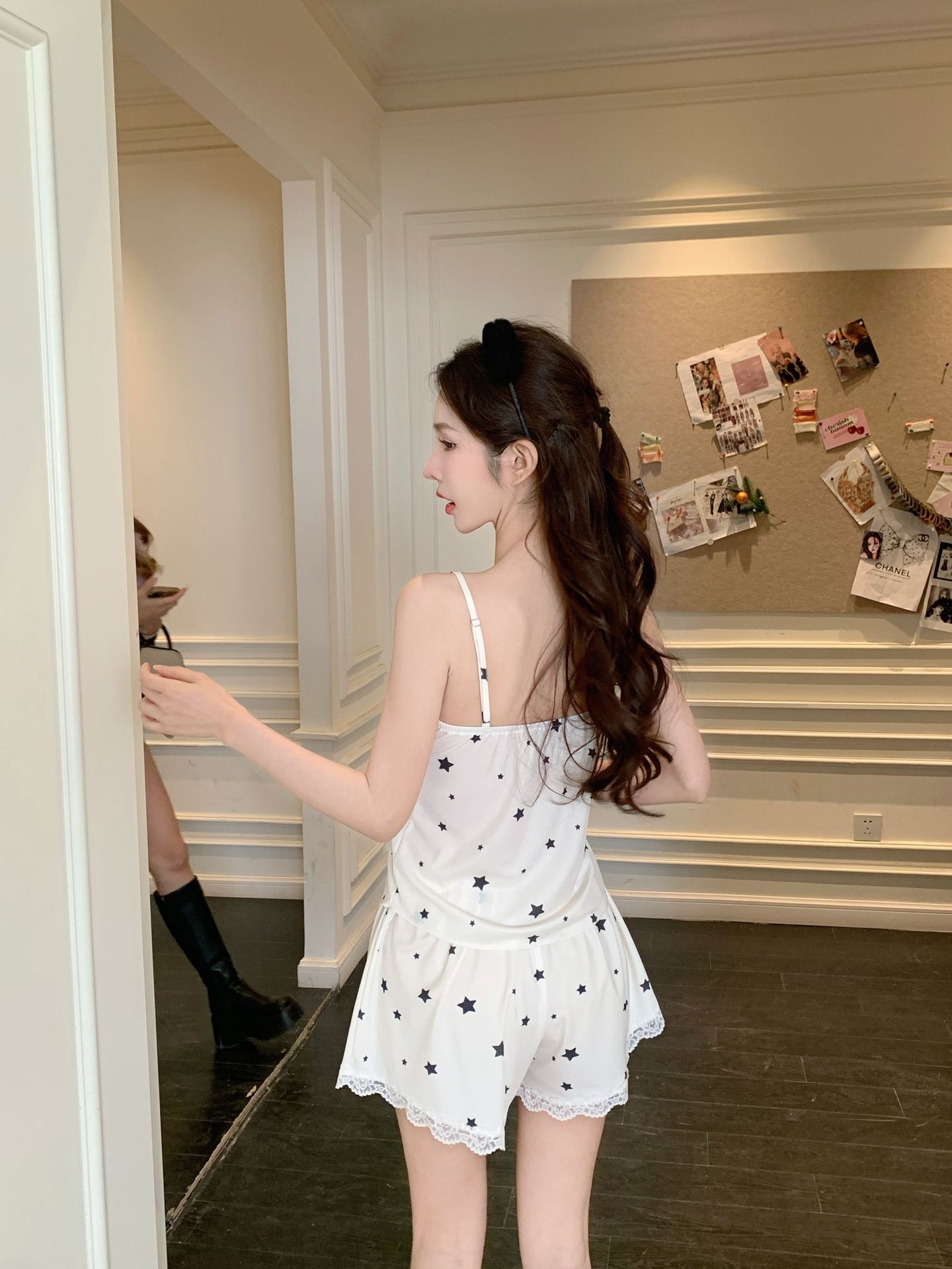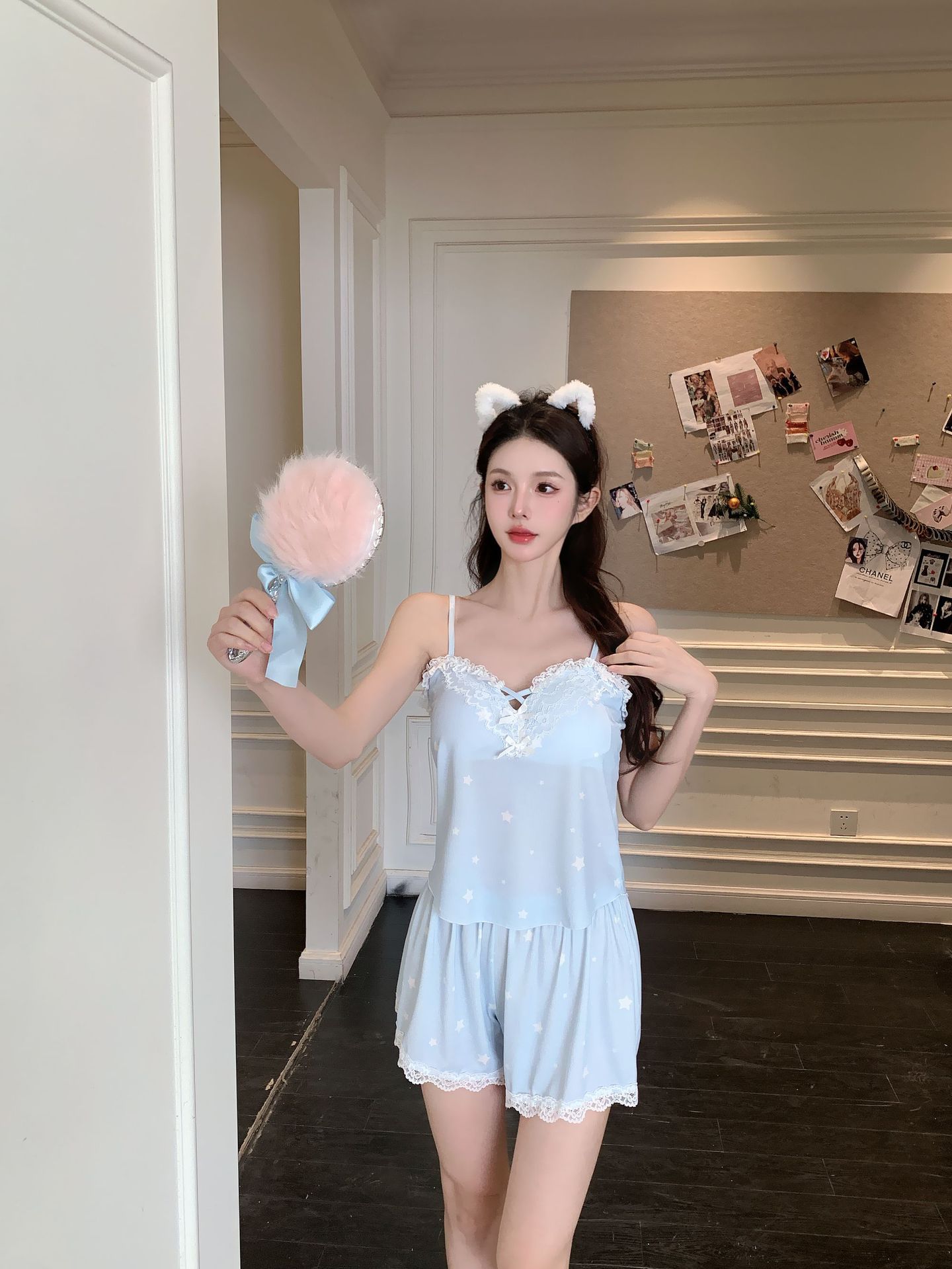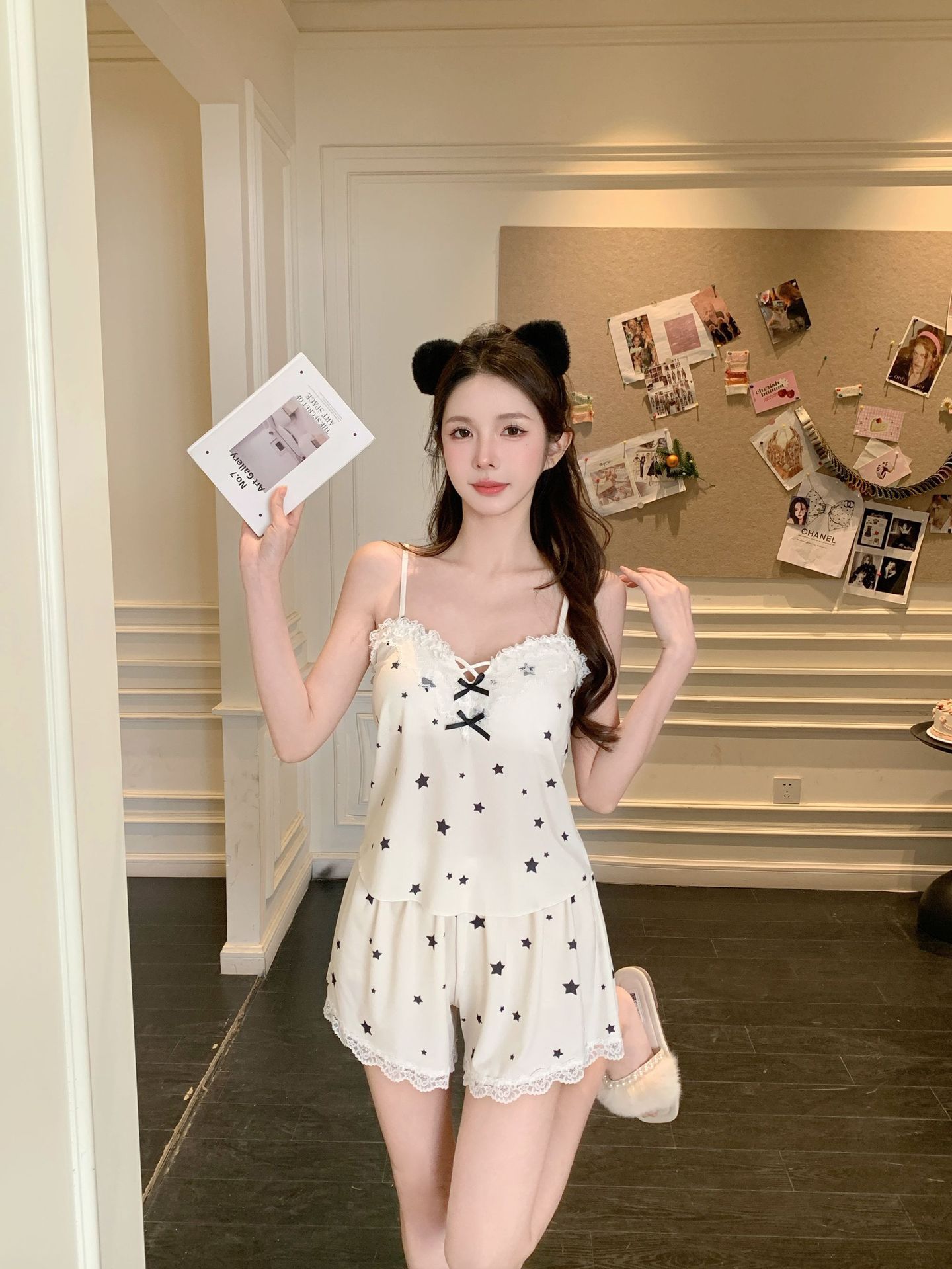 프랑스 잠옷 여성 달콤한 봄과 여름 새로운 섹시한 섹시한 순수 스타일 아이스 실크 홈 옷 세트 슬링 반바지스토어 가기
