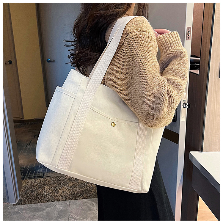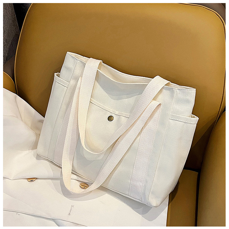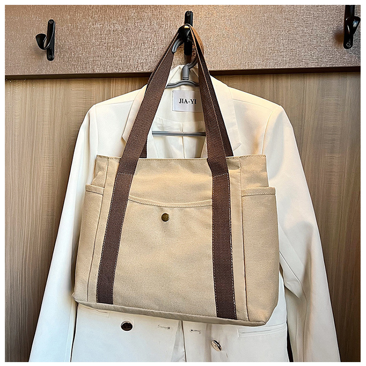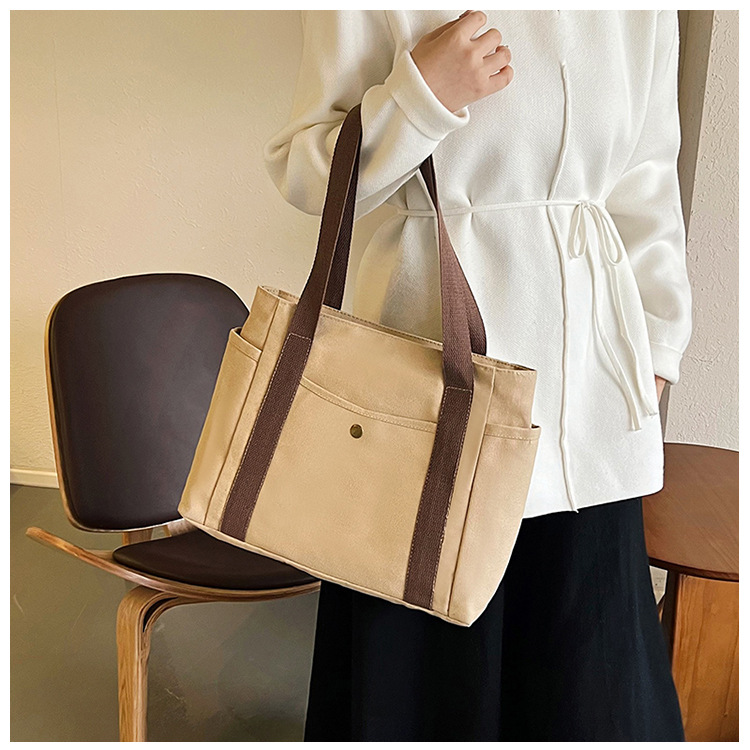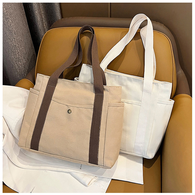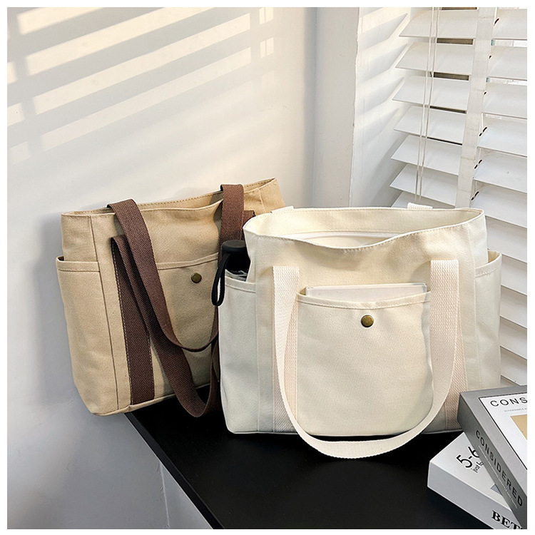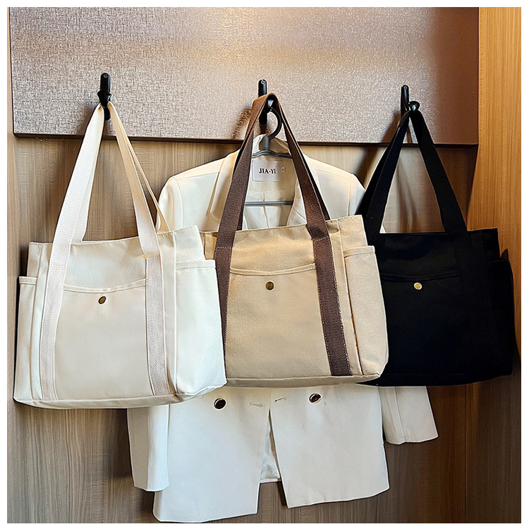 어깨 가방 중학생을위한 여성용 대용량 토트 백 간단한 캔버스 가방 통근 핸드백 멀티 포켓 캔버스 가방스토어 가기