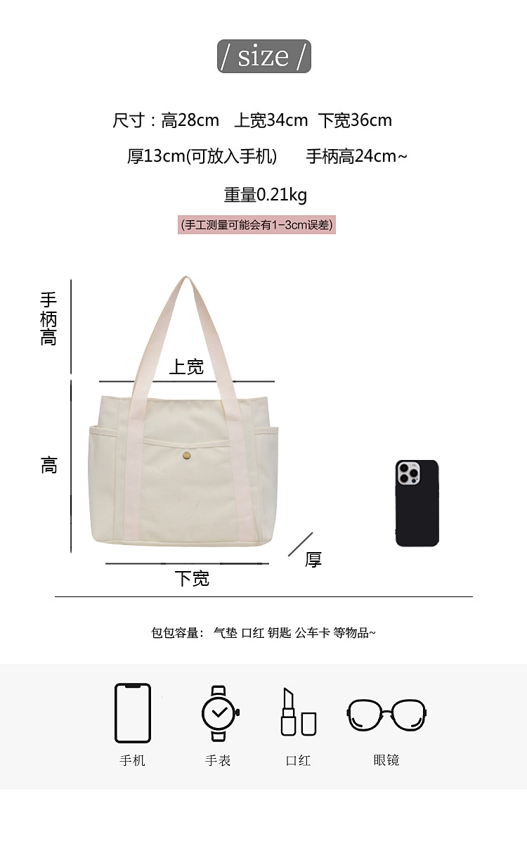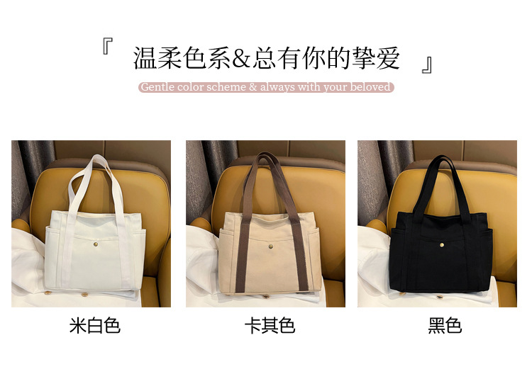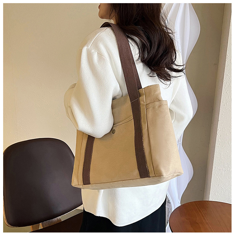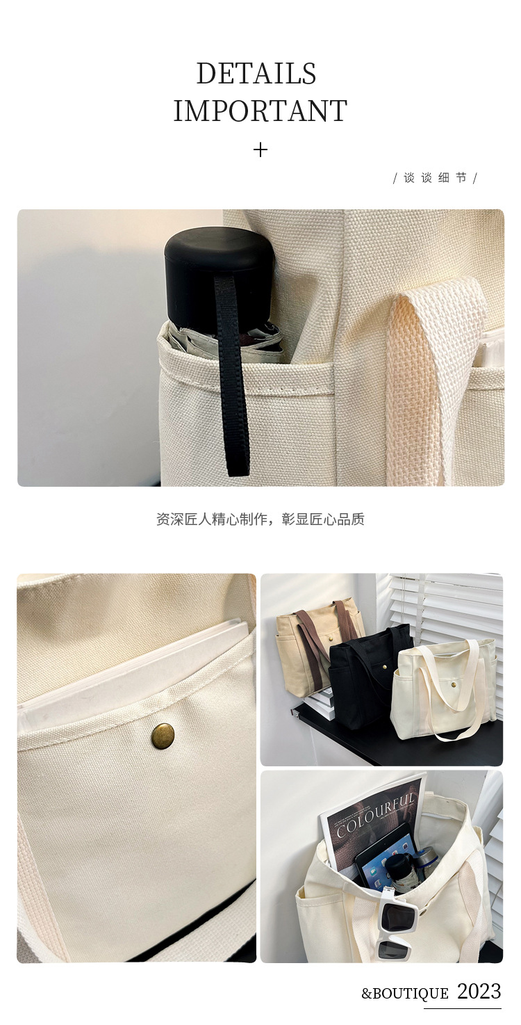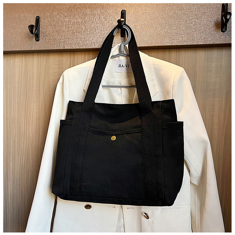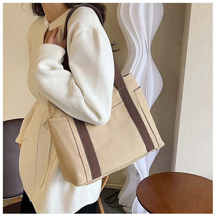 어깨 가방 중학생을위한 여성용 대용량 토트 백 간단한 캔버스 가방 통근 핸드백 멀티 포켓 캔버스 가방스토어 가기