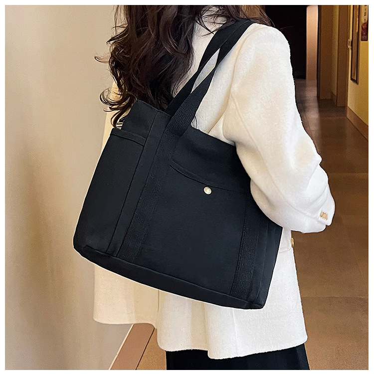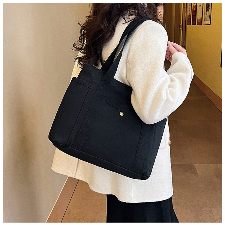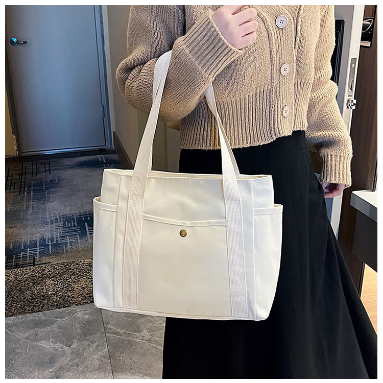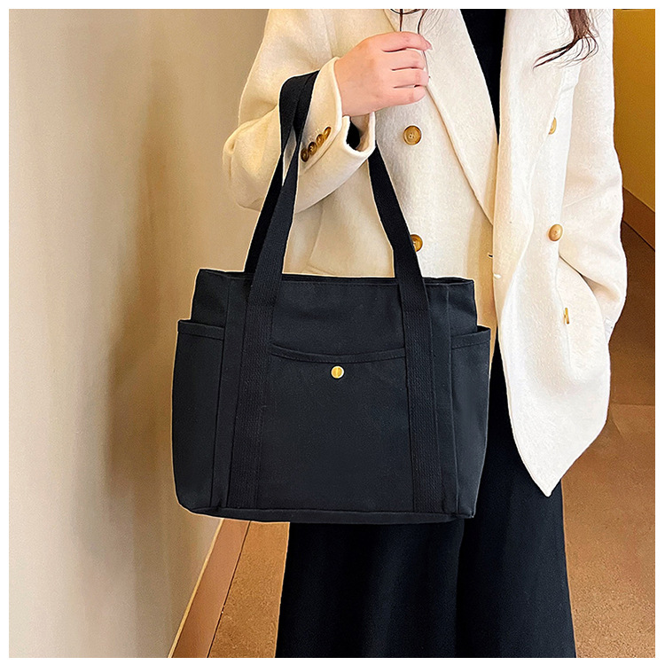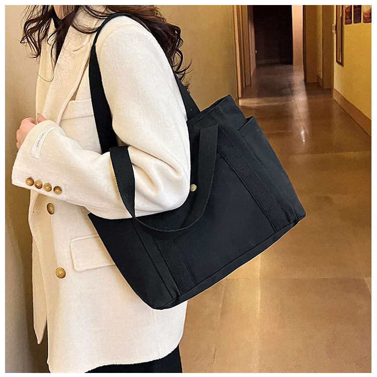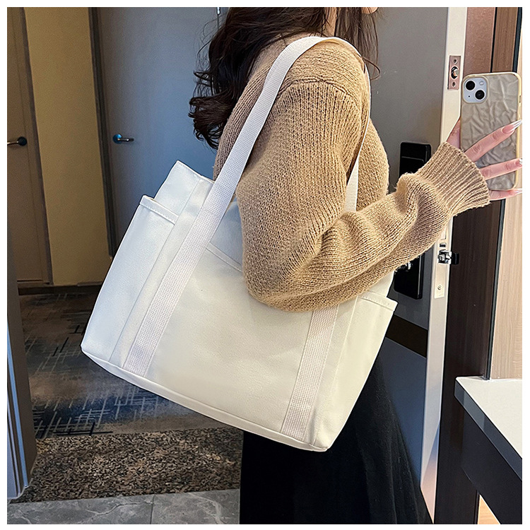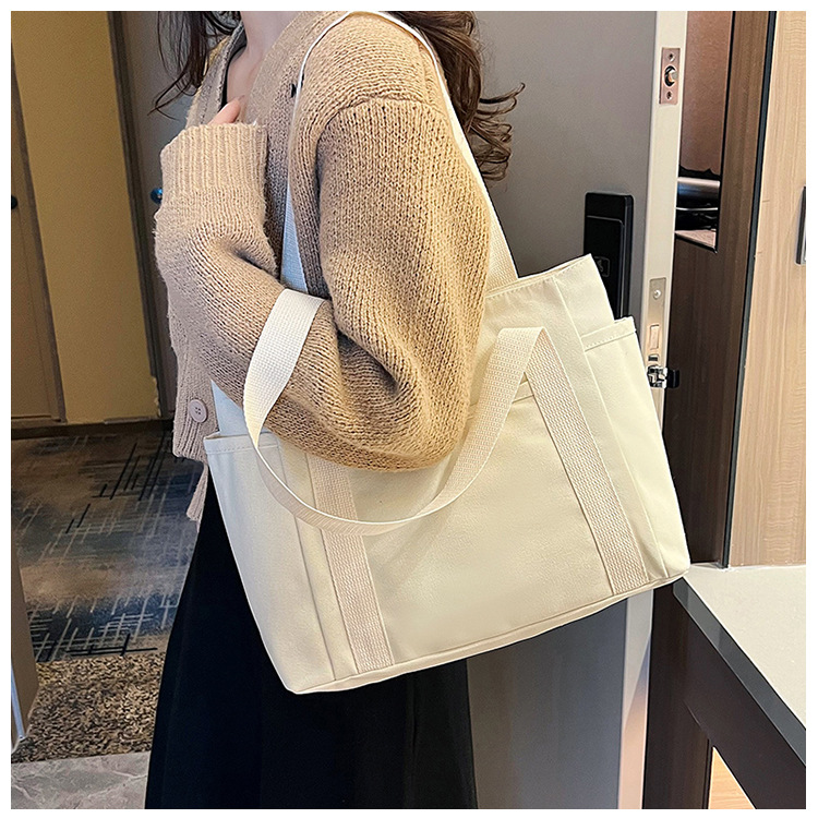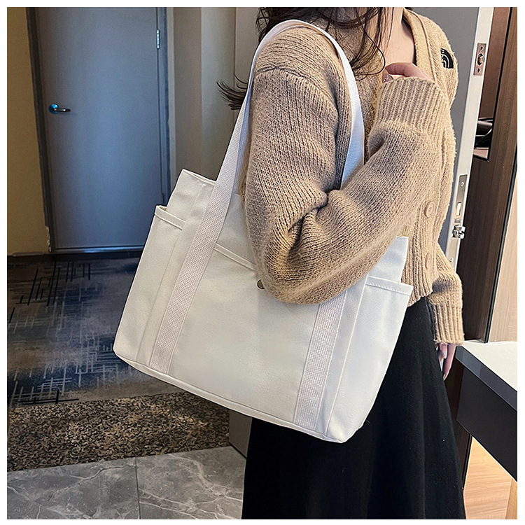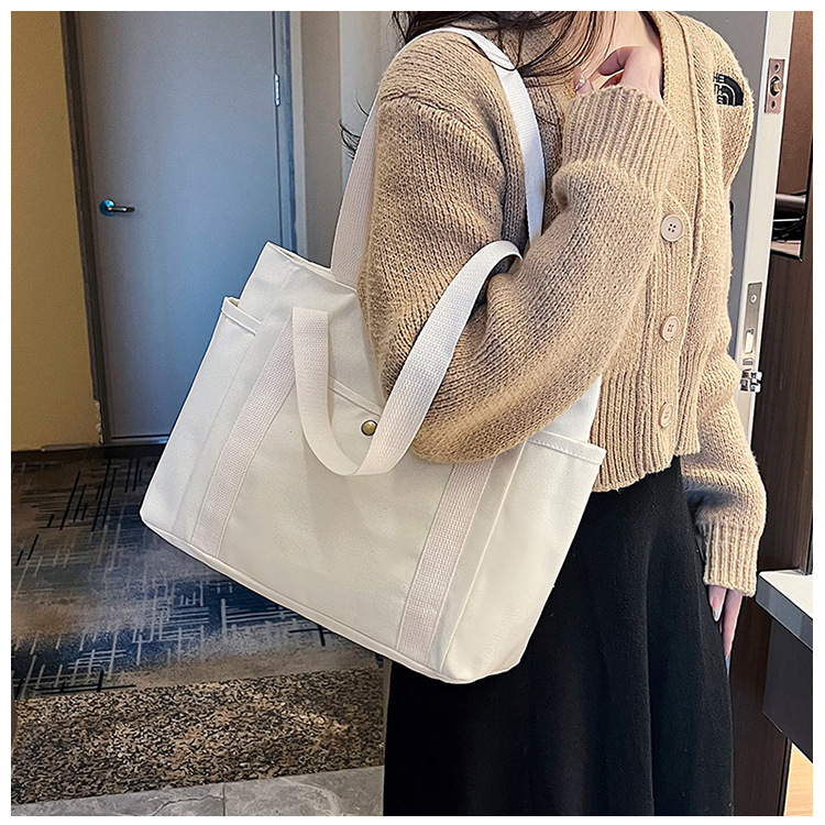 어깨 가방 중학생을위한 여성용 대용량 토트 백 간단한 캔버스 가방 통근 핸드백 멀티 포켓 캔버스 가방