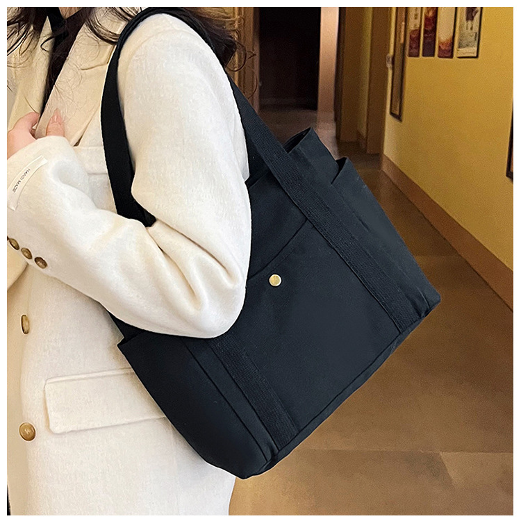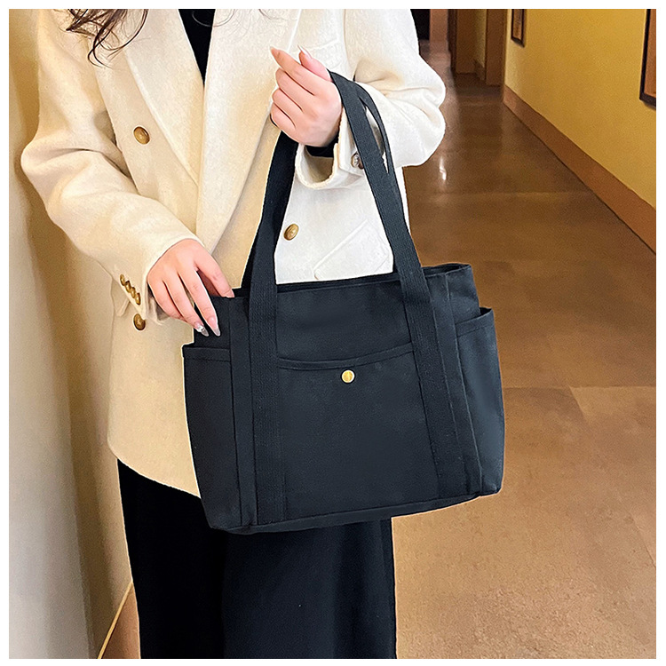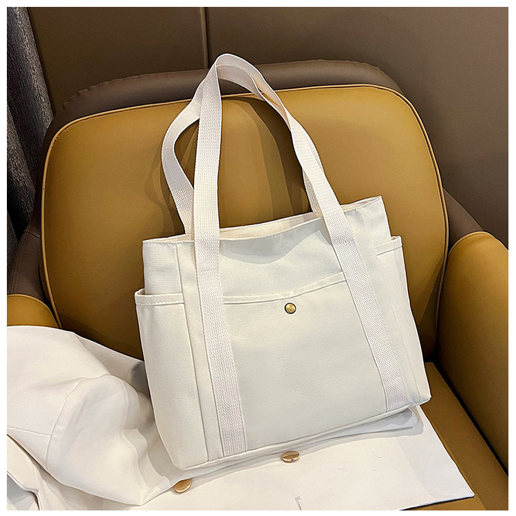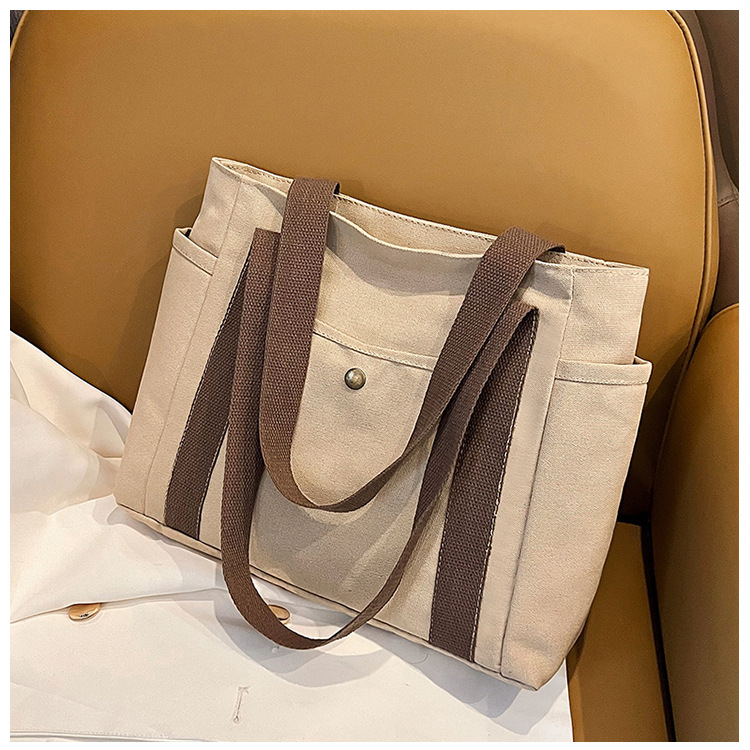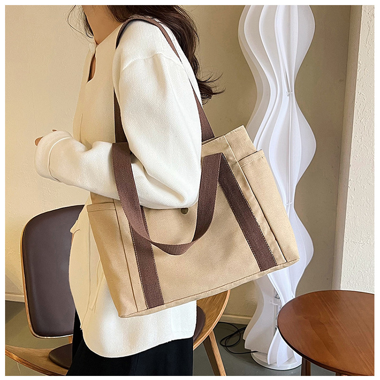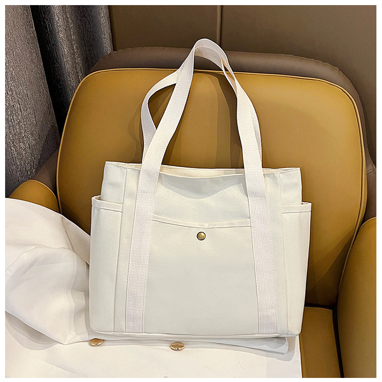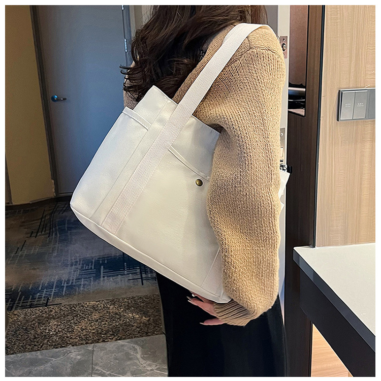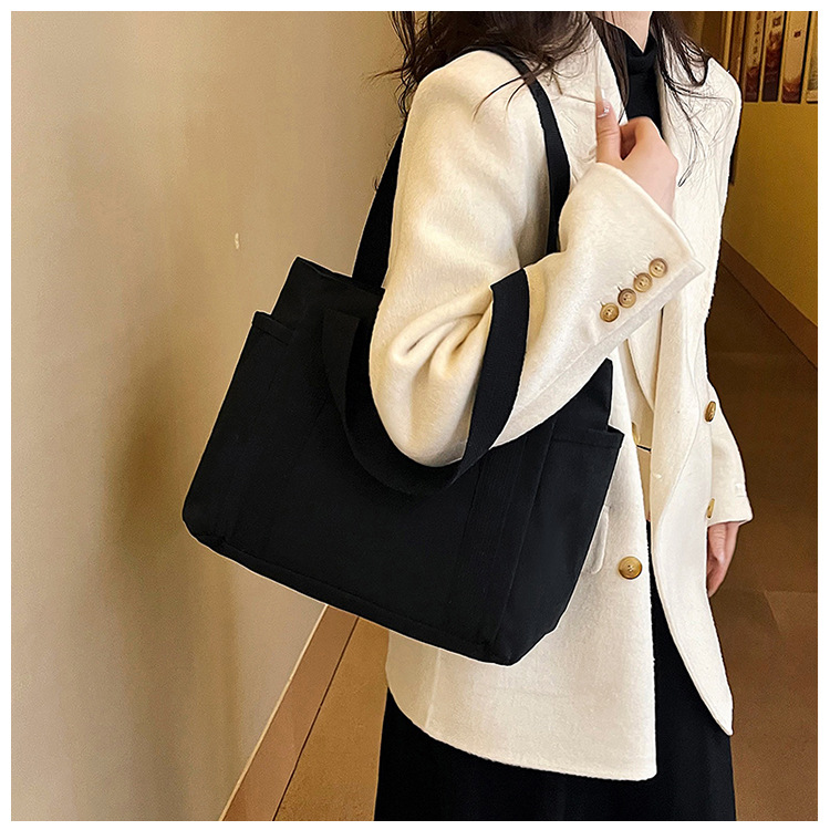 어깨 가방 중학생을위한 여성용 대용량 토트 백 간단한 캔버스 가방 통근 핸드백 멀티 포켓 캔버스 가방