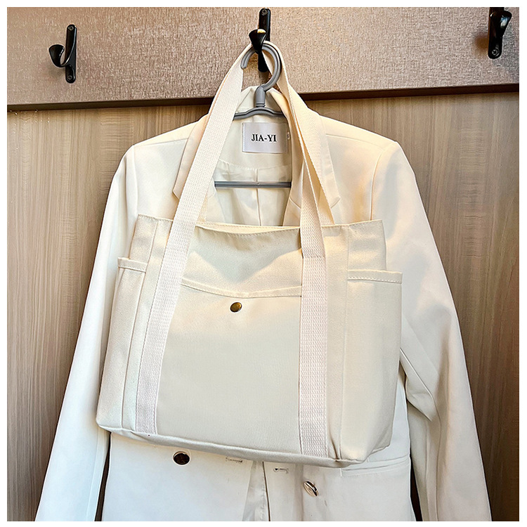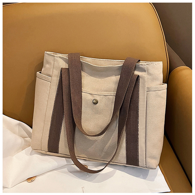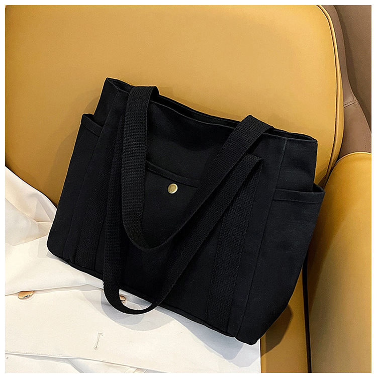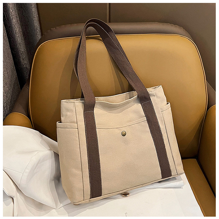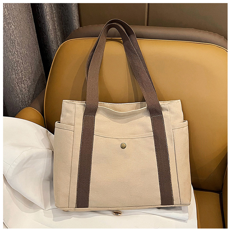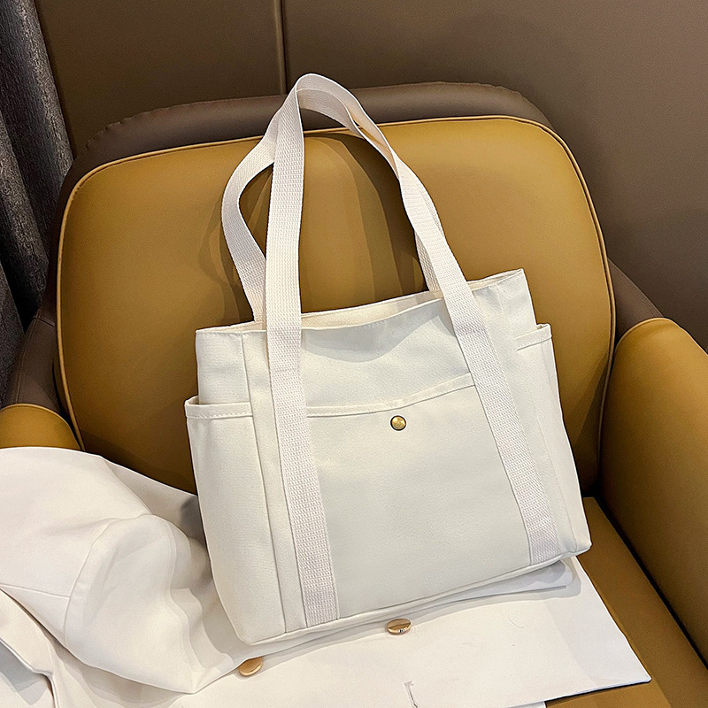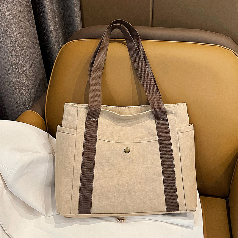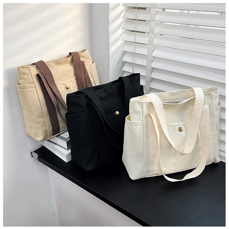 어깨 가방 중학생을위한 여성용 대용량 토트 백 간단한 캔버스 가방 통근 핸드백 멀티 포켓 캔버스 가방