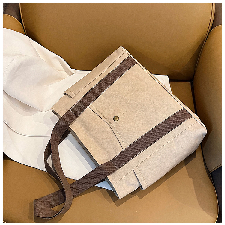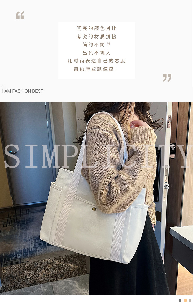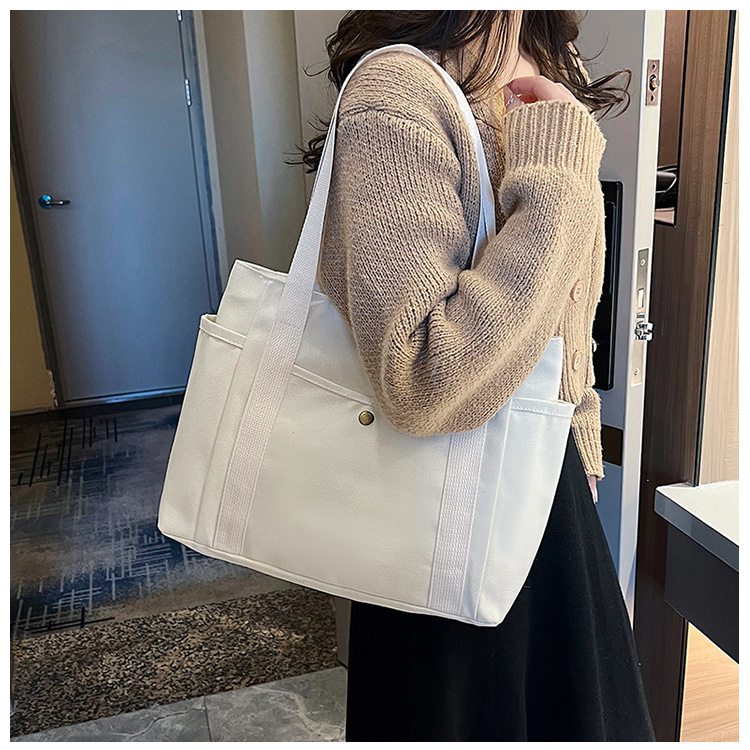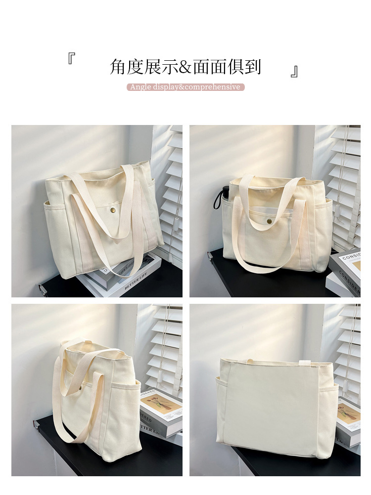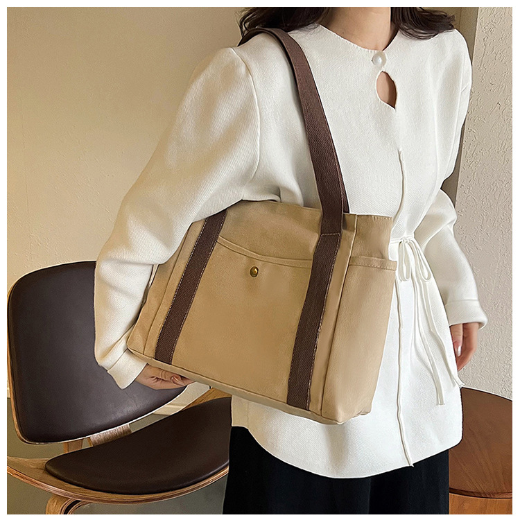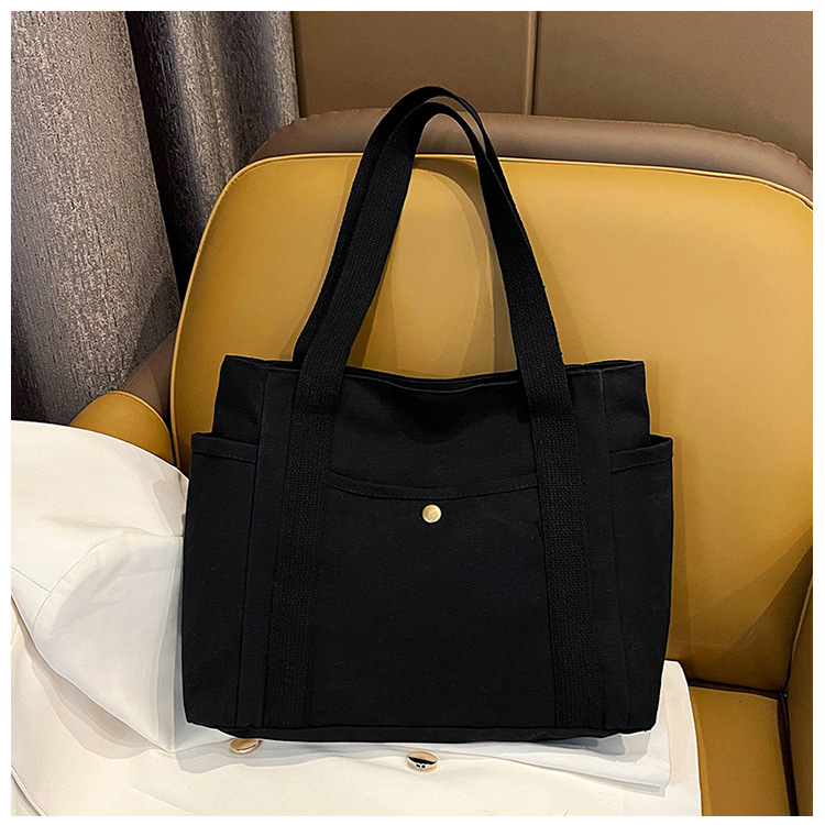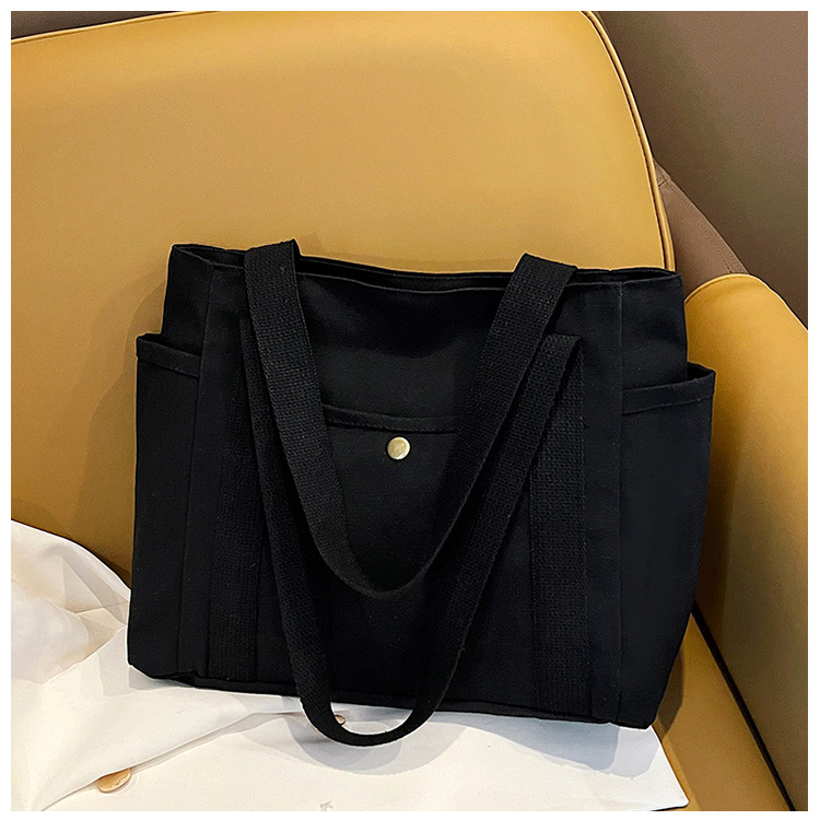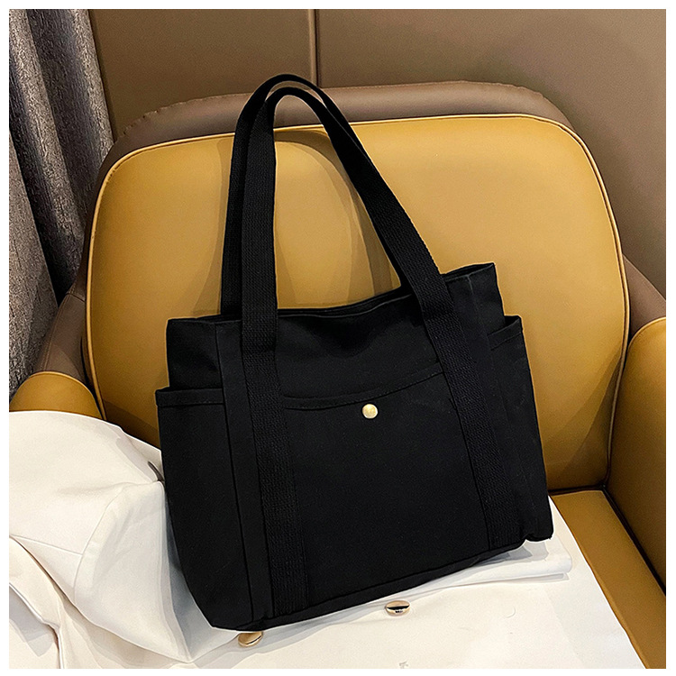 어깨 가방 중학생을위한 여성용 대용량 토트 백 간단한 캔버스 가방 통근 핸드백 멀티 포켓 캔버스 가방