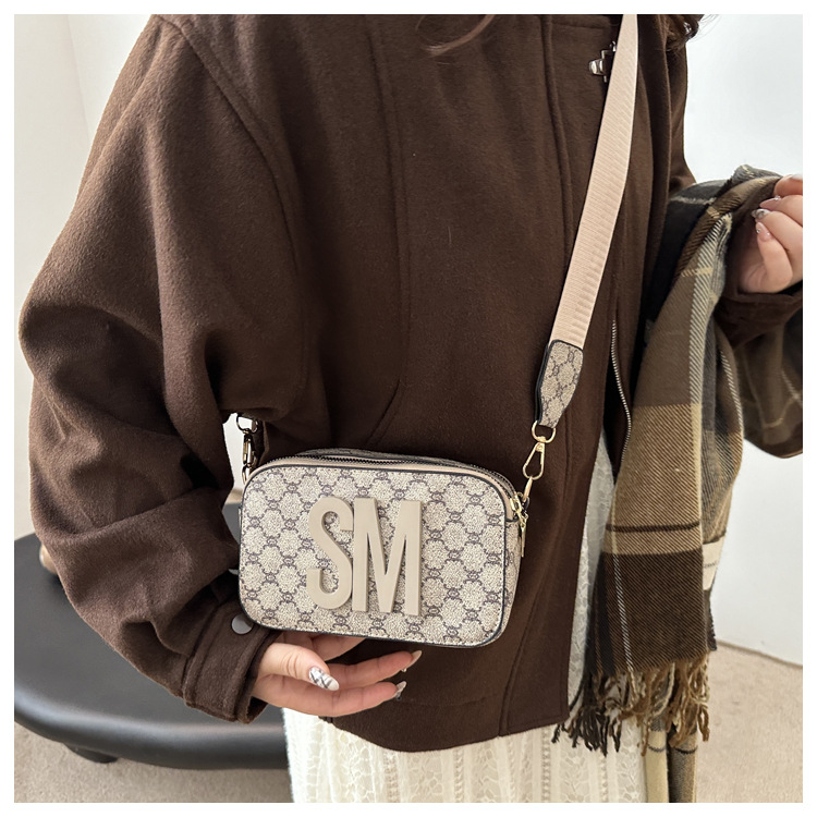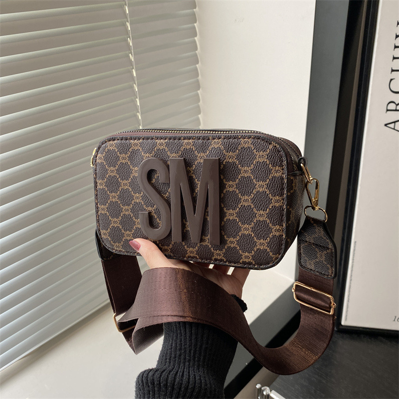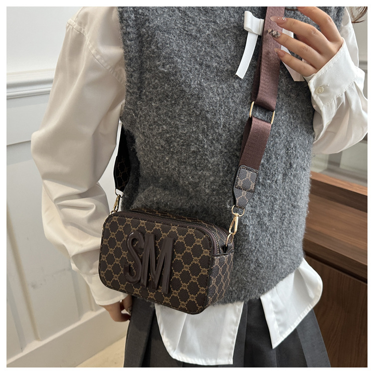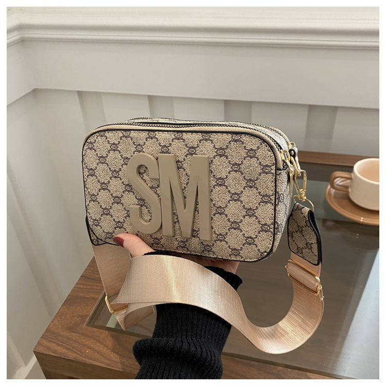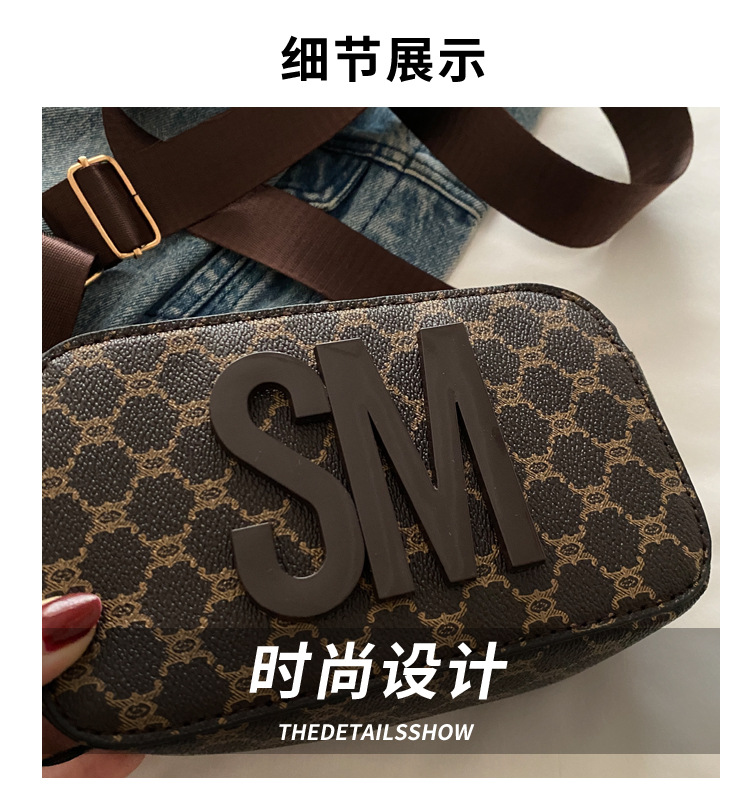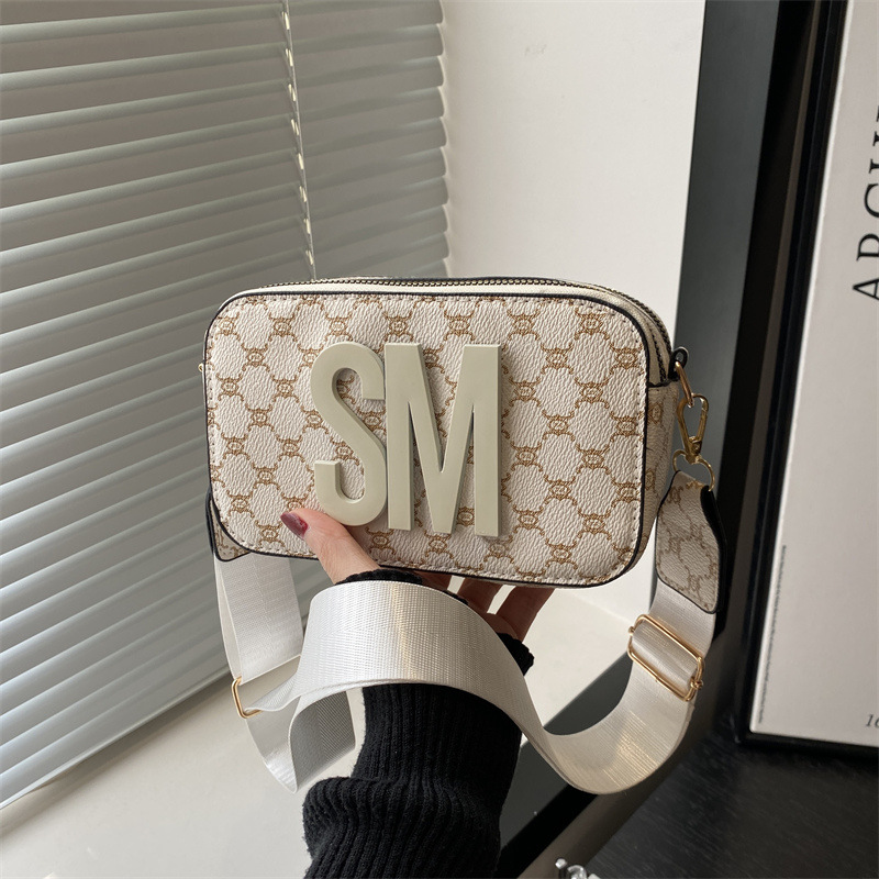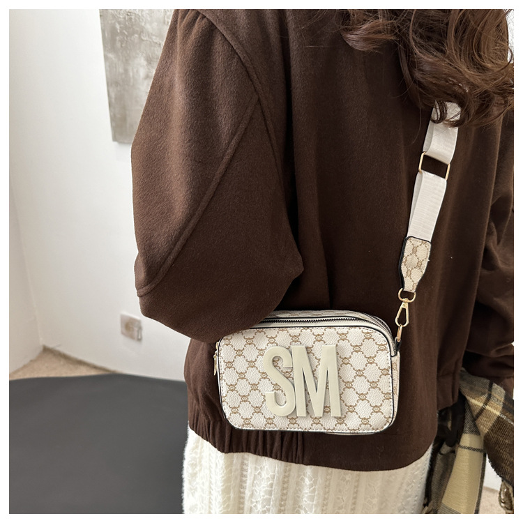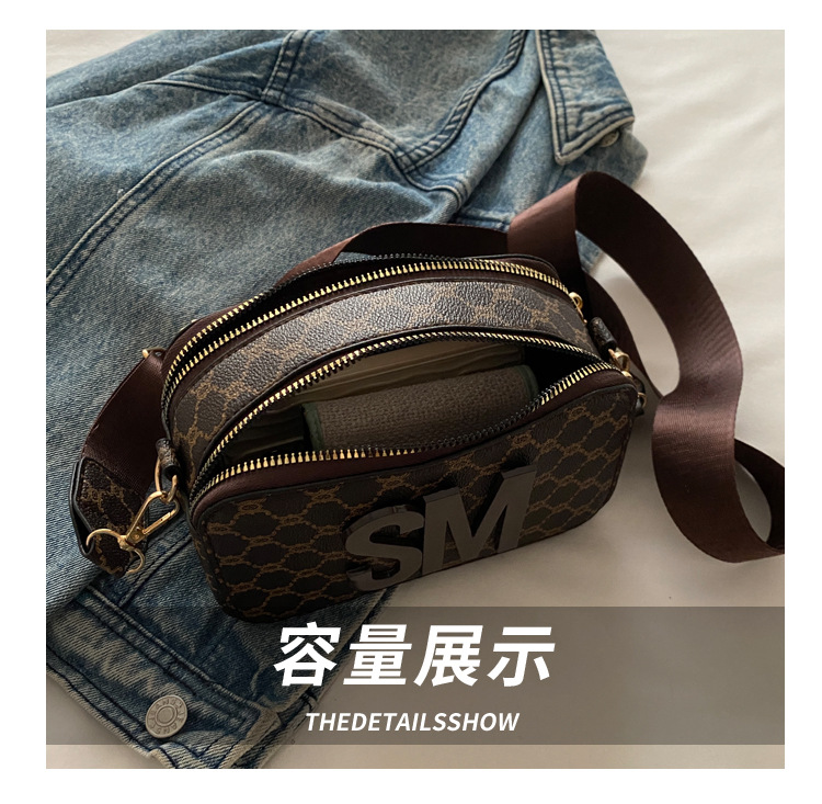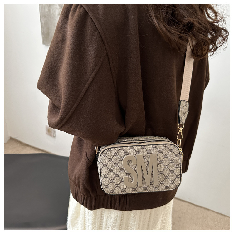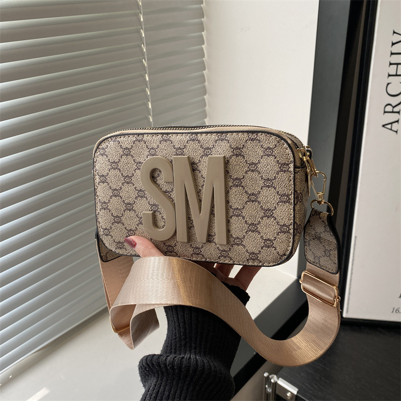문자 복고풍 인쇄 카메라 가방 여성 국경 패션 어깨 가방 2025 새로운 넓은 어깨 끈 크로스 바디 박스 백스토어 가기