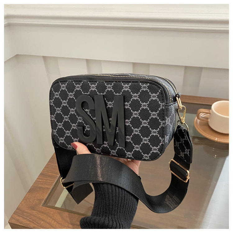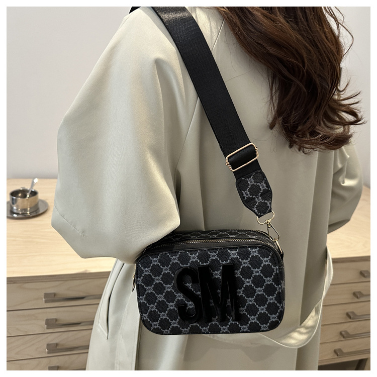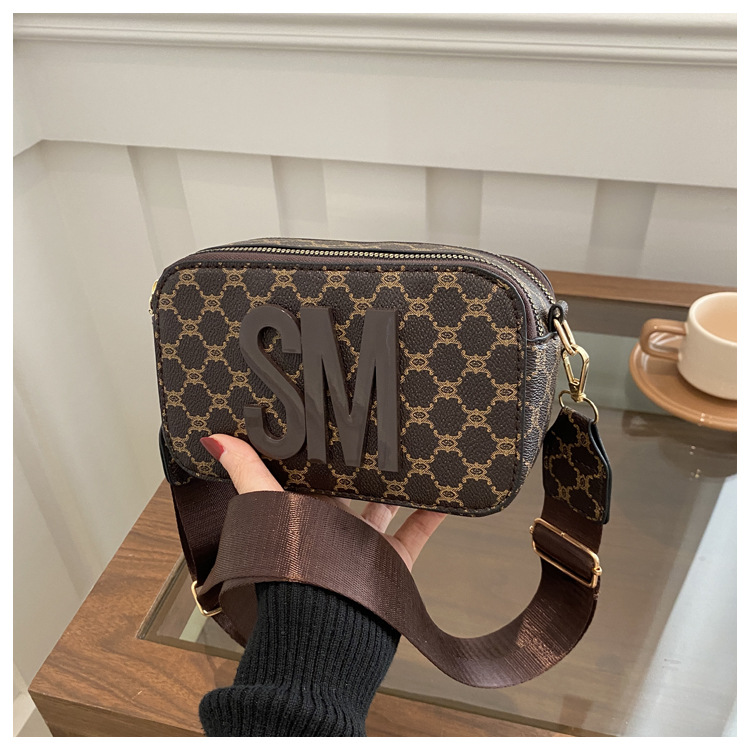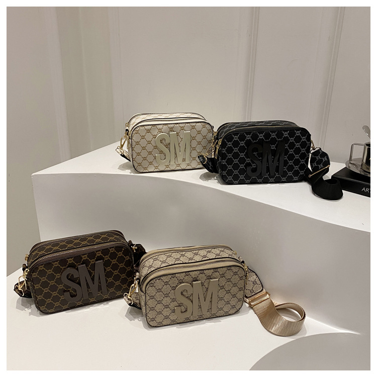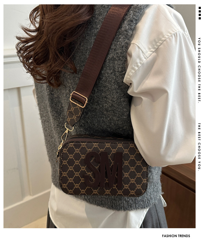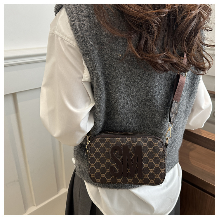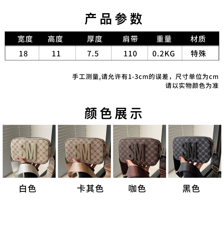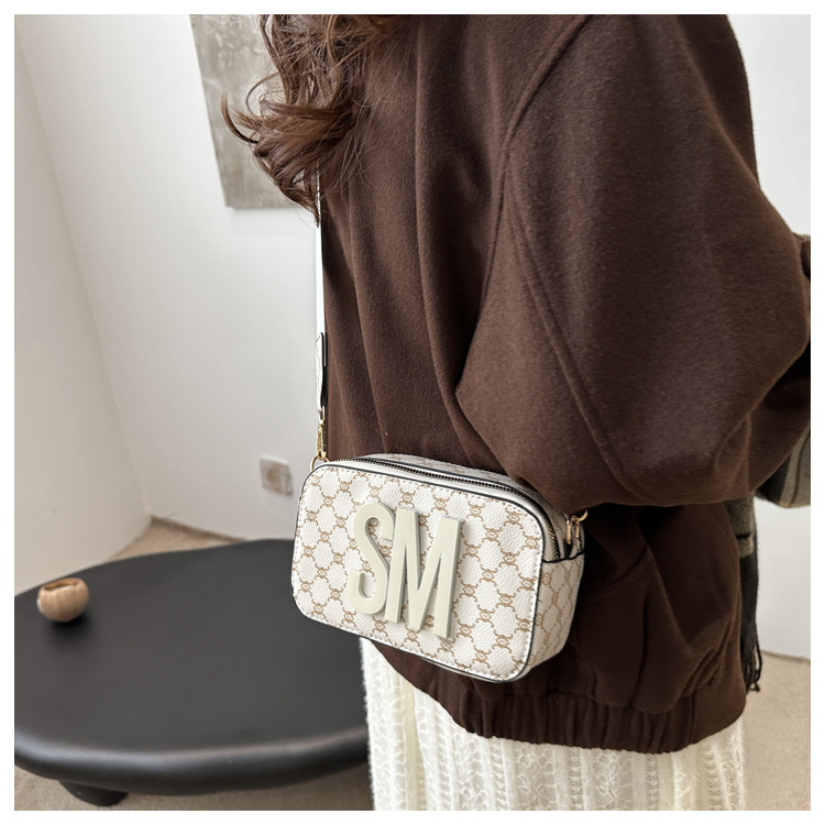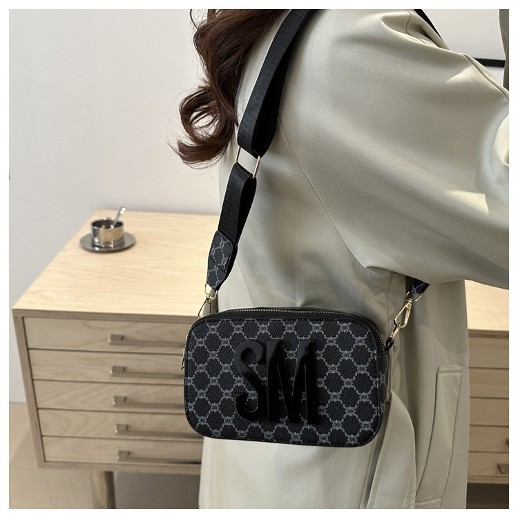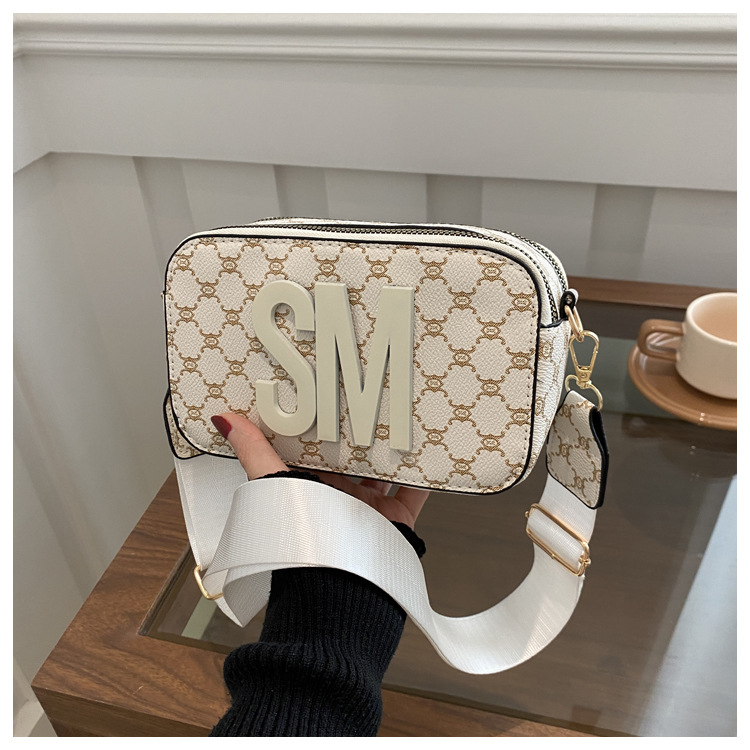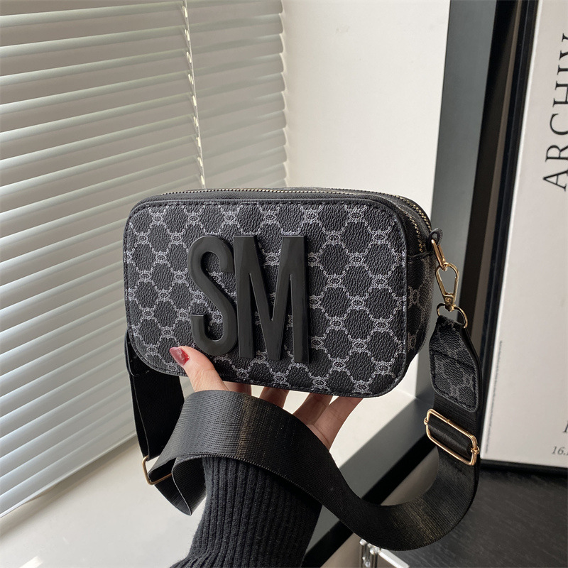 문자 복고풍 인쇄 카메라 가방 여성 국경 패션 어깨 가방 2025 새로운 넓은 어깨 끈 크로스 바디 박스 백스토어 가기