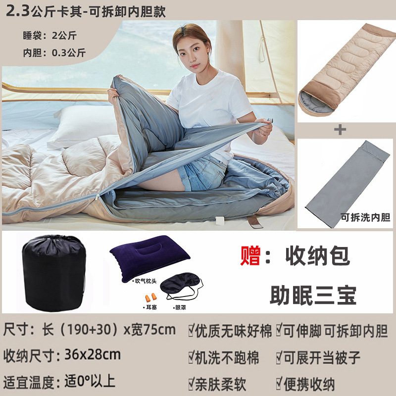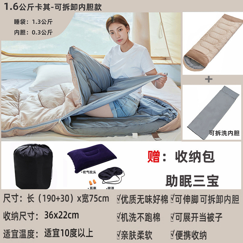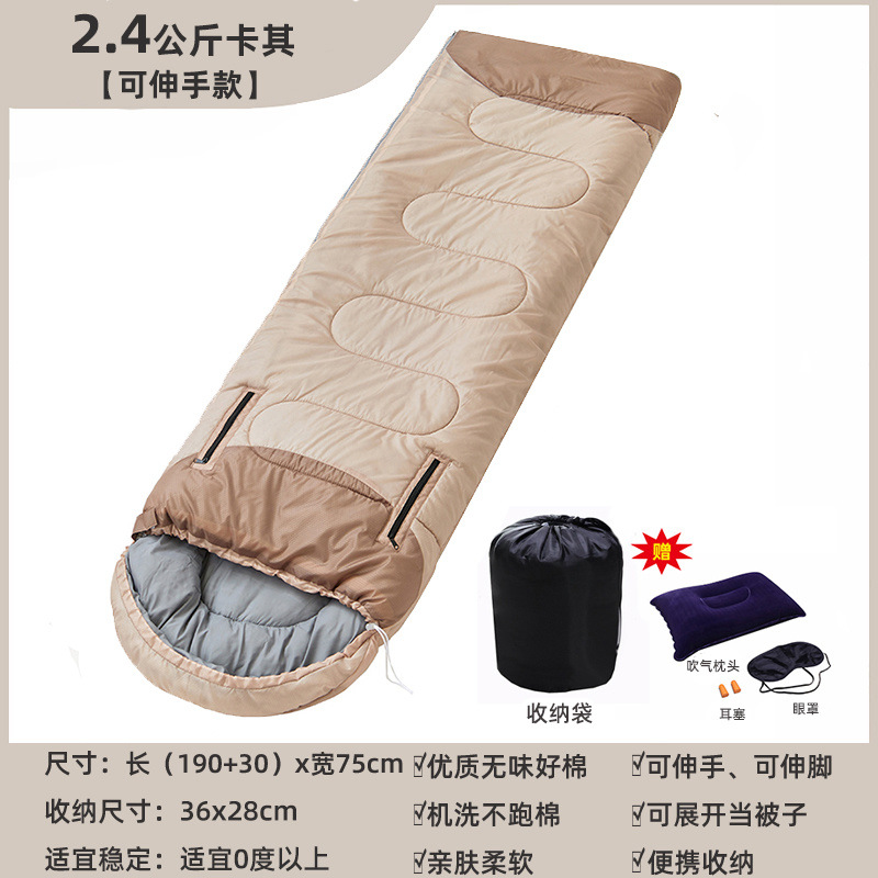 야외 감기 방지 슬리핑 백 성인 겨울 캠핑 두꺼운 따뜻한 성인 실내 사무실 여행 스플라이스 슬리핑 백스토어 가기