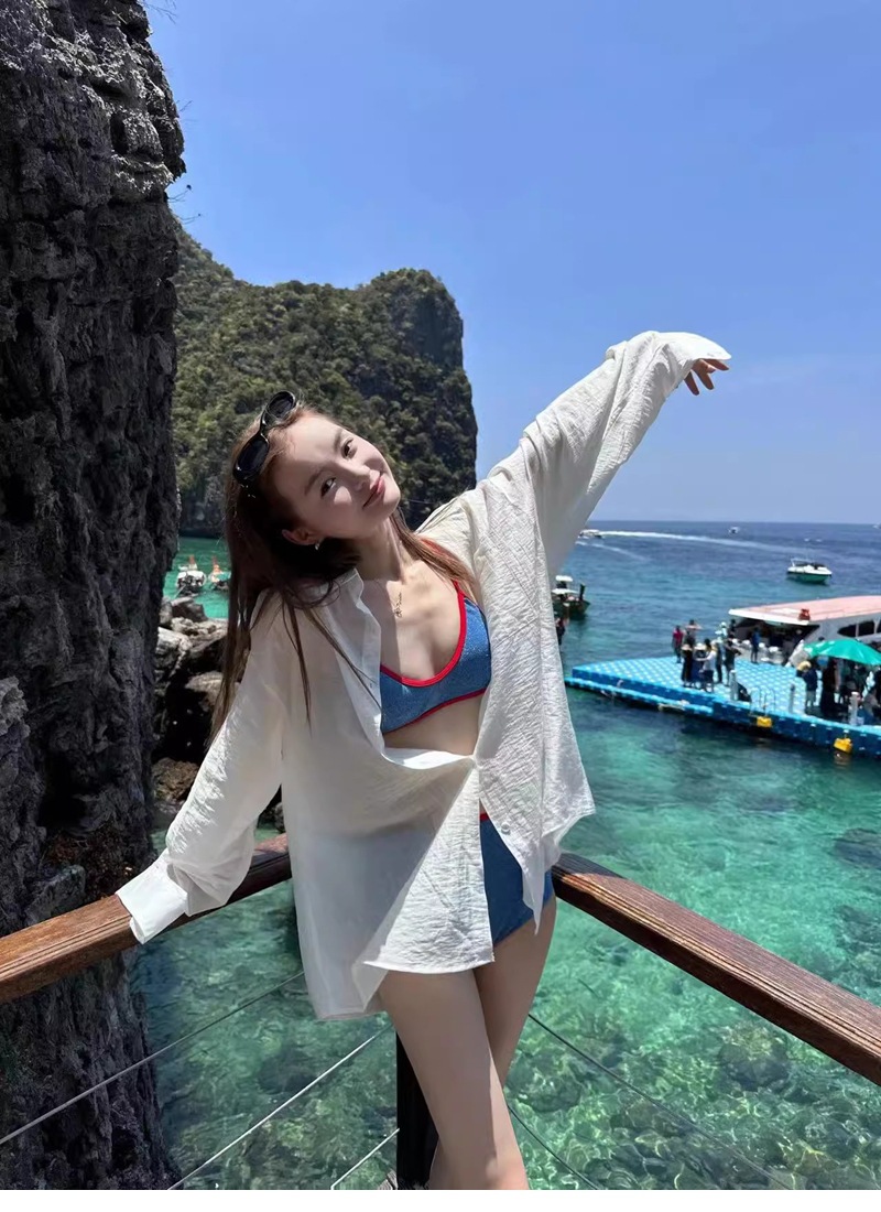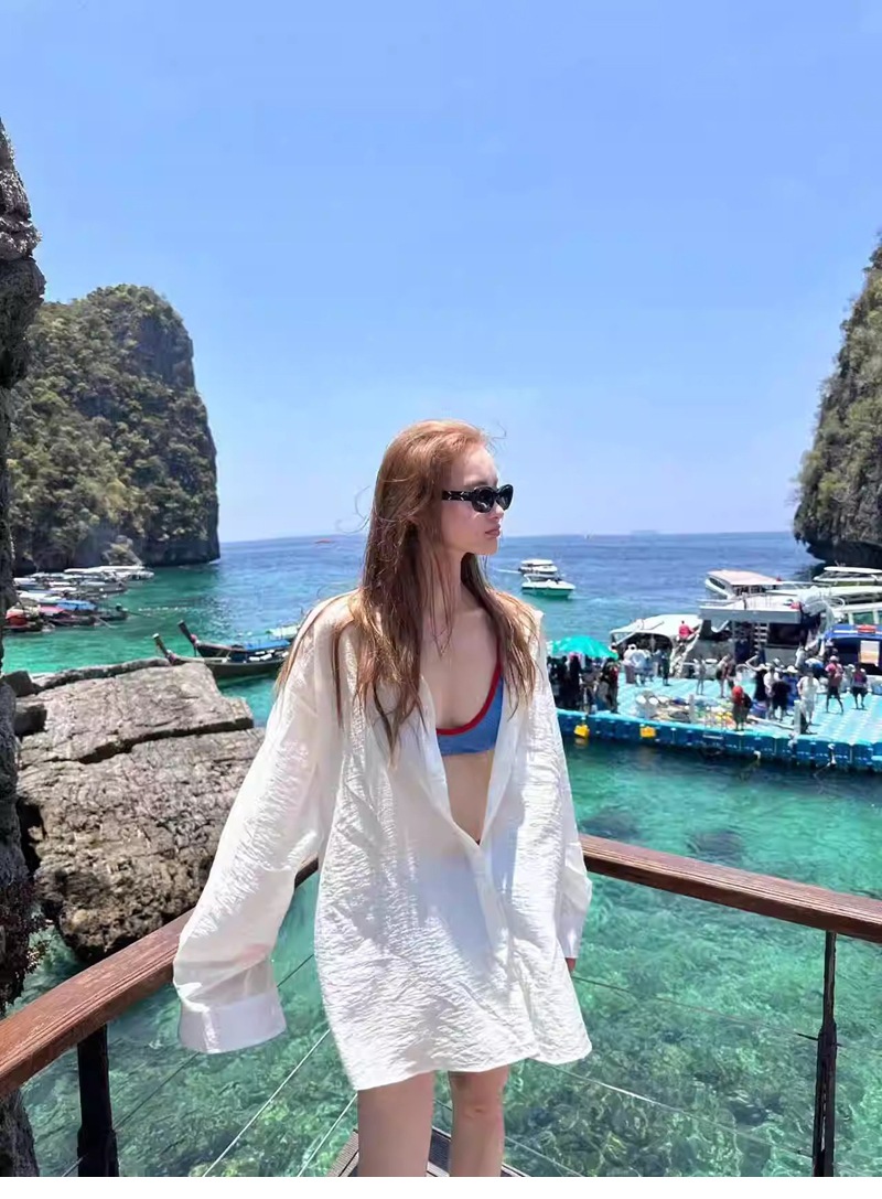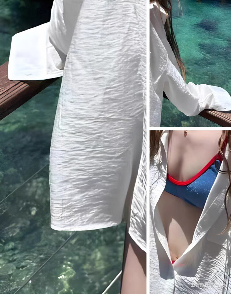 얇은 선 스크린 셔츠 코트 게으른 바람 마이크로 투명 프랑스 옷깃 봄과 여름 해변 느슨한 카디건 셔츠