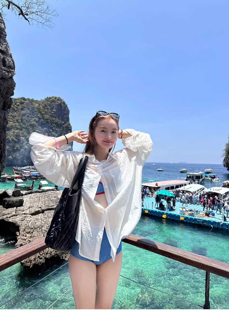 얇은 선 스크린 셔츠 코트 게으른 바람 마이크로 투명 프랑스 옷깃 봄과 여름 해변 느슨한 카디건 셔츠스토어 가기