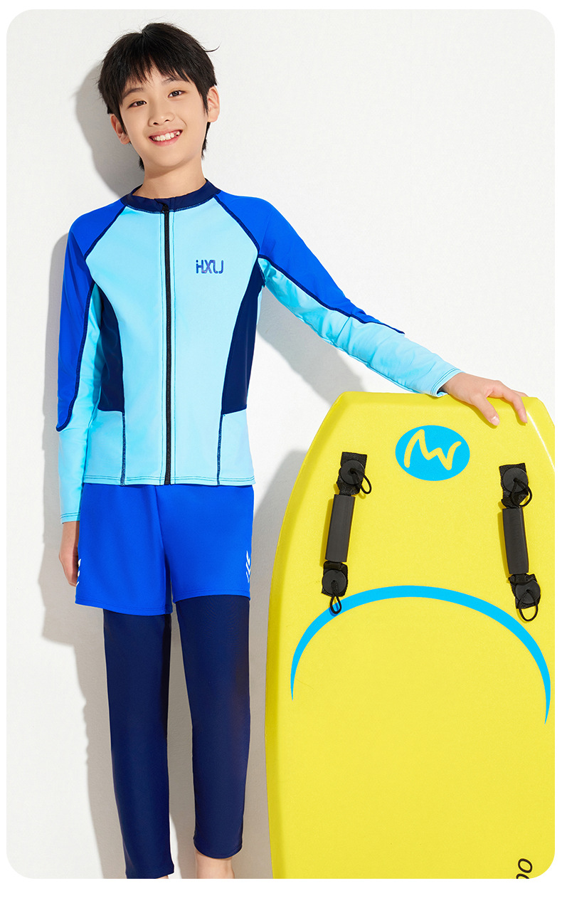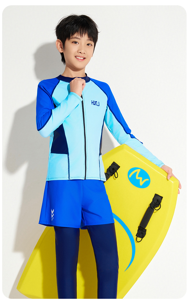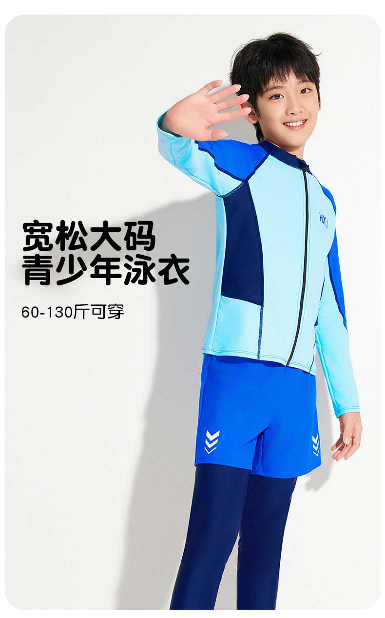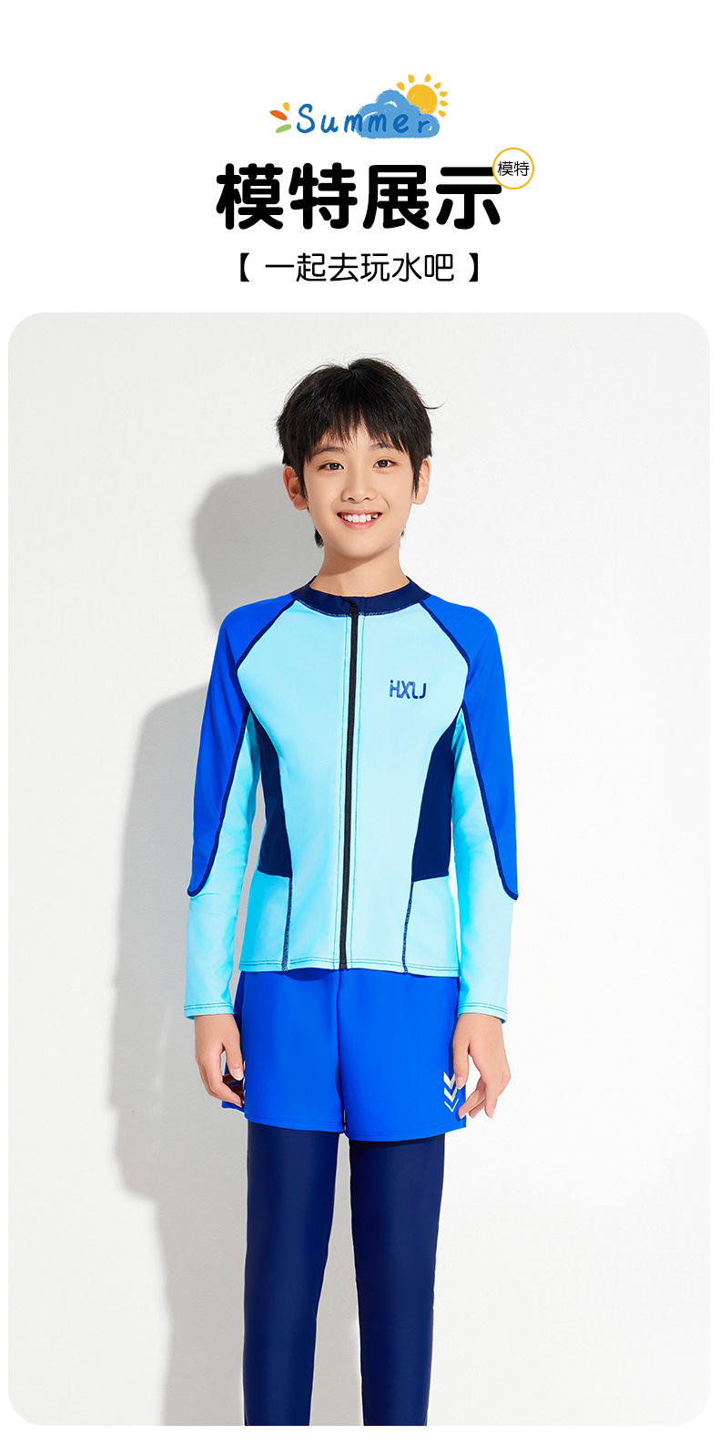 하이시 란징 2025 새로운 소년 수영복 자외선 차단제 긴팔 바지 큰 어린이 분할 2 피스 공장 도매스토어 가기