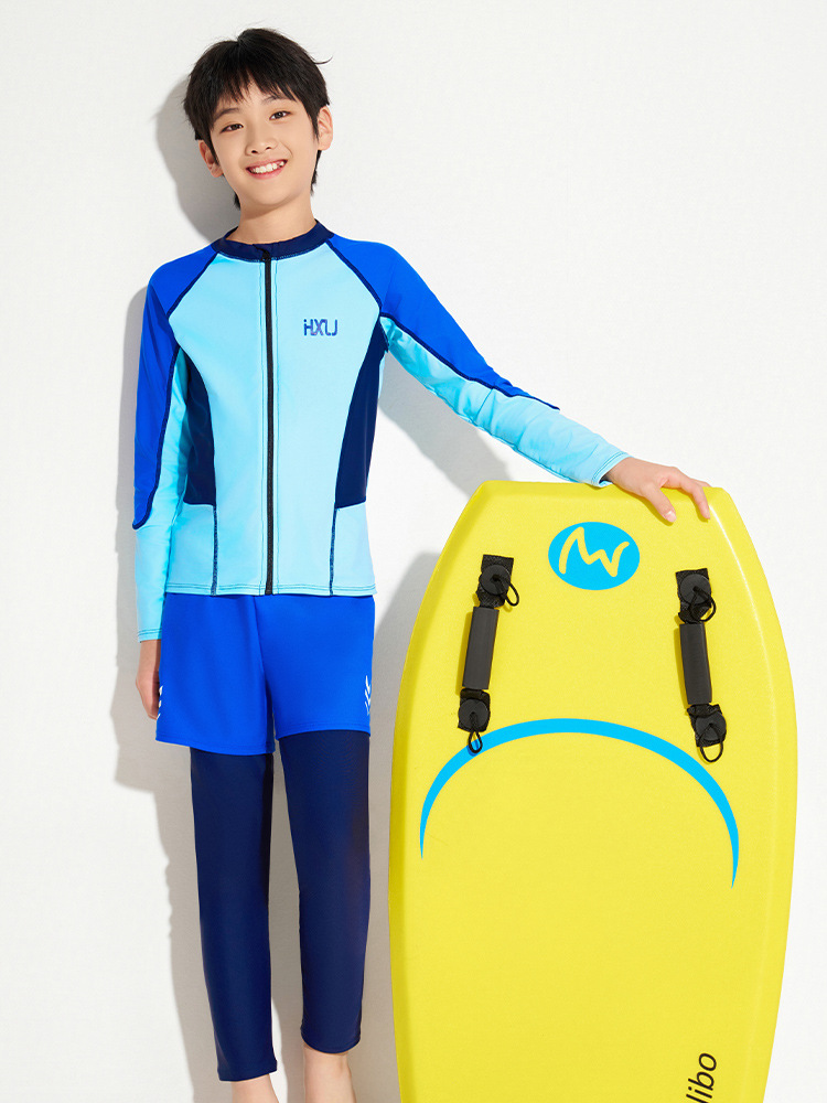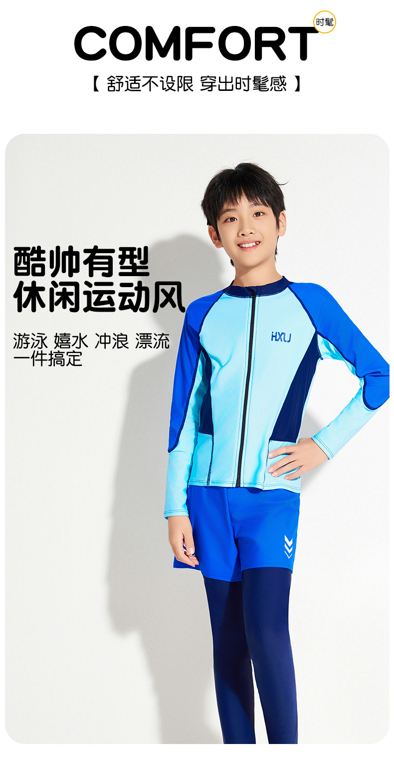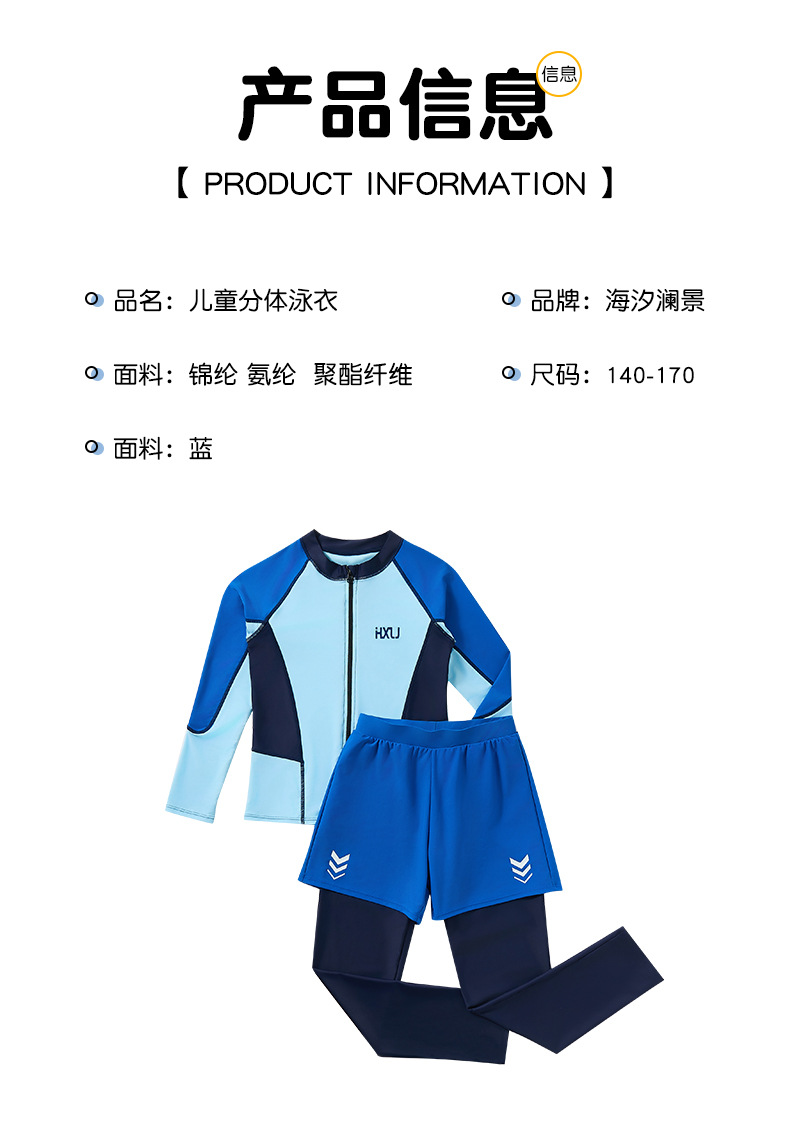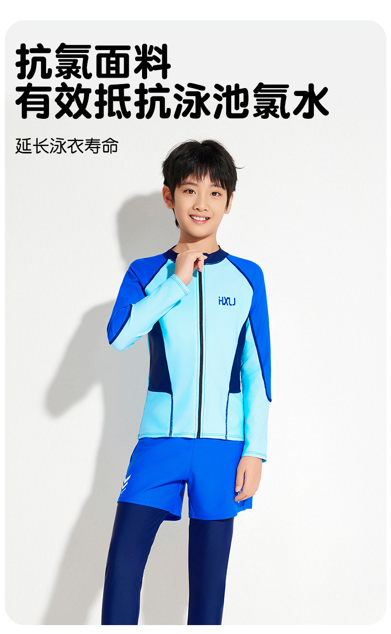 하이시 란징 2025 새로운 소년 수영복 자외선 차단제 긴팔 바지 큰 어린이 분할 2 피스 공장 도매스토어 가기