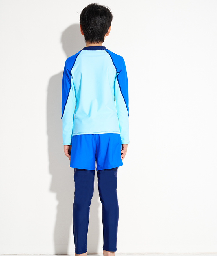 하이시 란징 2025 새로운 소년 수영복 자외선 차단제 긴팔 바지 큰 어린이 분할 2 피스 공장 도매