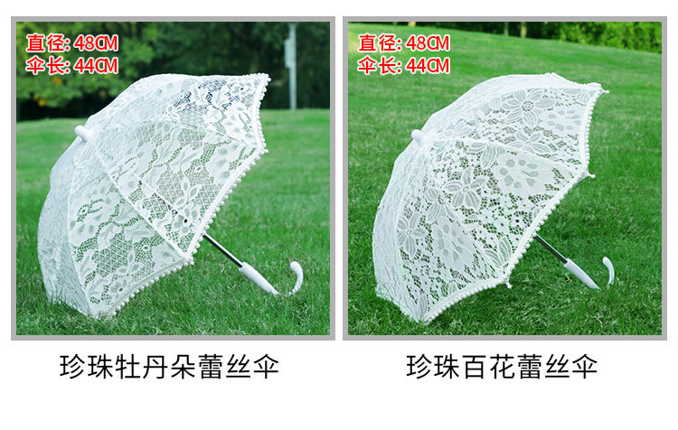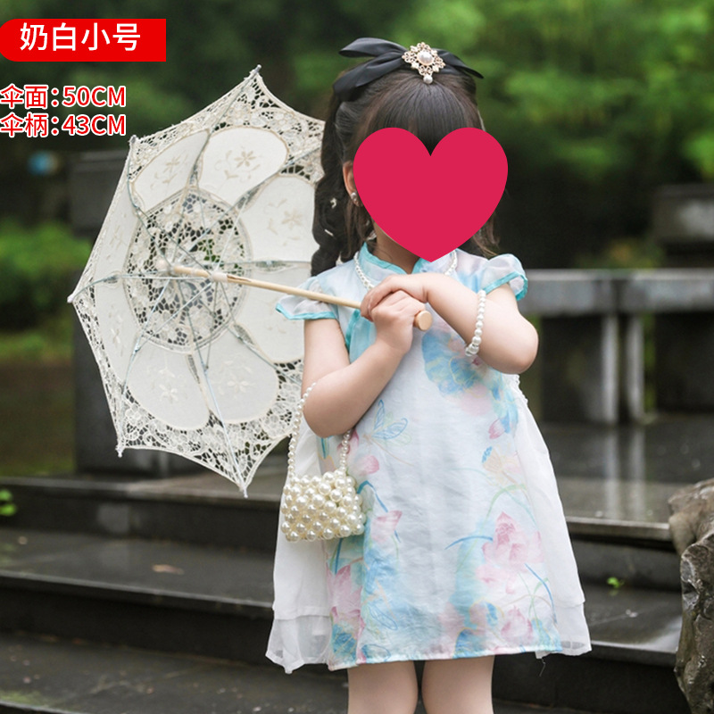 어린이 화이트 레이스 우산 진주 레이스 어린이 모델 캣워크 우산 로리타 공주 작은 우산 사진 소품스토어 가기