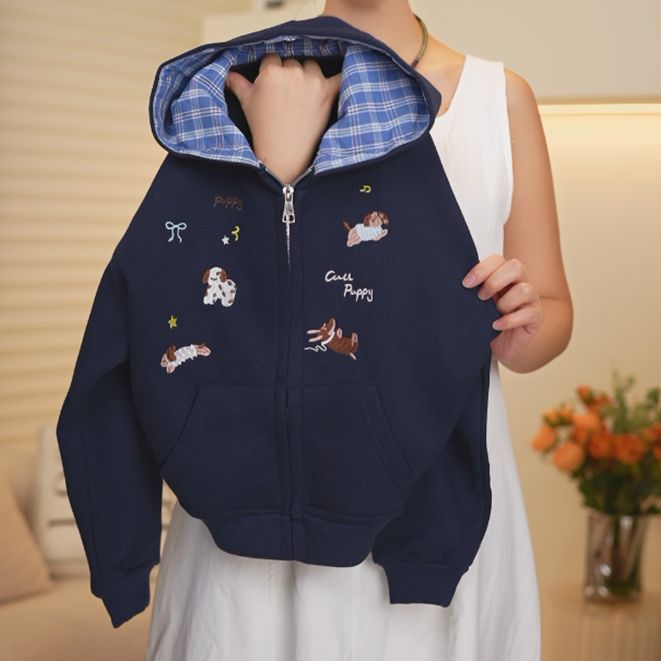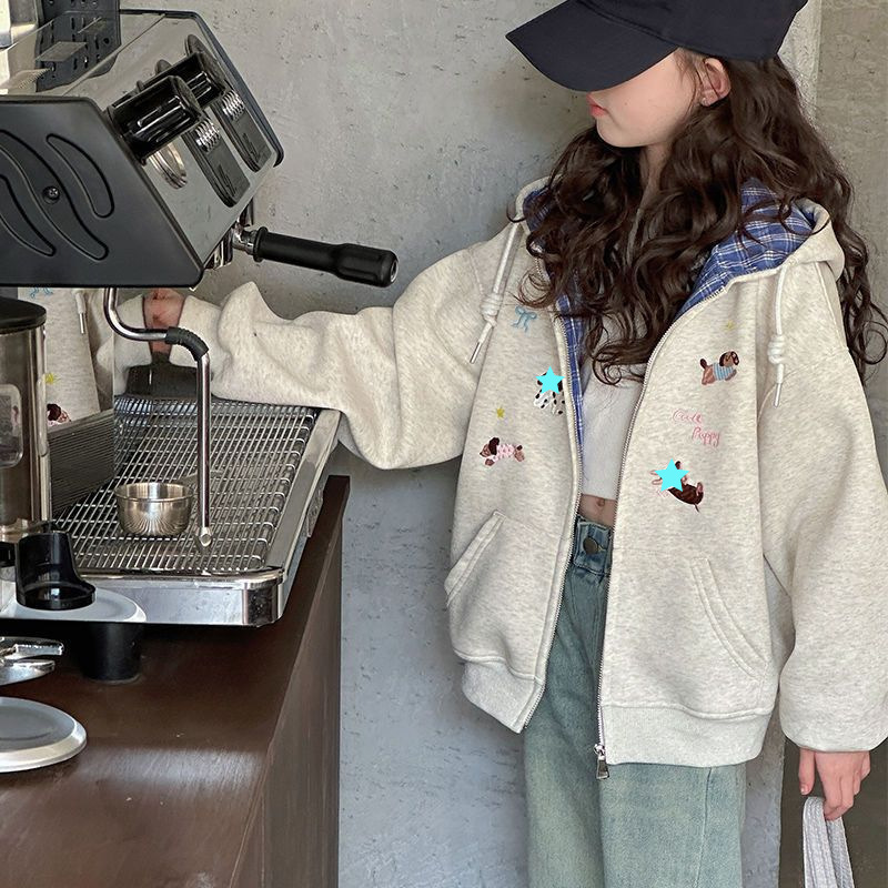 소녀 아기 한국 스타일 유행 카디건 코트 대형 어린이 봄과 가을 새로운 서양 스타일 만화 격자 무늬 후드 탑스토어 가기