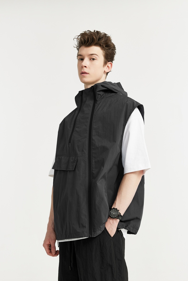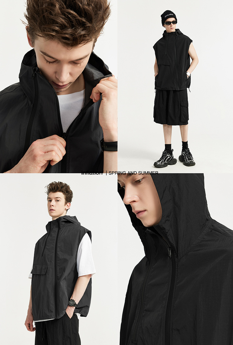 지에잔 남성복 | 기능성 지퍼 조끼 2026 봄/여름 신상 유럽 및 미국 트렌드 브랜드 스트리트 후드 재킷