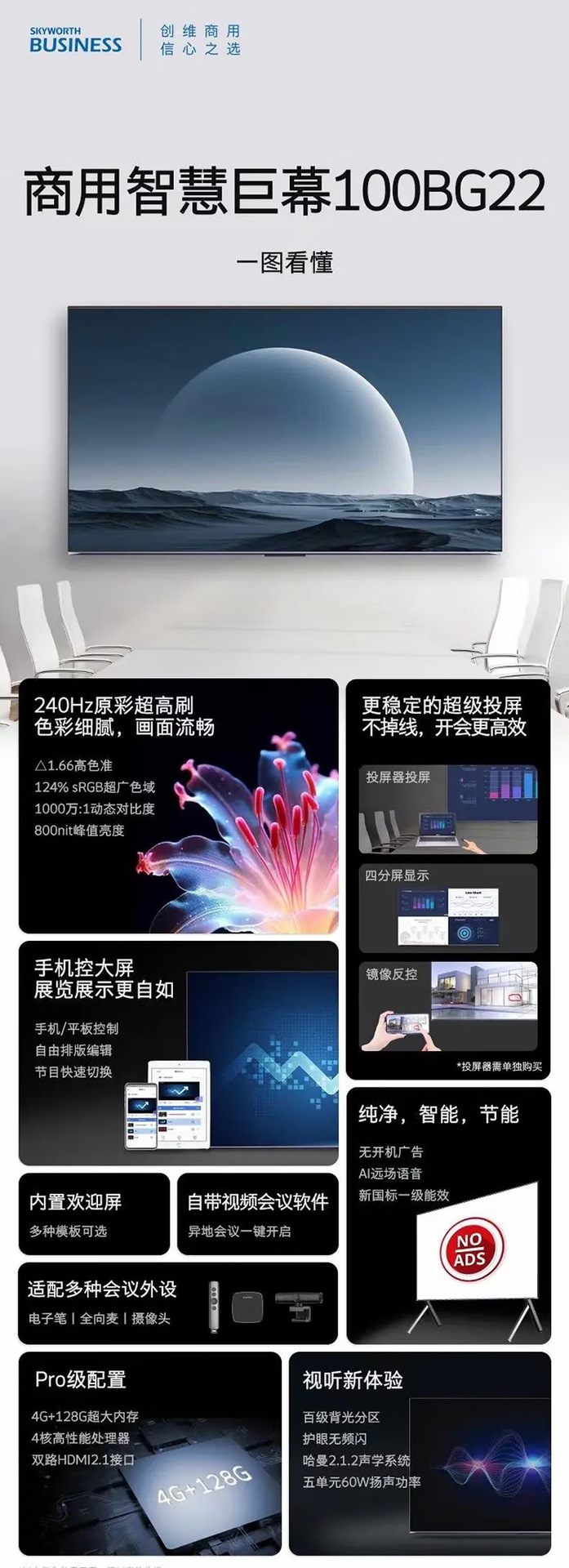 Skyworth 100BG 22 100 "4 128G 4k 초 고화질 회의 평면 패널 TV 스마트 오피스 디스플레이스토어 가기