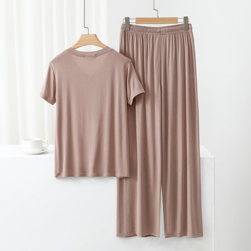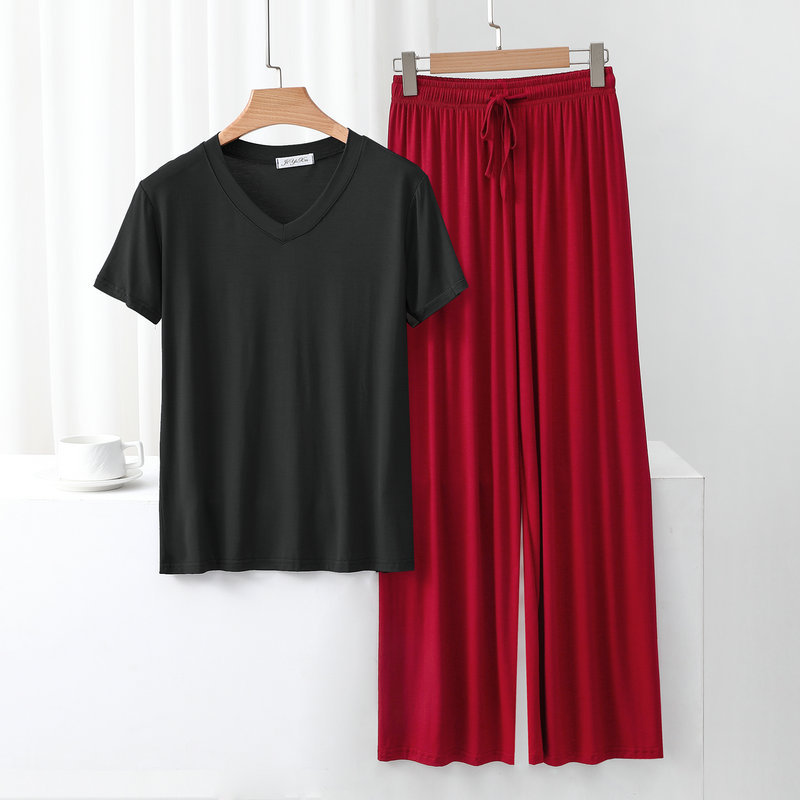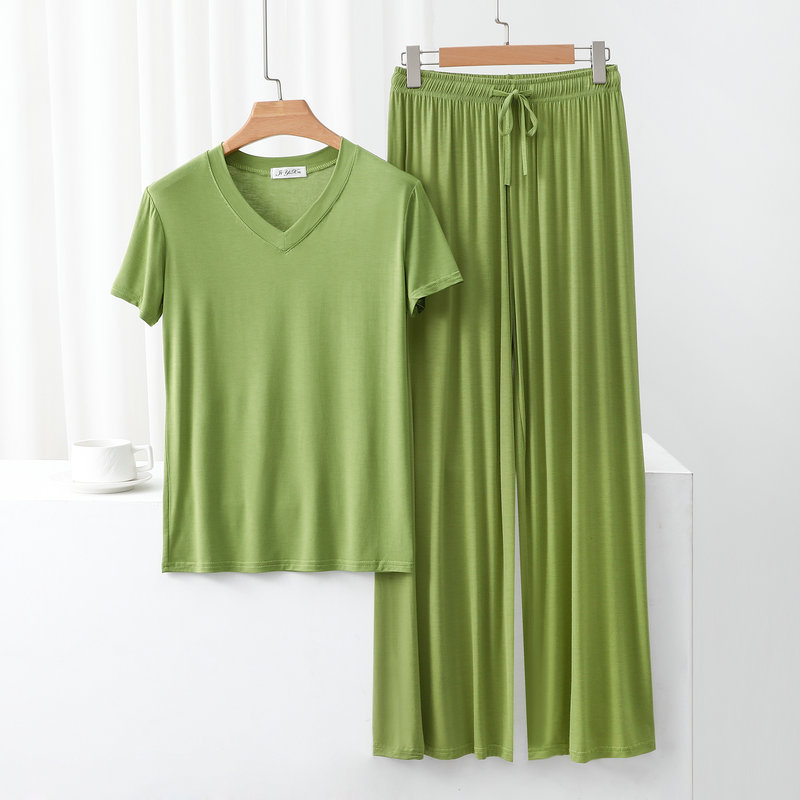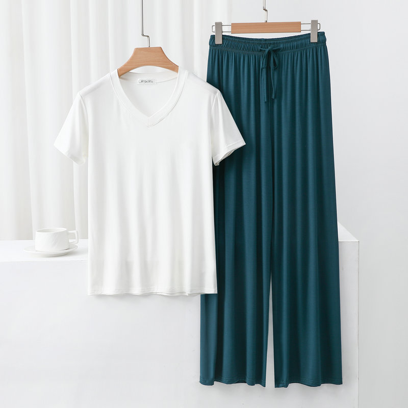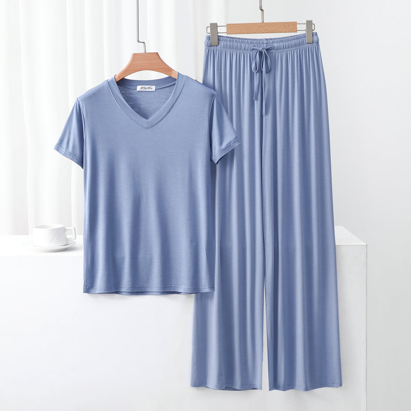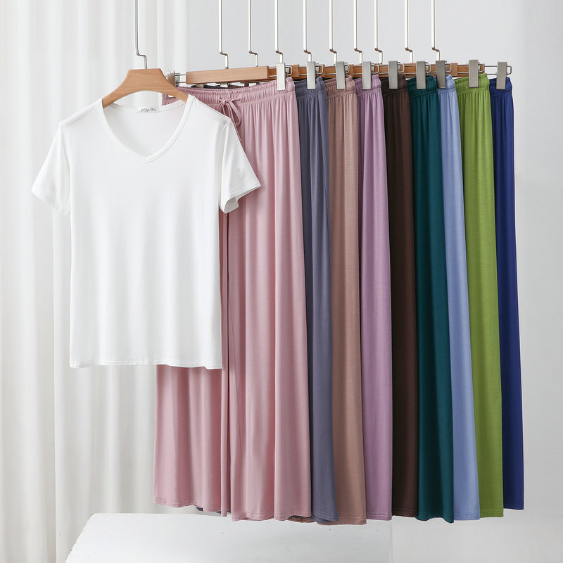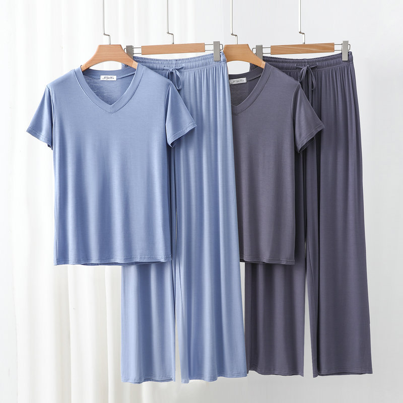여성용 봄과 여름 V 넥 반팔 얇은 쿨 모달 잠옷 세트 편안한 의상 투피스 세트를 입을 수 있습니다.