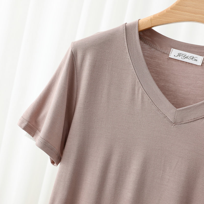 여성용 봄과 여름 V 넥 반팔 얇은 쿨 모달 잠옷 세트 편안한 의상 투피스 세트를 입을 수 있습니다.스토어 가기